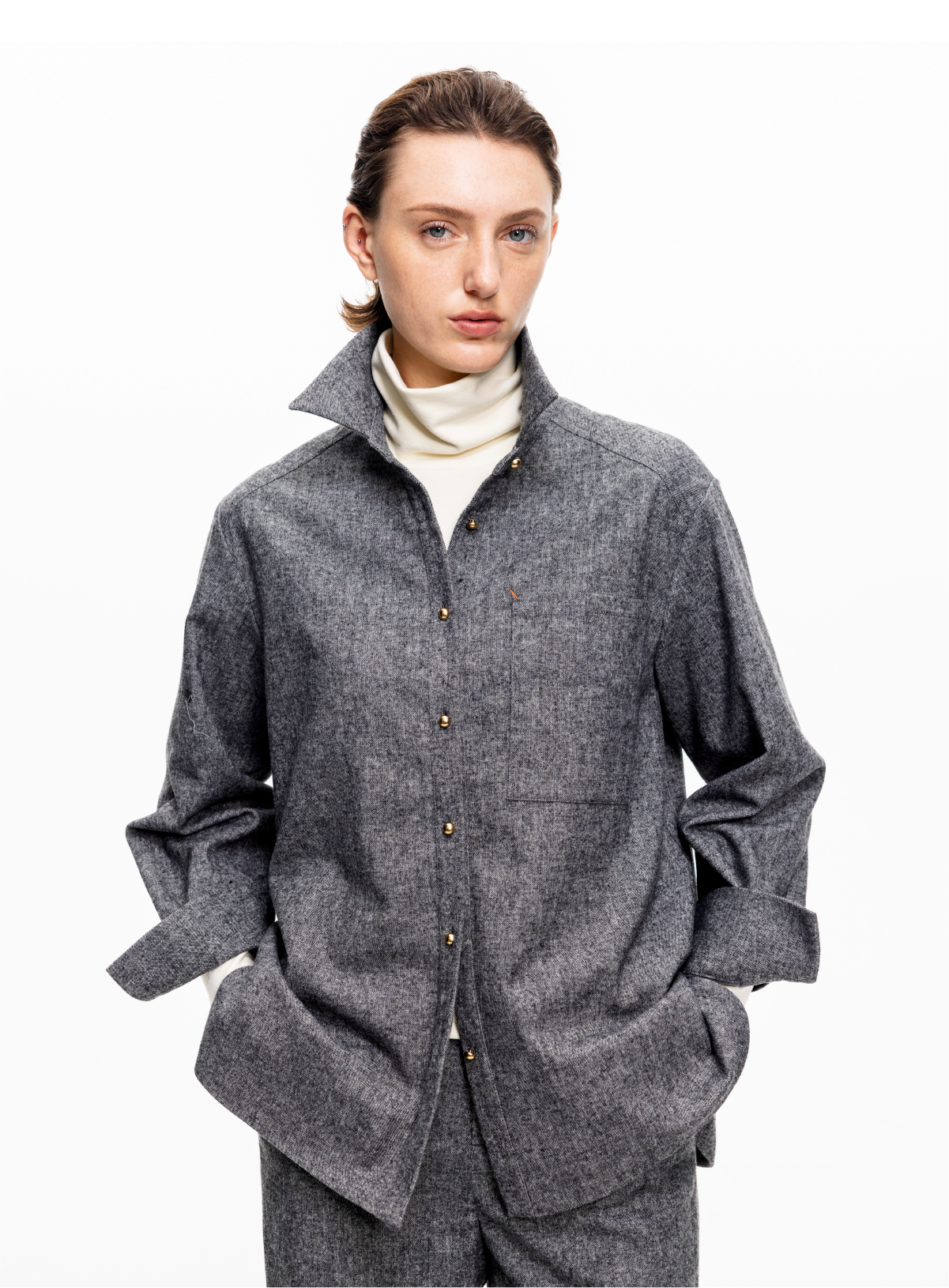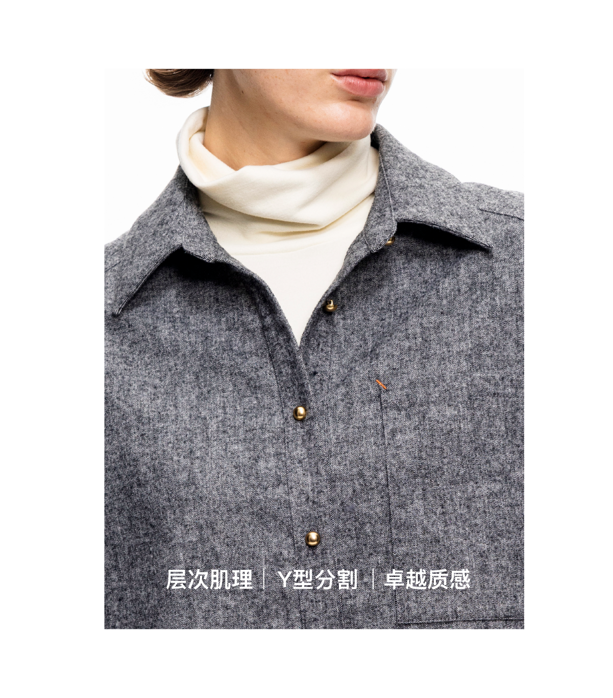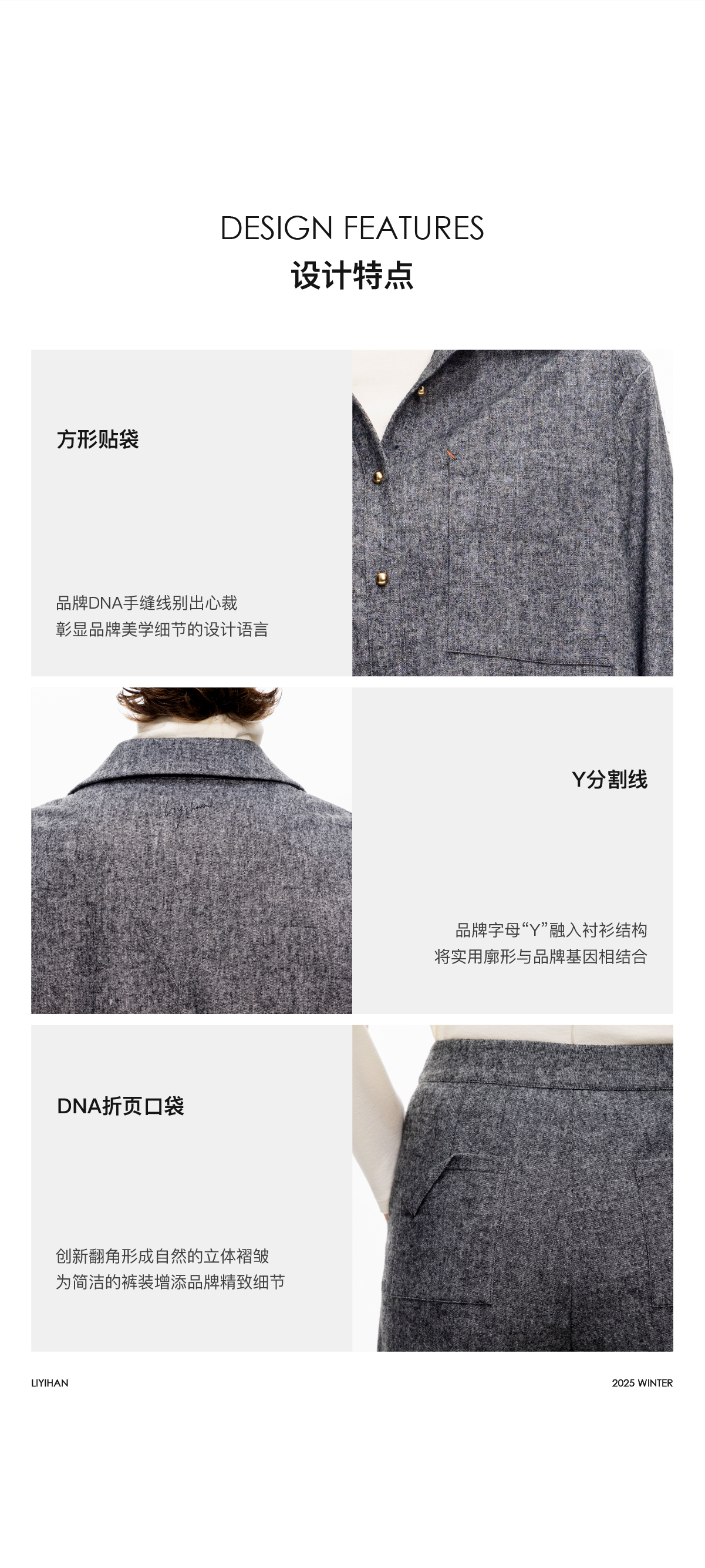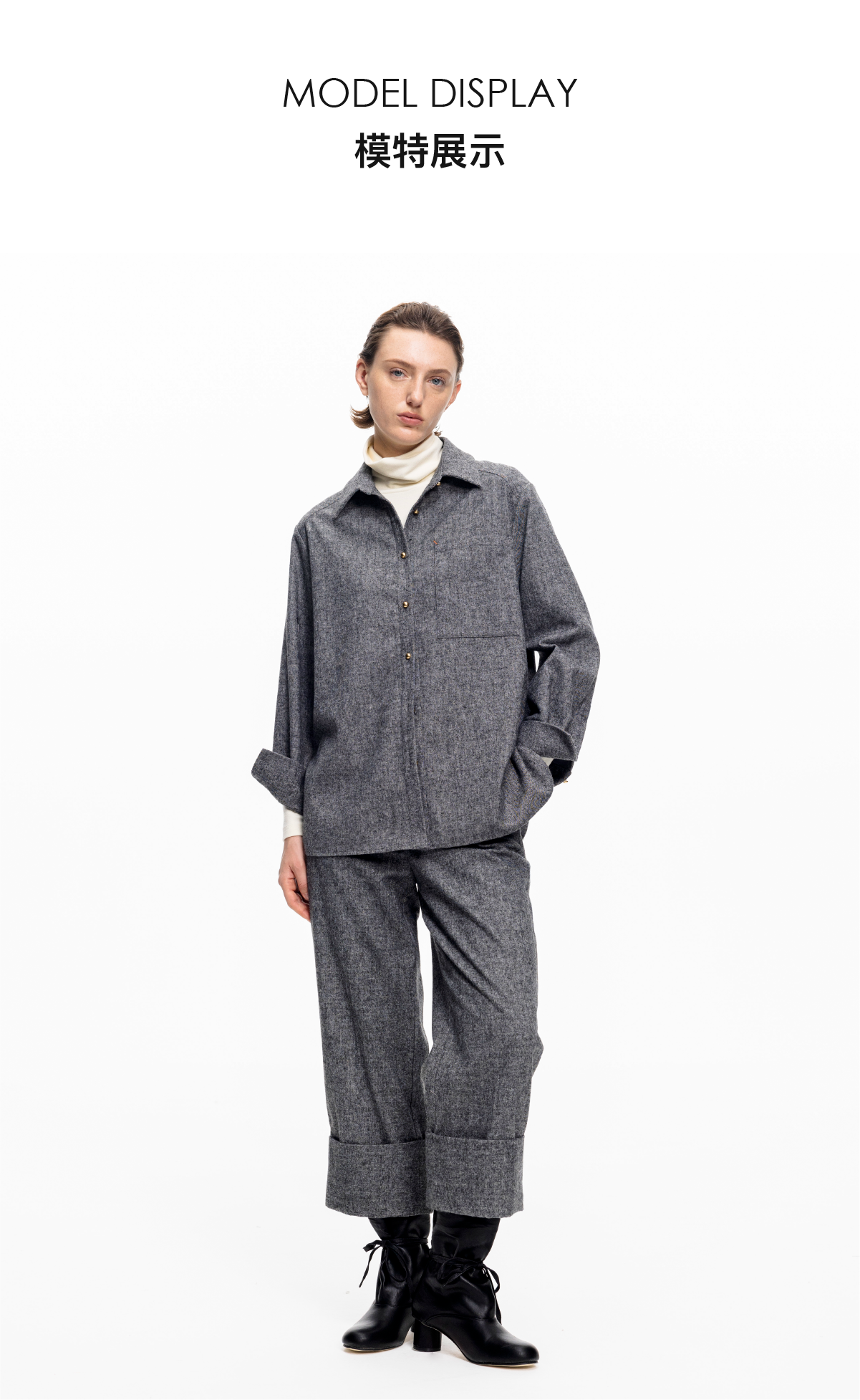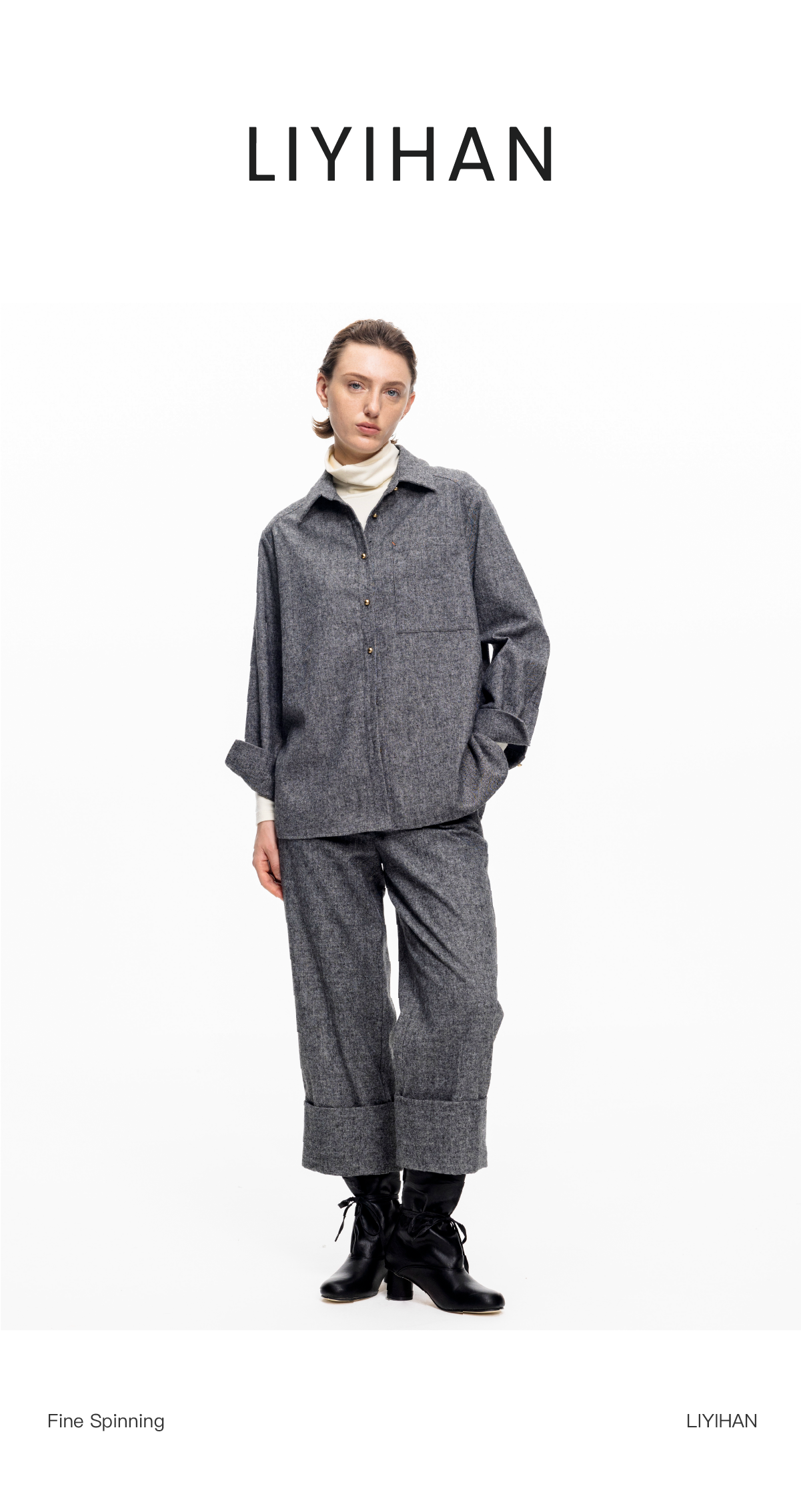 LIYIHAN 2025秋冬新款通勤羊毛衬衫灰色女时尚套装小众设计感