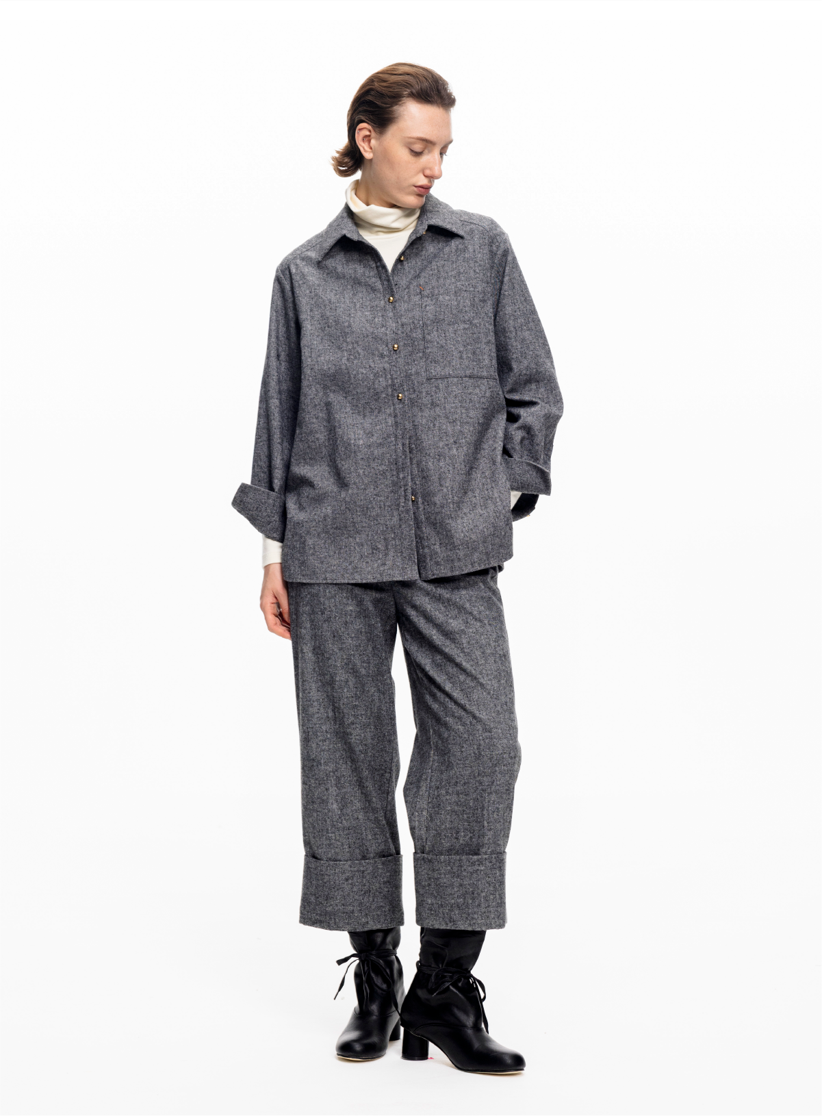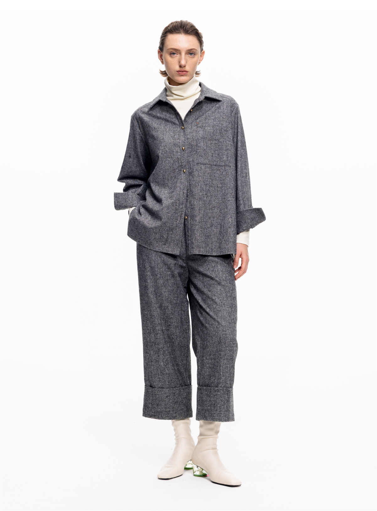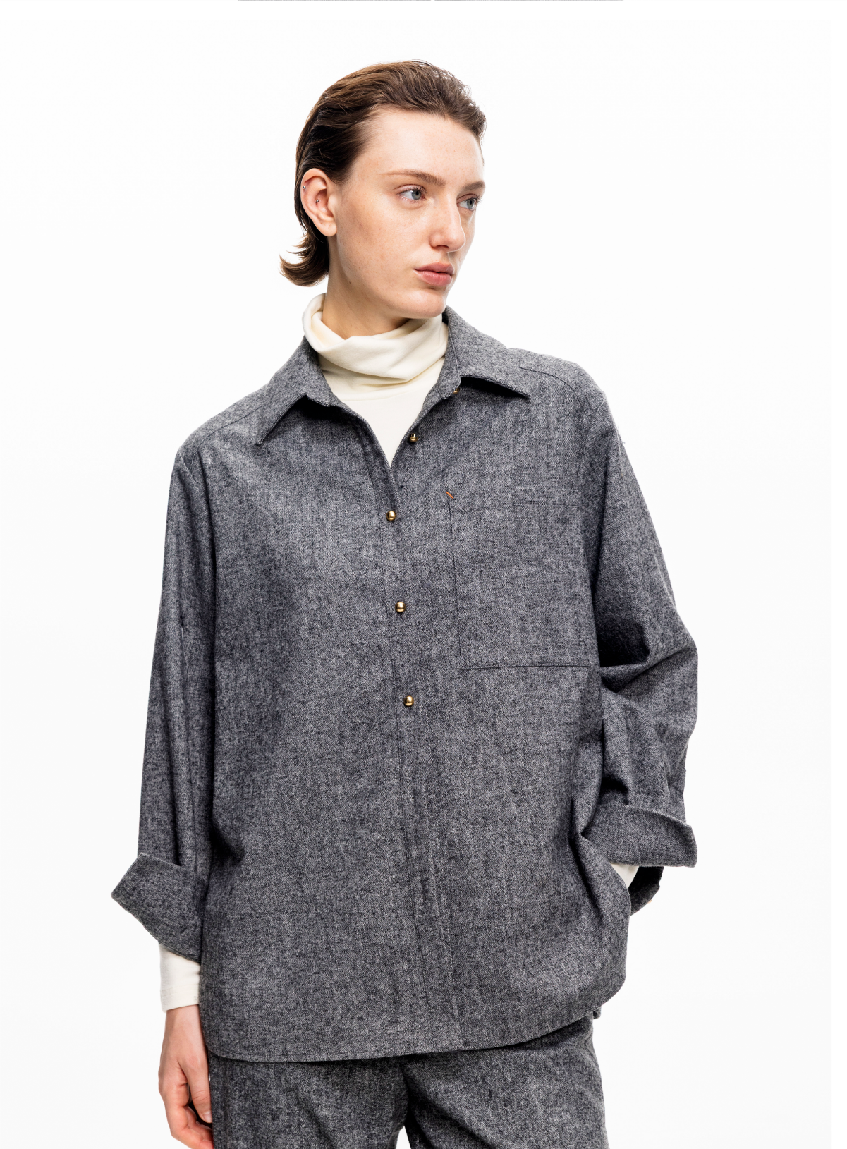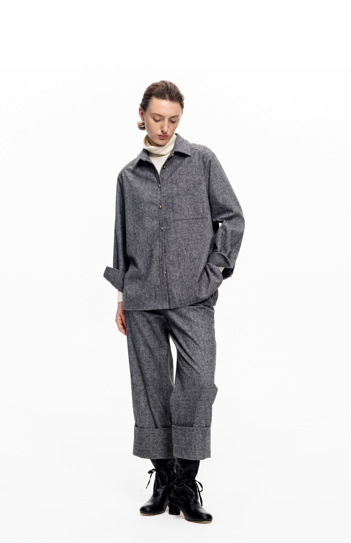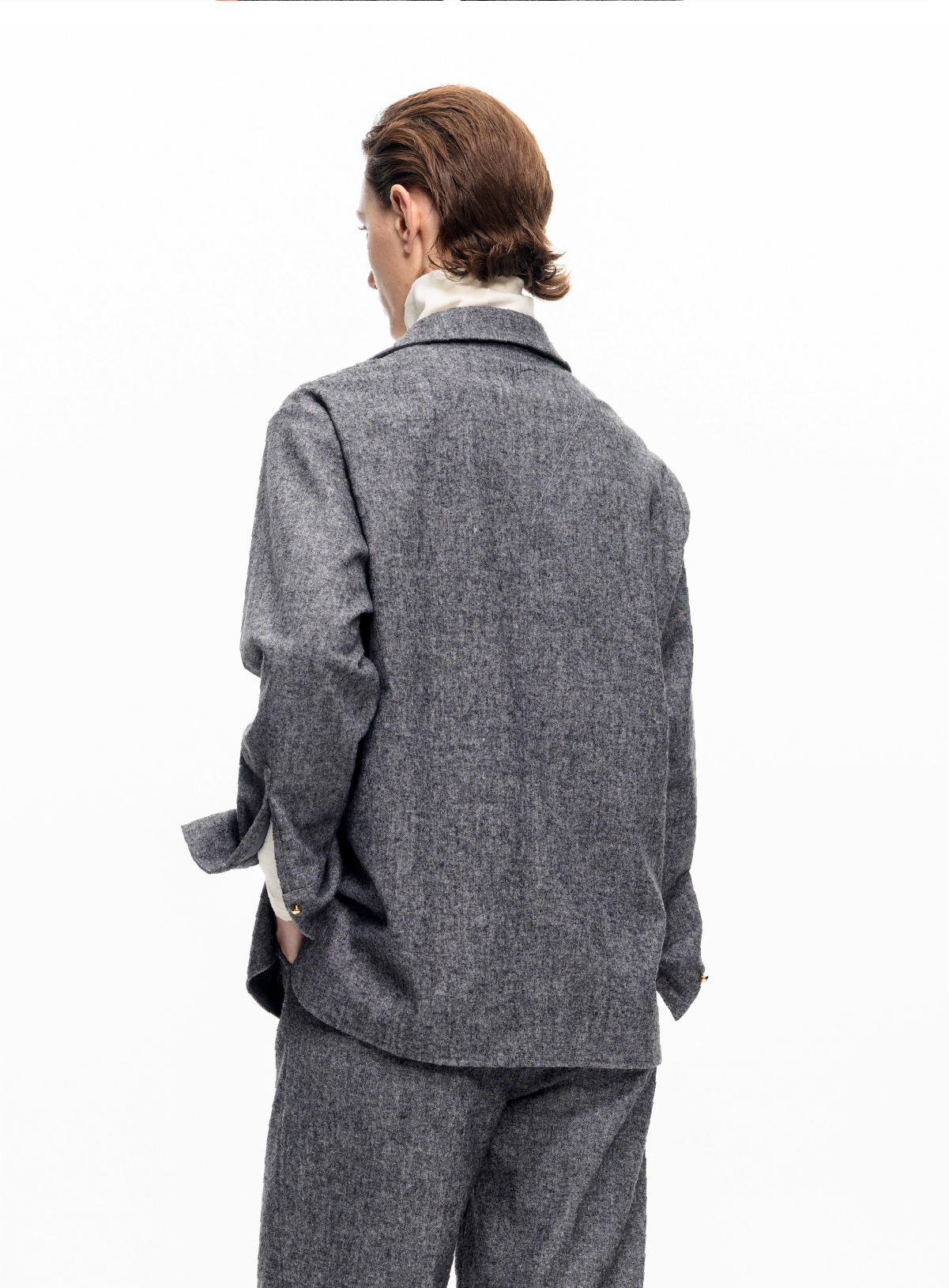 LIYIHAN 2025秋冬新款通勤羊毛衬衫灰色女时尚套装小众设计感