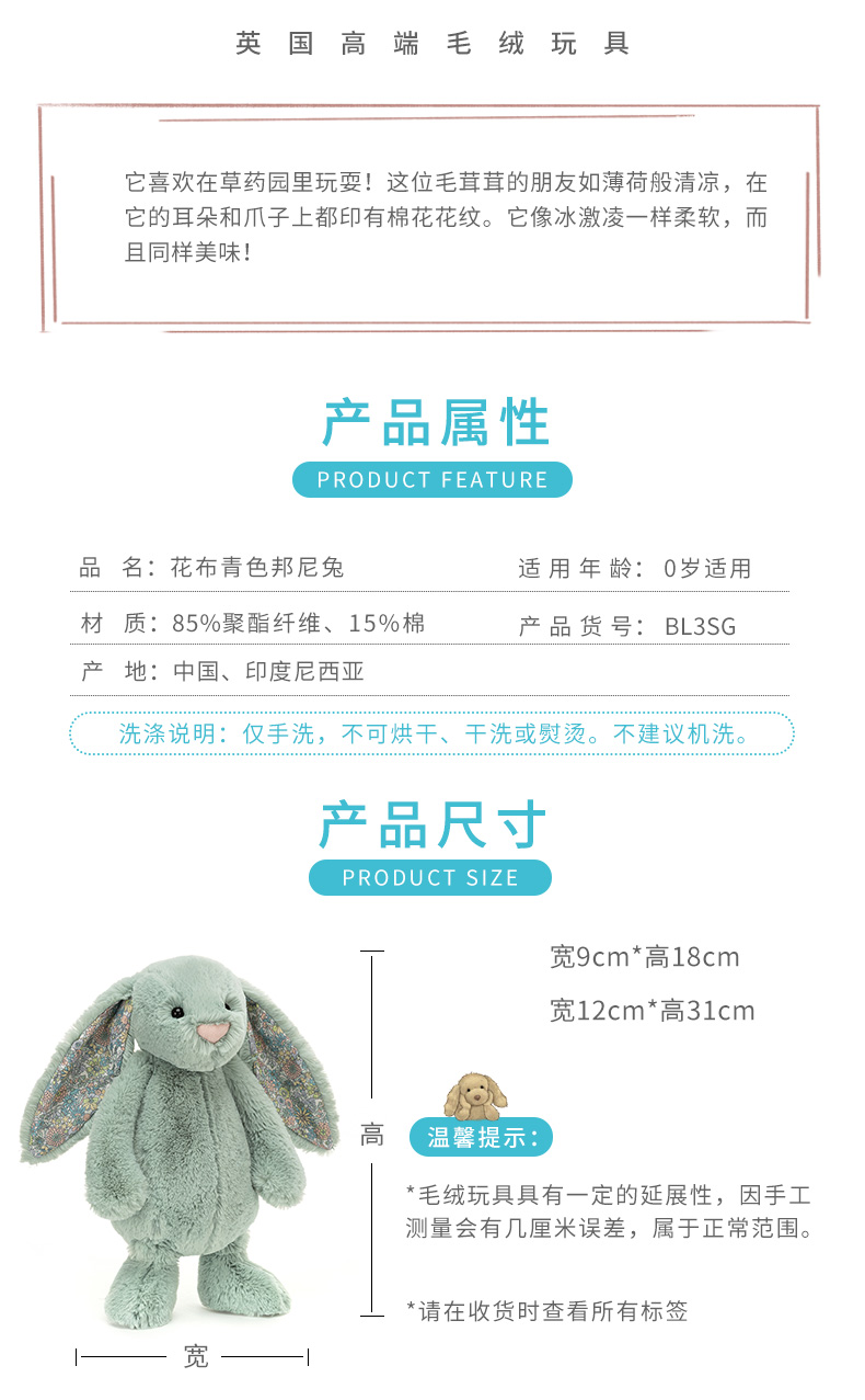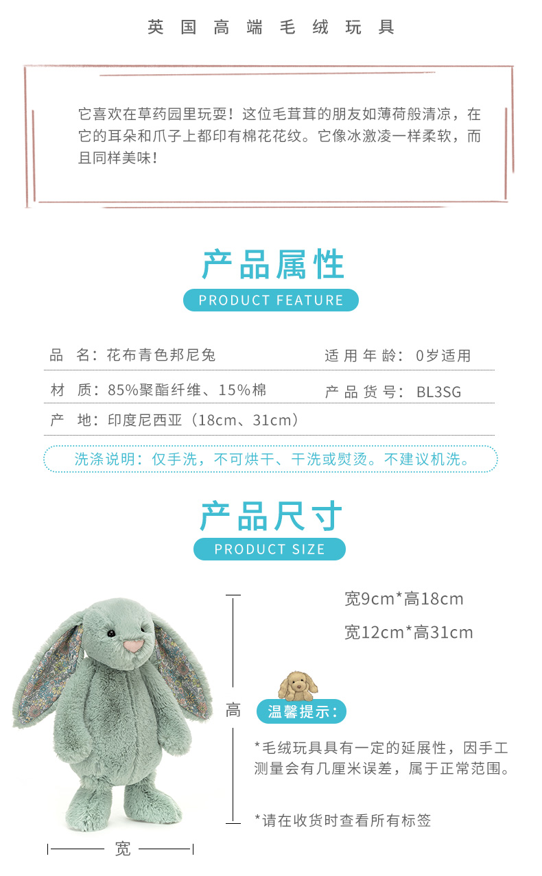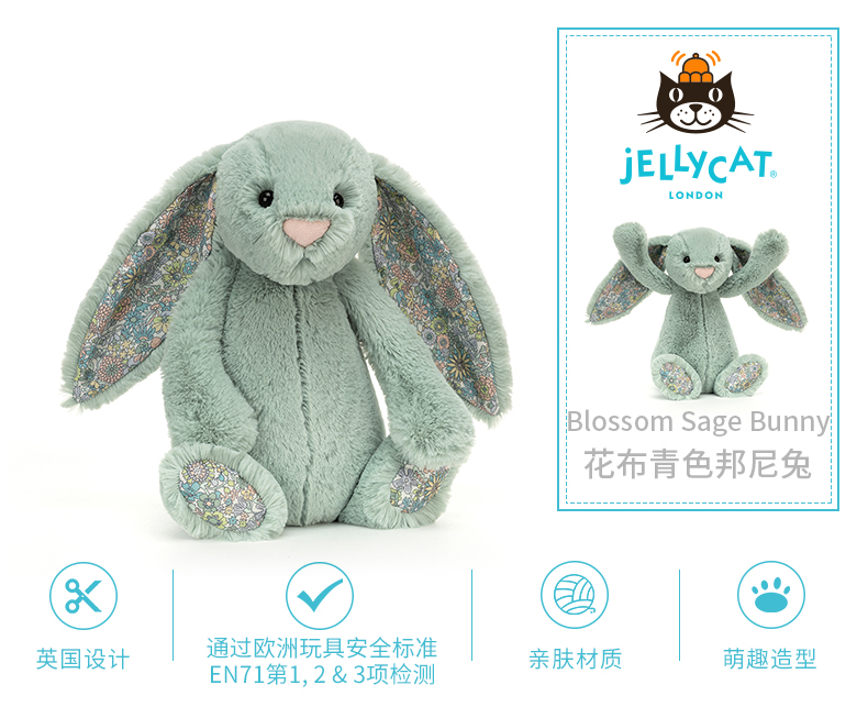 Jellycat 花耳朵系列 邦尼兔 青色 18cm