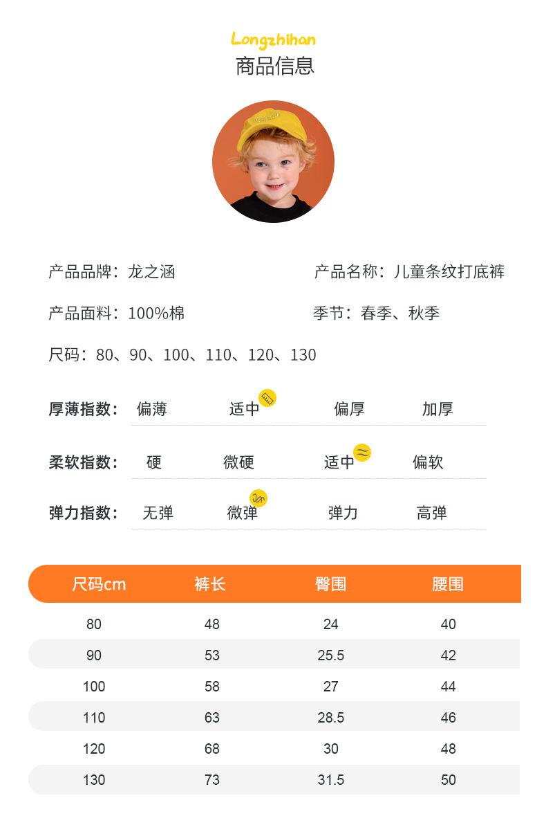 【早秋特价】龙之涵儿童条纹打底裤款薄婴儿条纹小宝宝裤子紧身洋气潮童装外穿