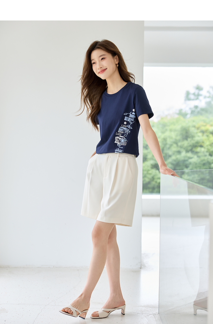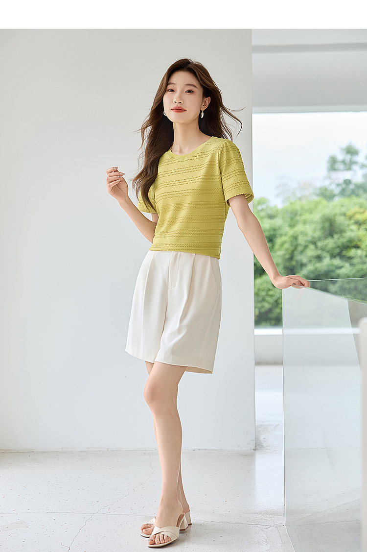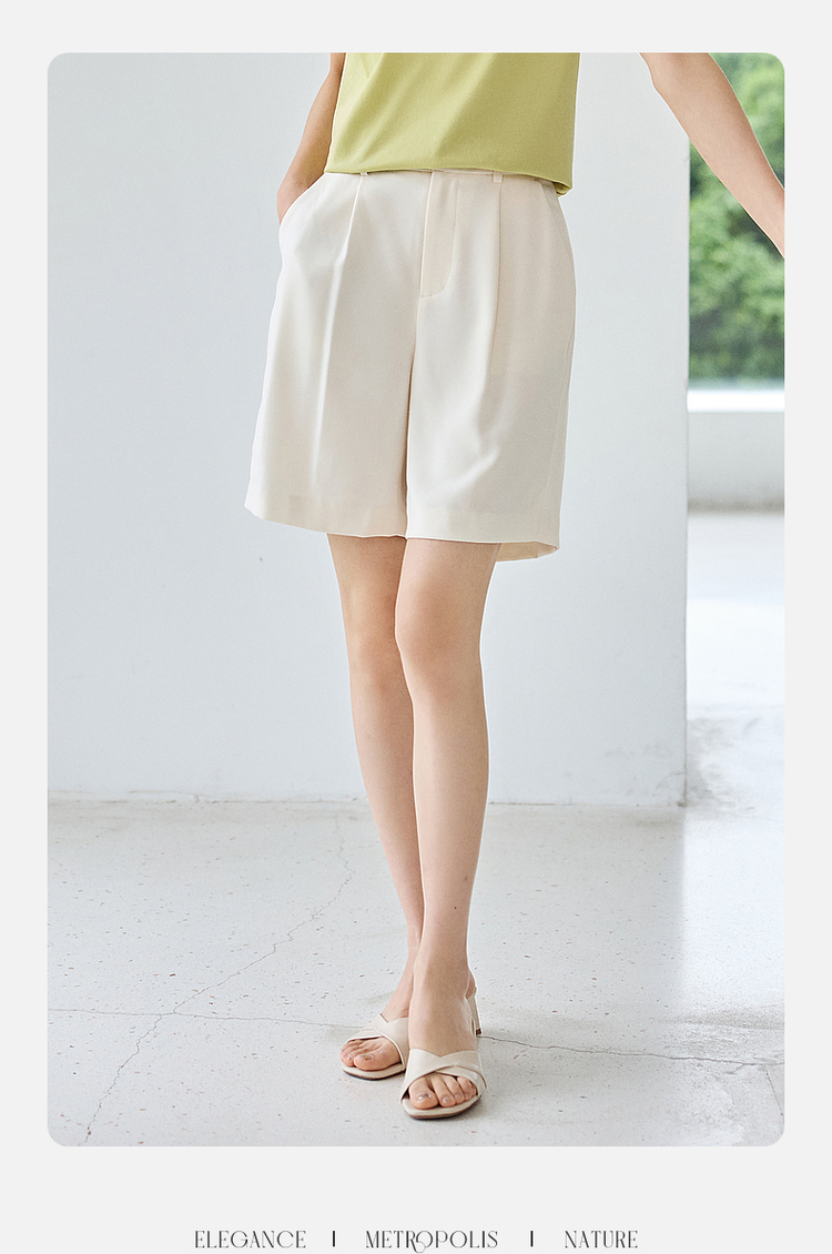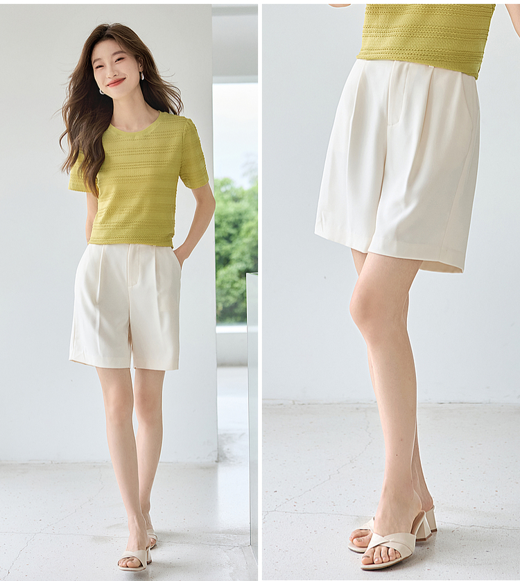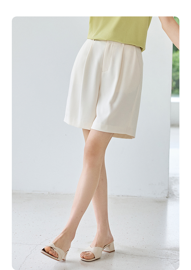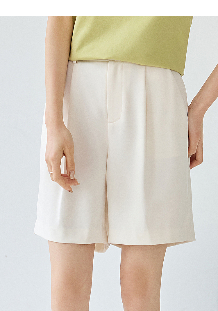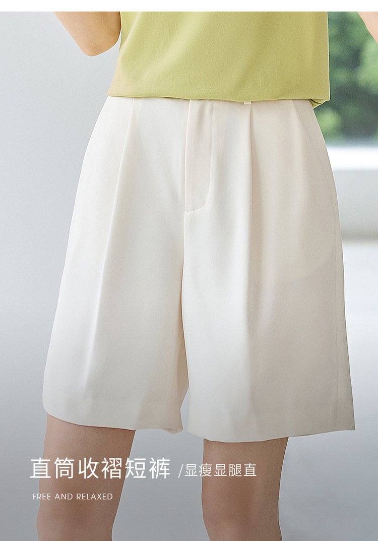 【专属特价】熙世界白色五分裤阔腿短裤夏季薄款简约宽松休闲西装直筒裤中裤