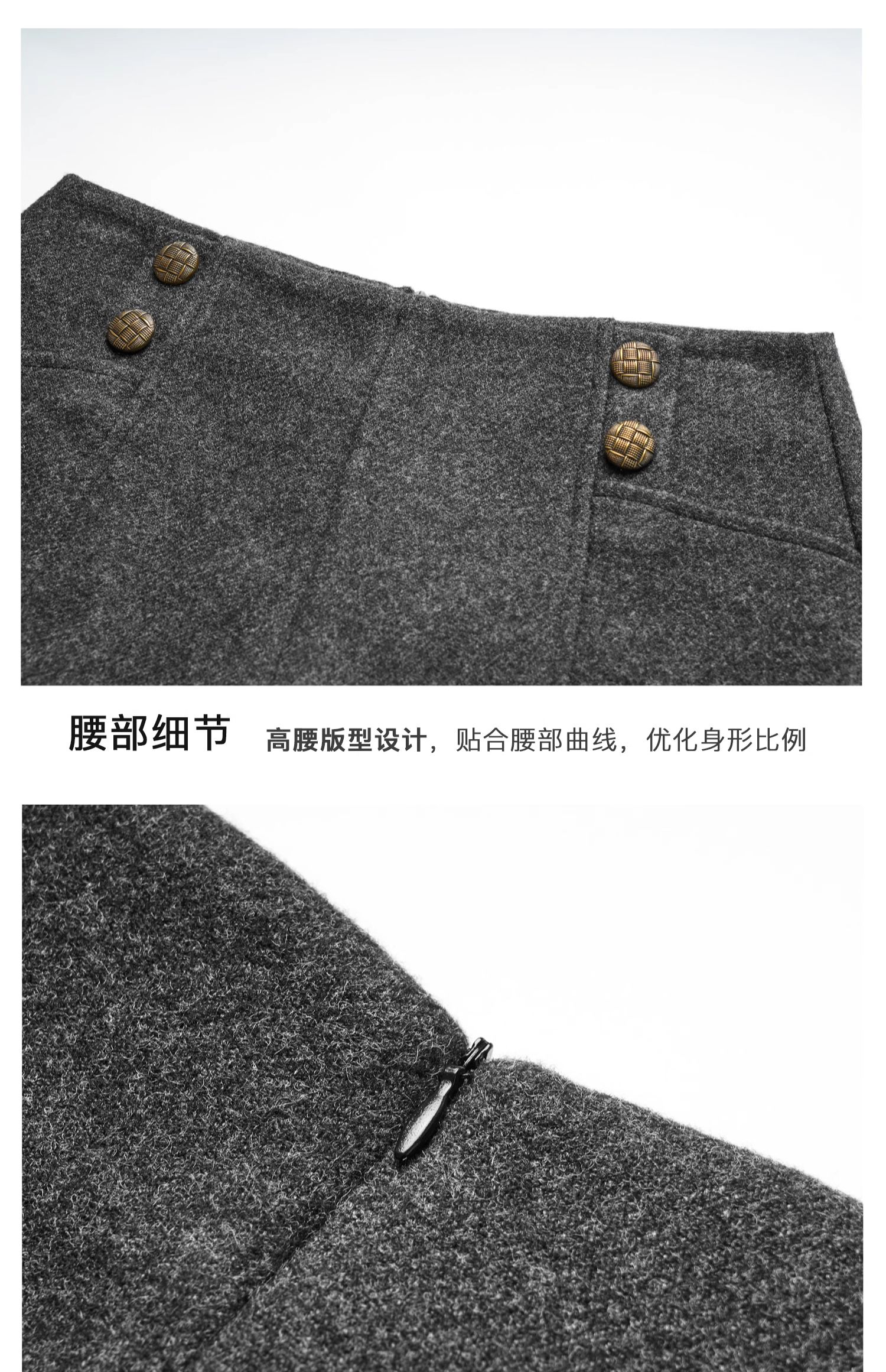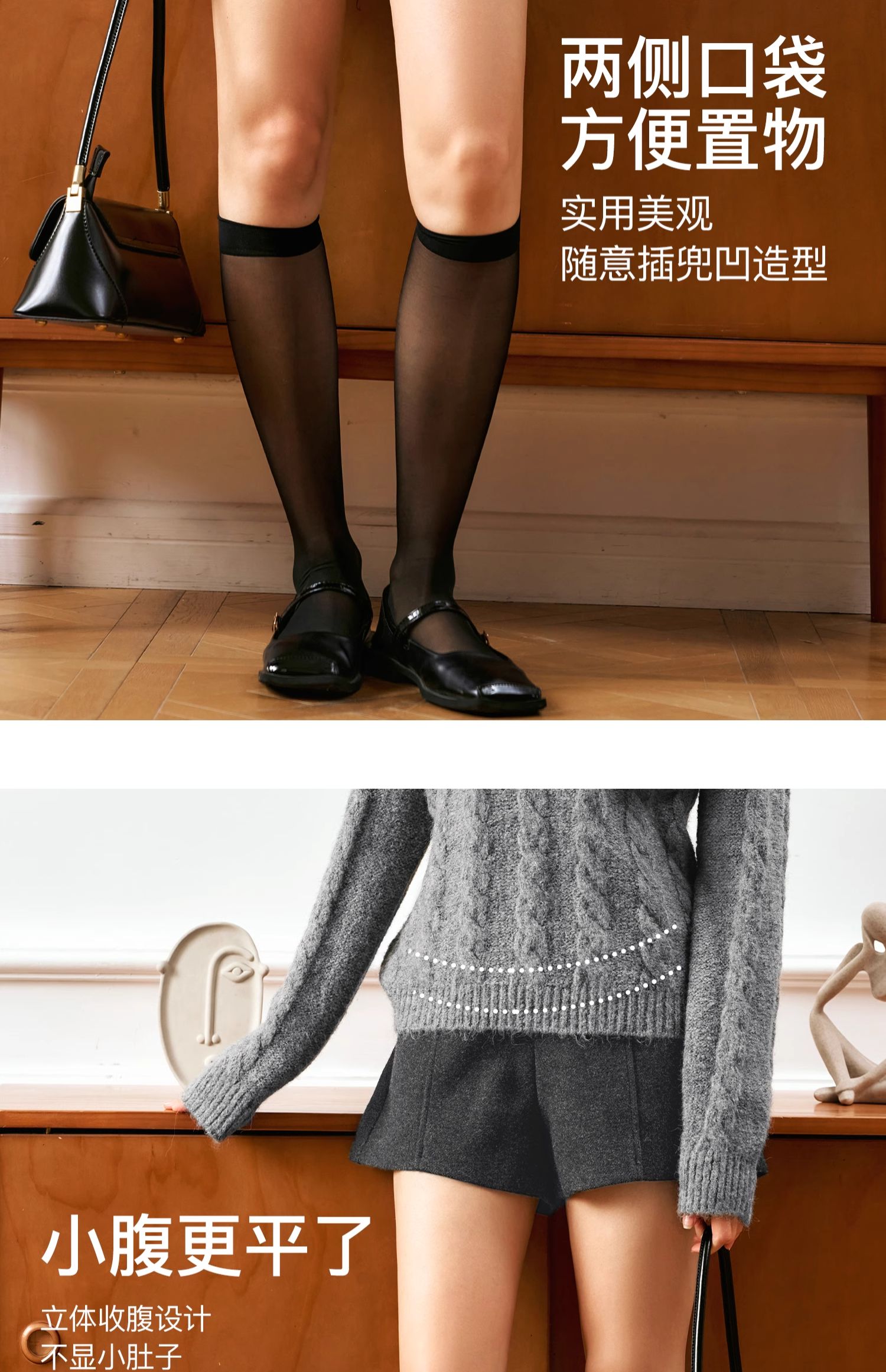 OLrain欧芮儿灰色高腰休闲裤女秋季2024年新款通勤百搭毛呢短裤