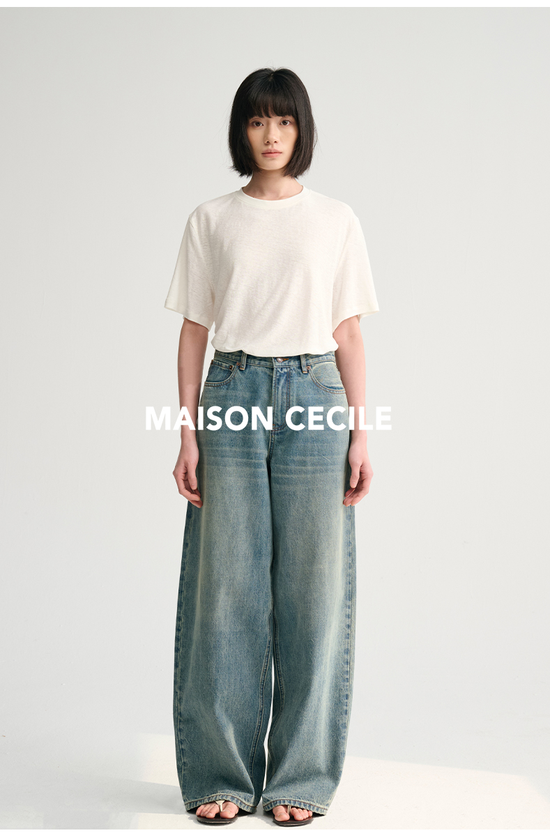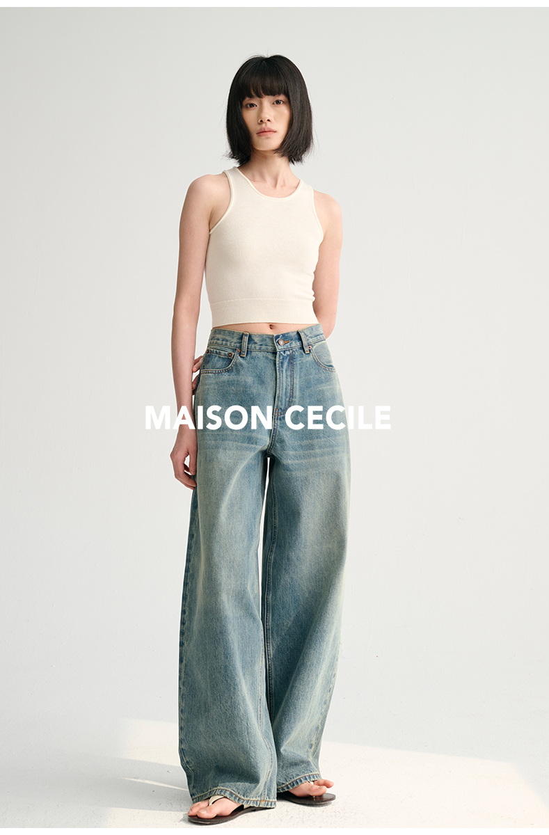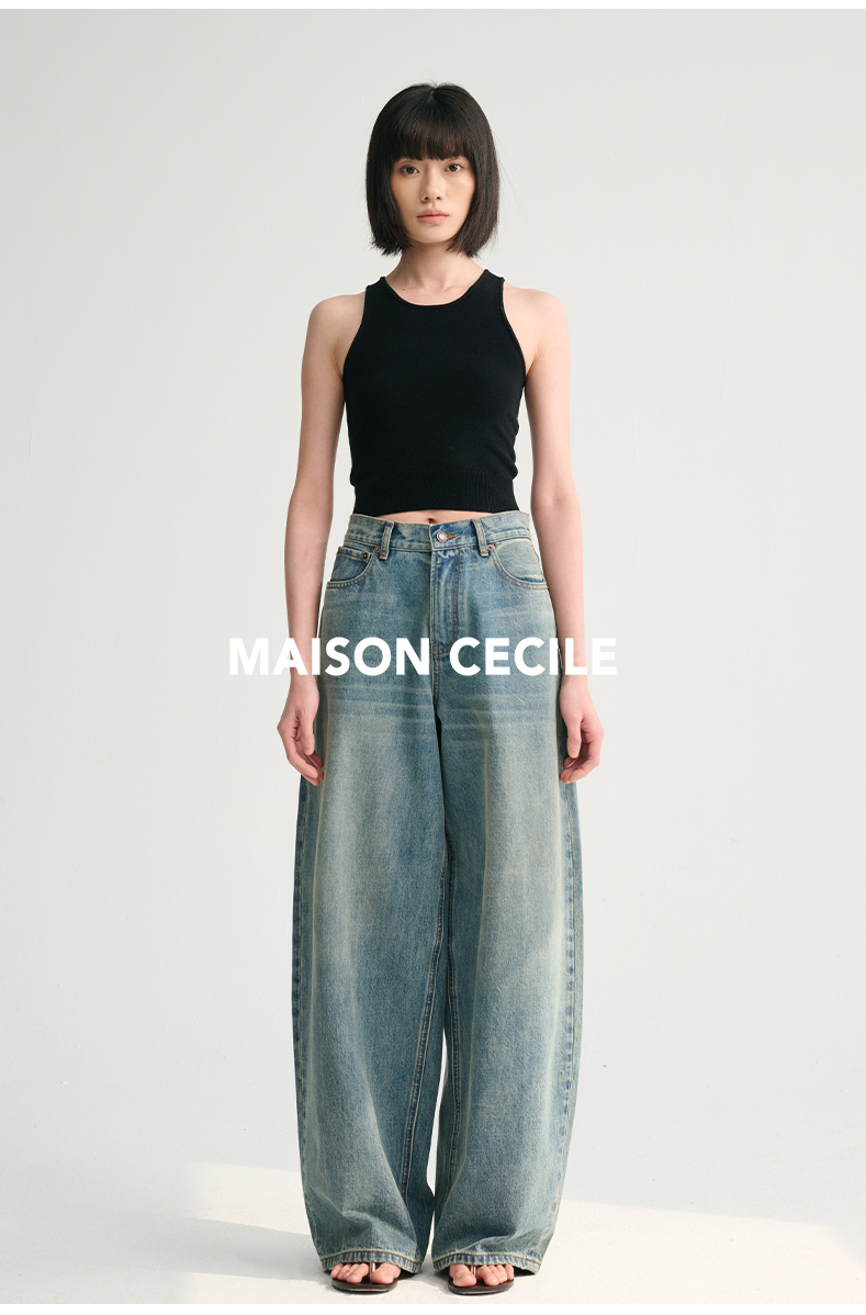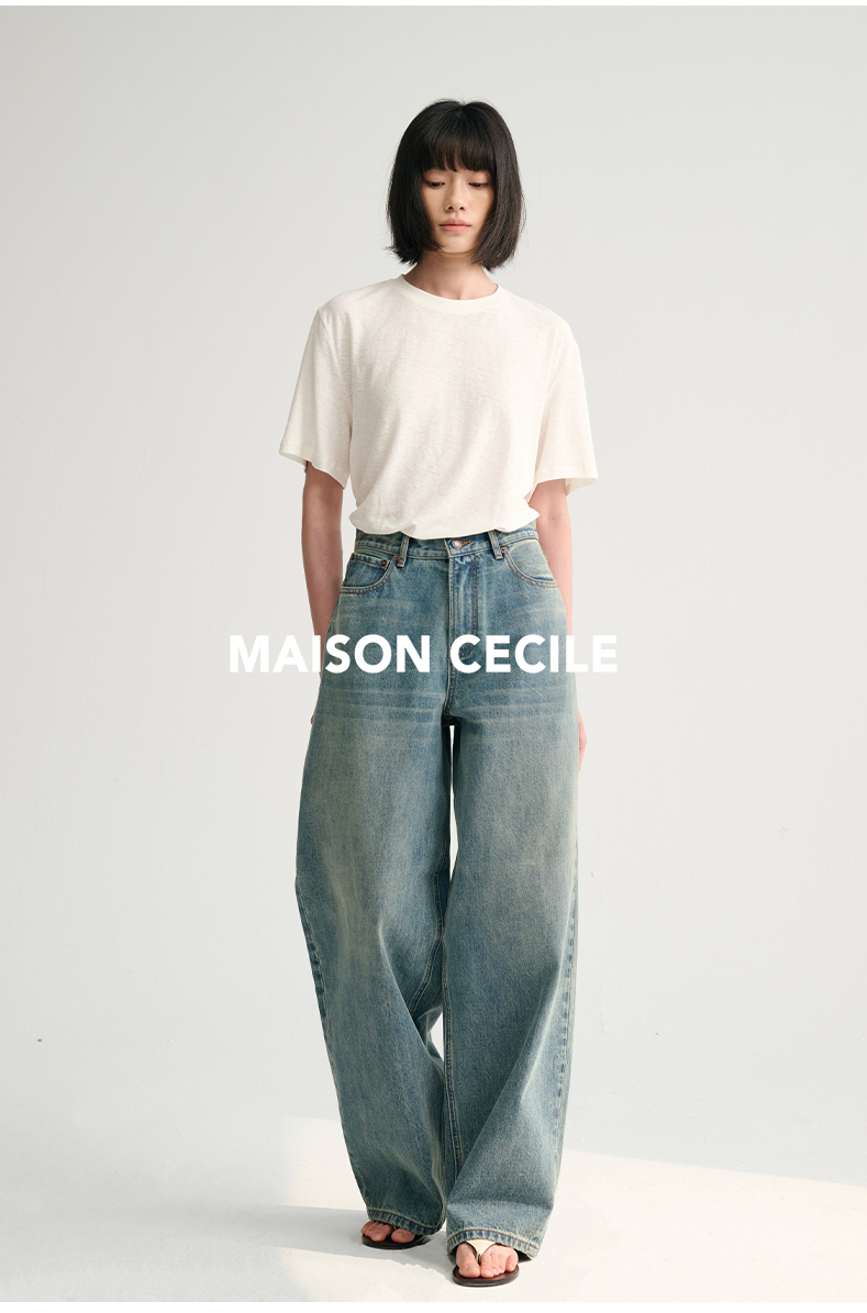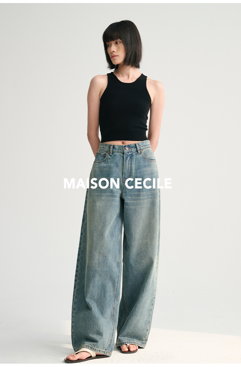 MAISON CECILE雅痞街头风格阔腿牛仔高腰直筒裤
