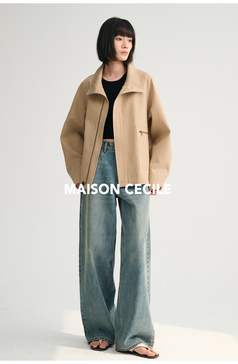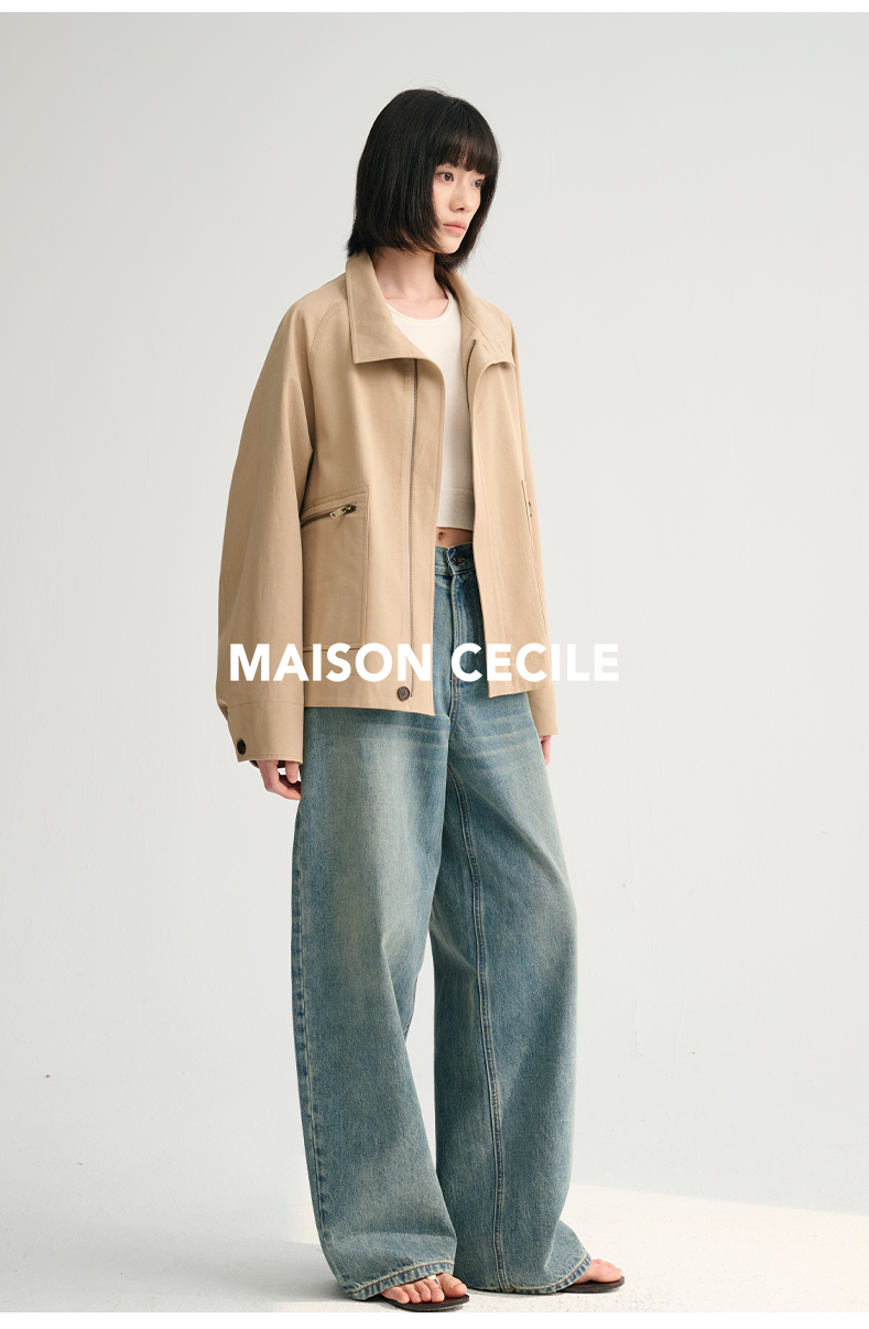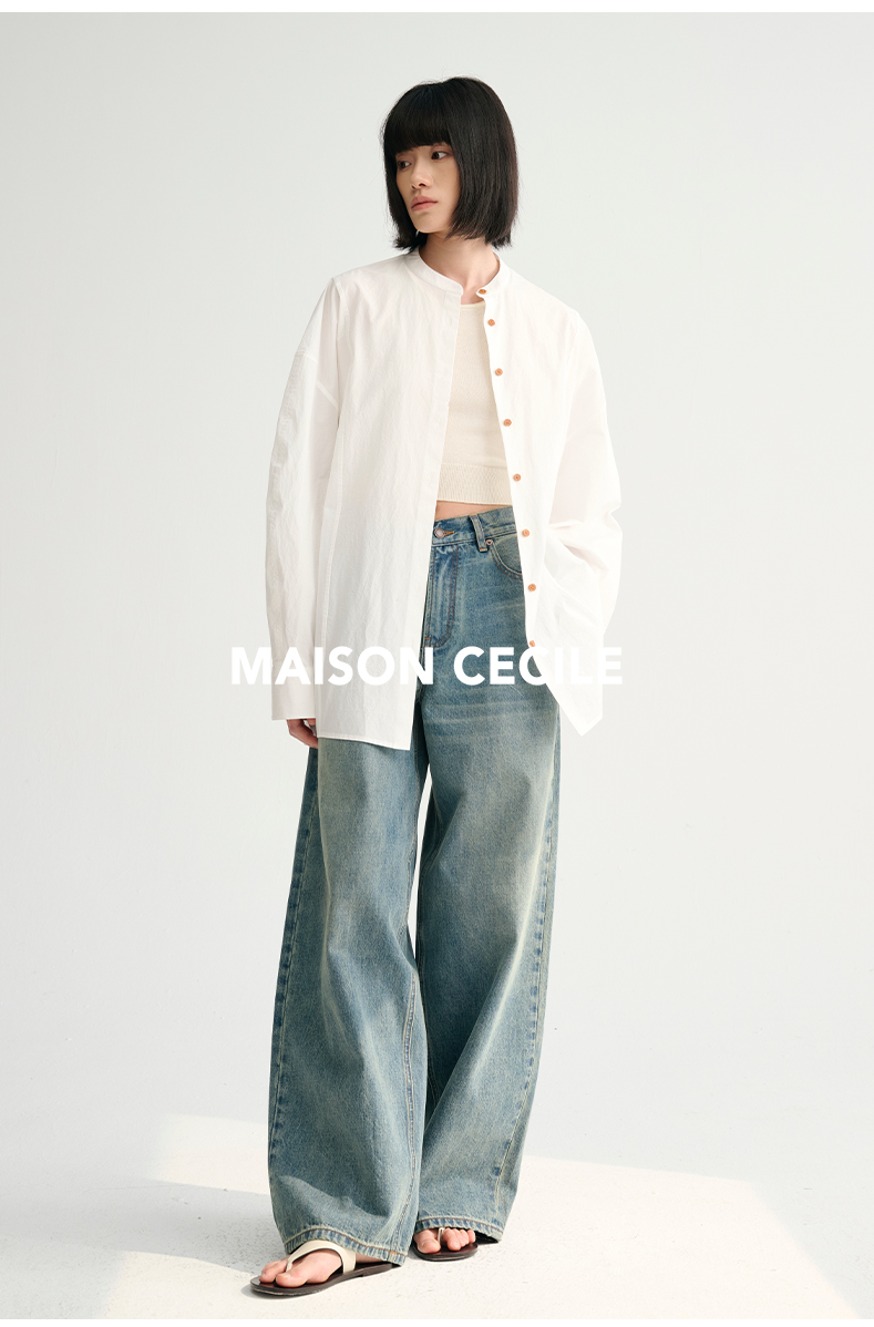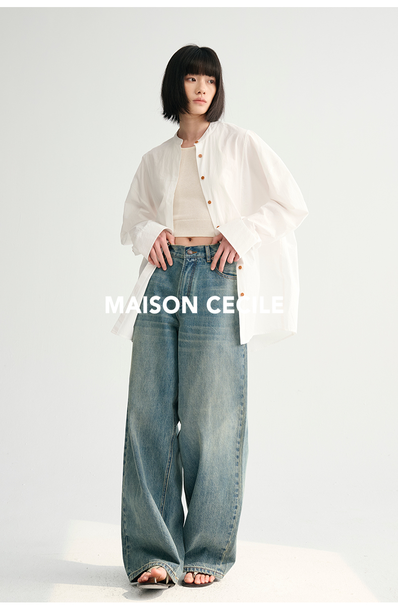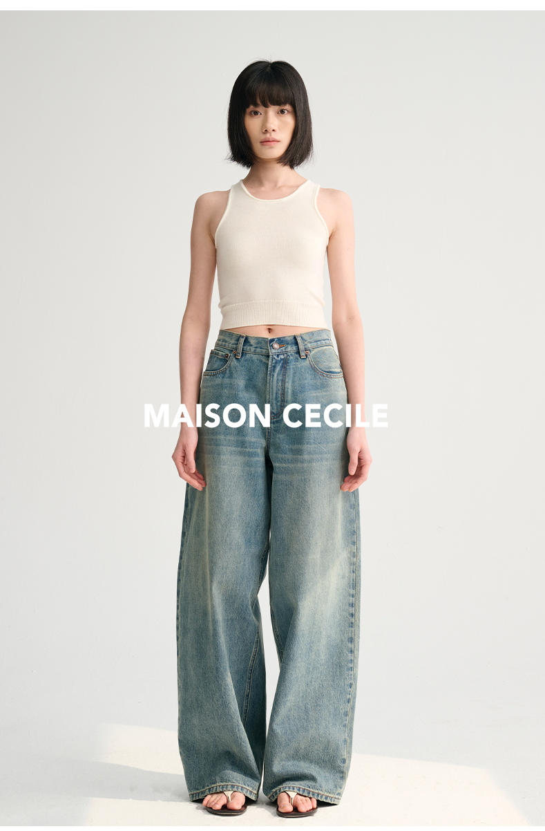 MAISON CECILE雅痞街头风格阔腿牛仔高腰直筒裤