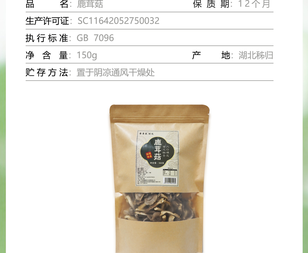 【消费助农】鑫勇泰秭归鹿茸菇100g
