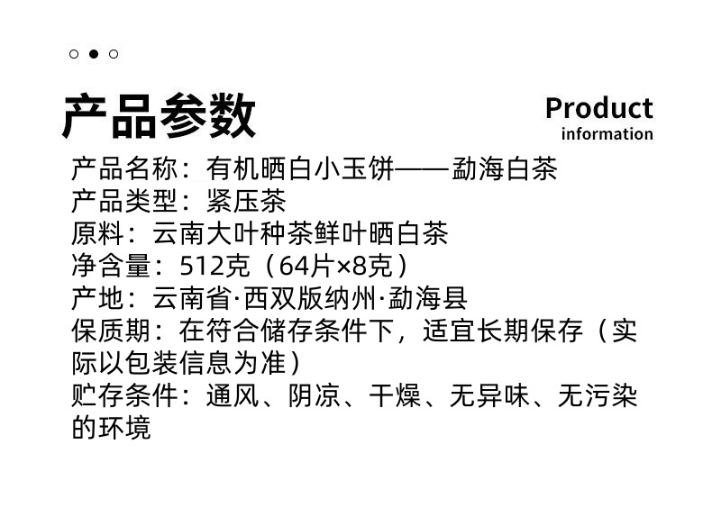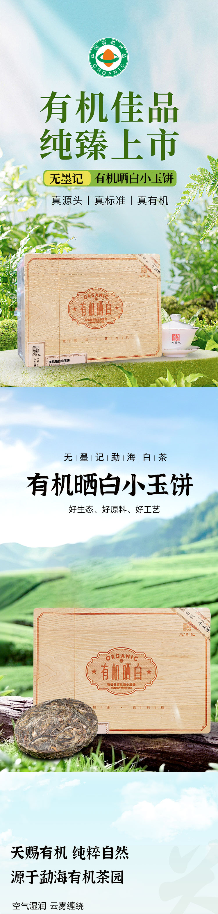 无墨记有机晒白小玉饼-勐海白茶512克/盒