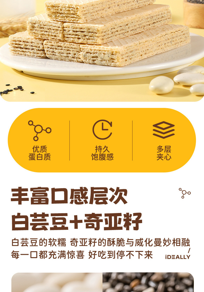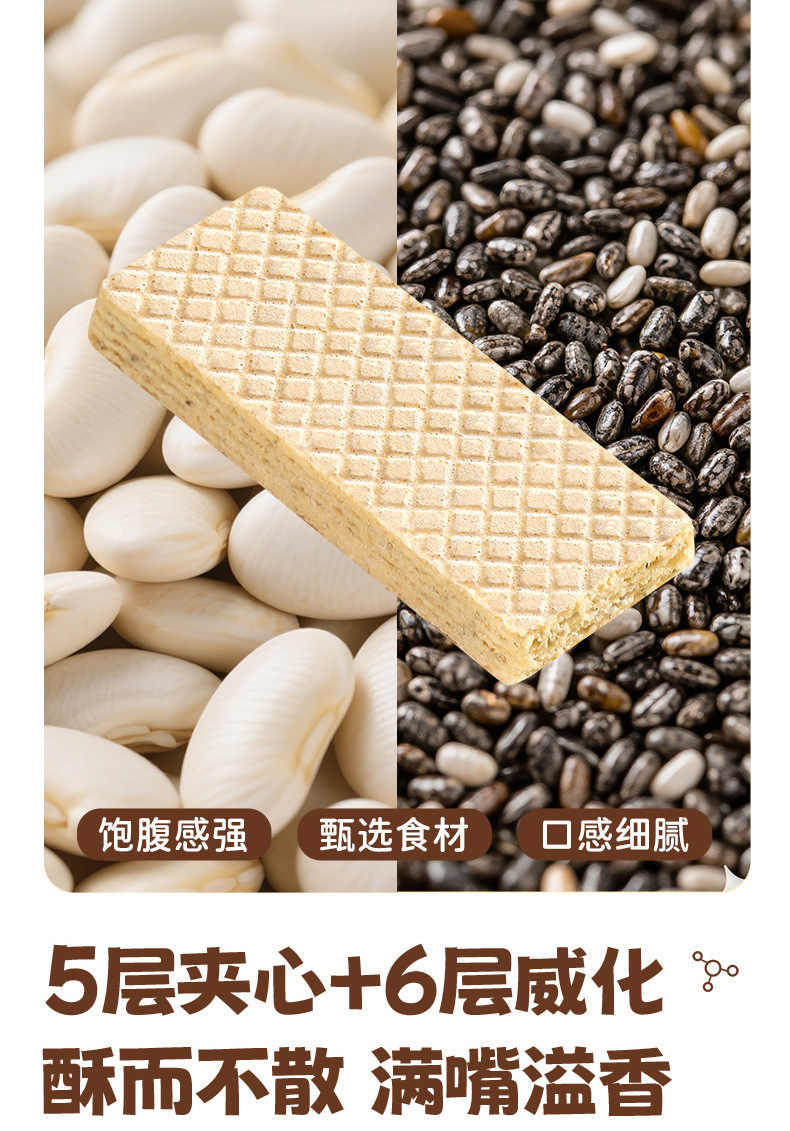 【49.9抢5盒❗️白芸豆奇亚籽威化蛋白棒】甄选品质原料制作,不单独添加蔗糖,老少皆宜美味健康无负担,早餐代餐下午茶休闲茶点小吃