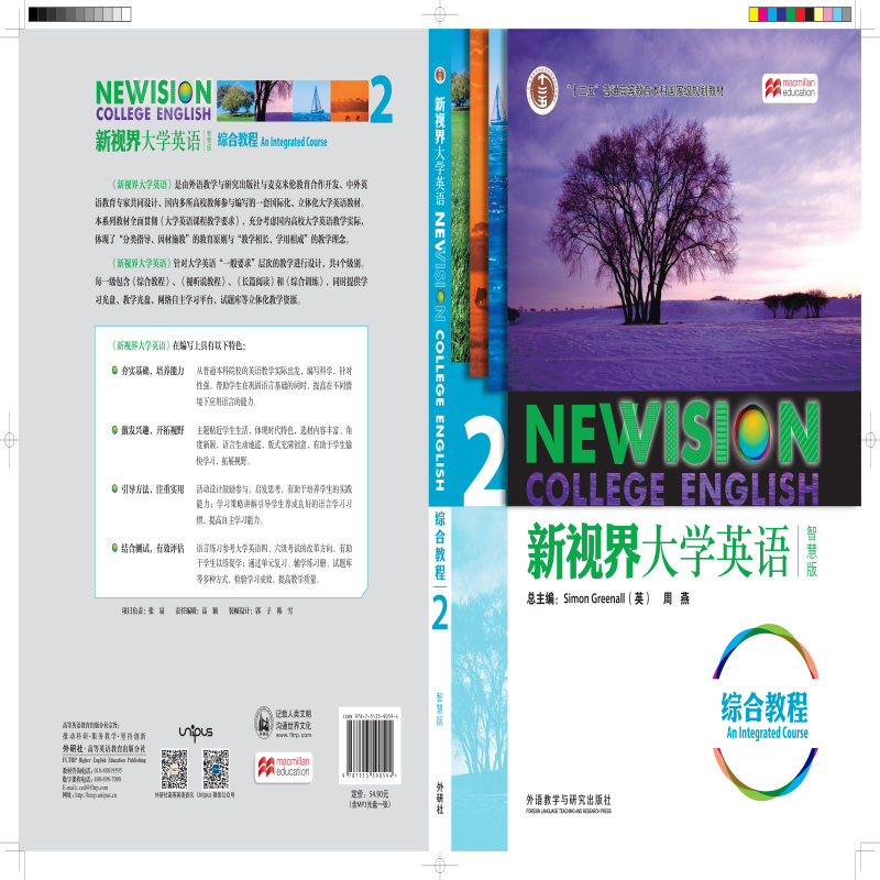 《新视界大学英语 综合教程》选篇题材丰富广泛、体裁多样,课文贴近学生生活,体现实用性,有利于学生开拓视野,提高学习积极性。该教程难度控制得当,合理地控制了课文长度和词汇比例,着重覆盖《大学英语课程教学要求》一般要求词汇和积极词汇,加强学生对此类词汇的学习与运用。该教程练习形式灵活多样,综合培养读、写、译多项技能,既包含夯实基础的词汇及语法练习,又提供促进学生学习策略、思维能力及语言综合运用能力的提高练习。该教程还拥有立体教学资源,配有MP3光盘,提供课文与生词录音;开发与教材配套的网络课程,创建自主学习环境;教学课件与试题库为教师提供丰富的教学资源。