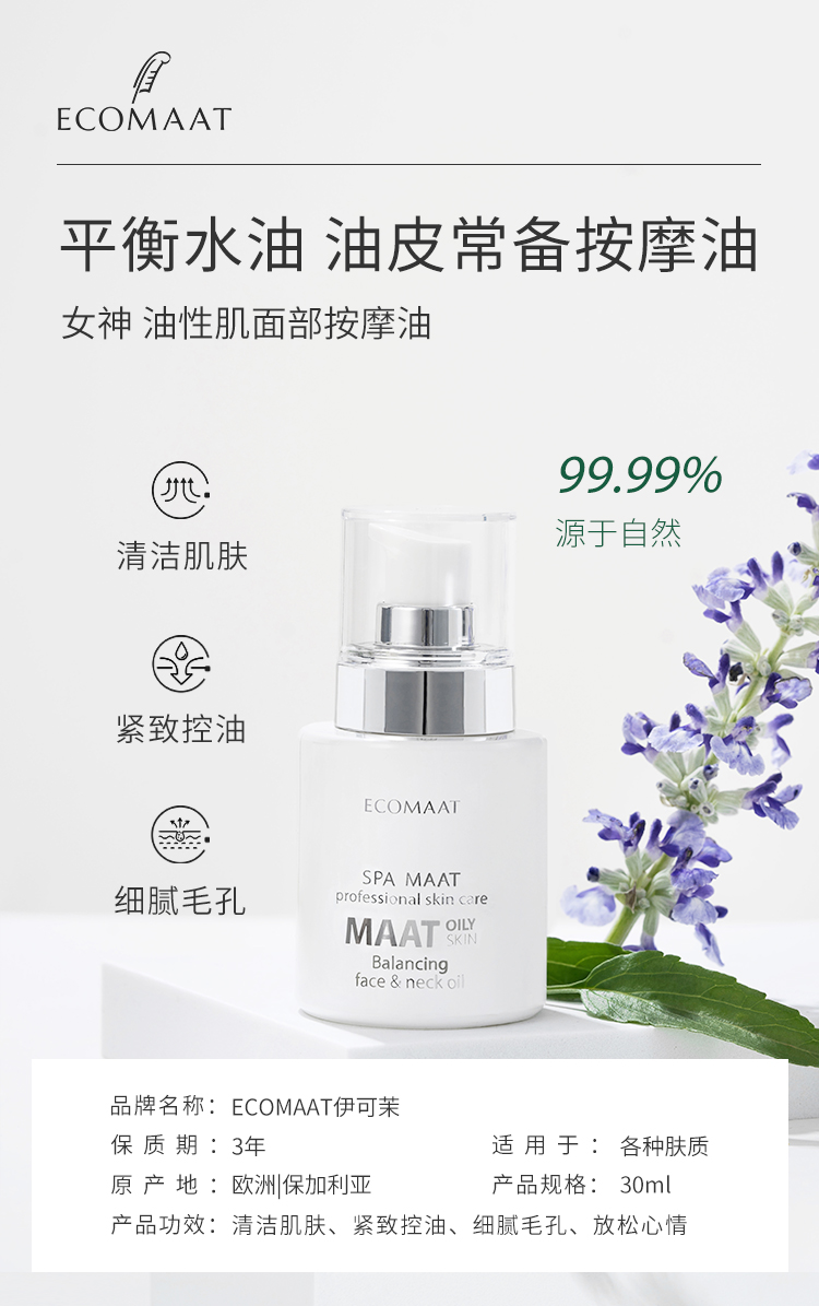 【油性专用油】平衡调理肤质 点亮全脸 ECOMAAT伊可茉女神油性女神油 30ml