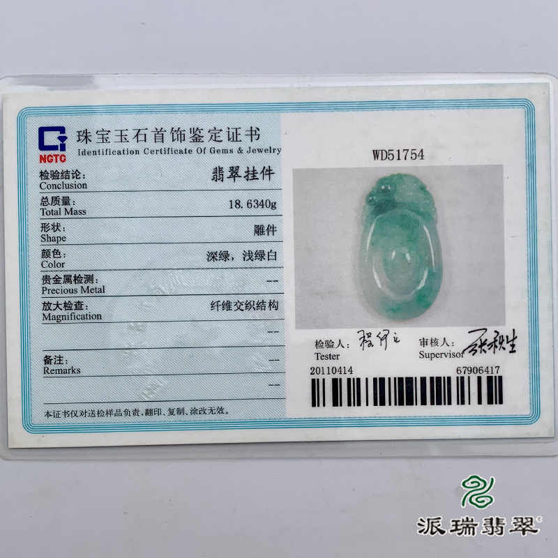 派瑞翡翠 翡翠挂件 糯种 绿色