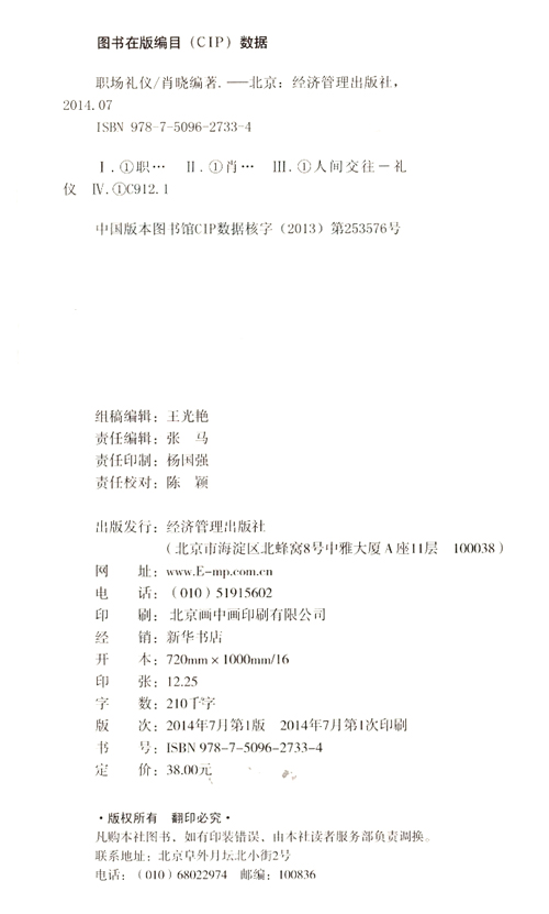 (仓发) 职场礼仪:职场生存与发展的智慧/经济管理出版社/肖晓/9787509627334
