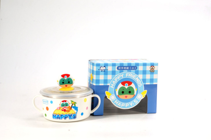 蜜儿港开心超人密胺不锈钢双手柄碗(小)MB2211#