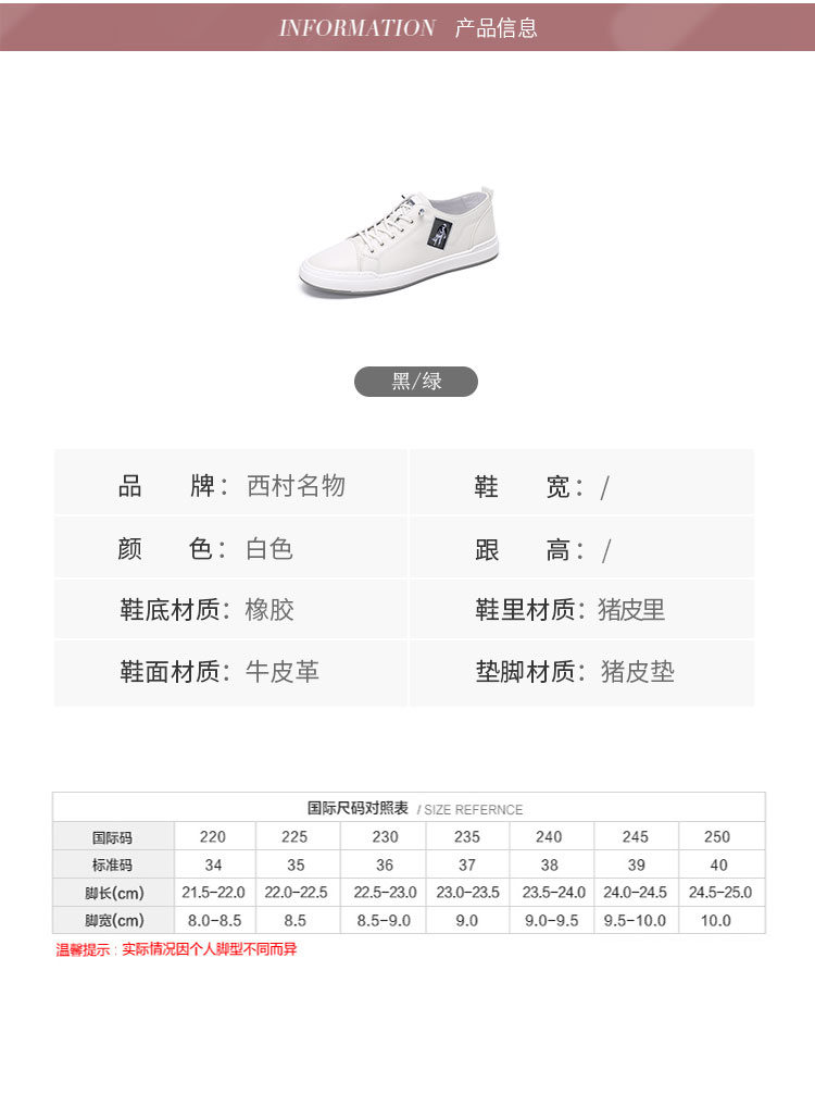 西村名物男鞋2022春夏季新款牛皮撞色休闲板鞋户外舒适运动小白鞋T12AW10431