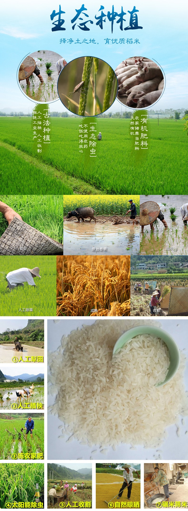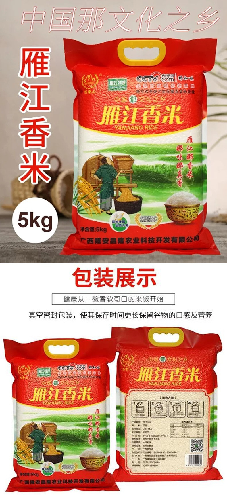 本产品选用广西南宁市隆安县雁江镇独特土质及气候播种生产的广西现行推广的当年优质稻谷加工而成,保留原米的鲜香和各种营养成分,且不添加任何防霉剂、防虫剂,是正宗的生态米,宜及时食用。