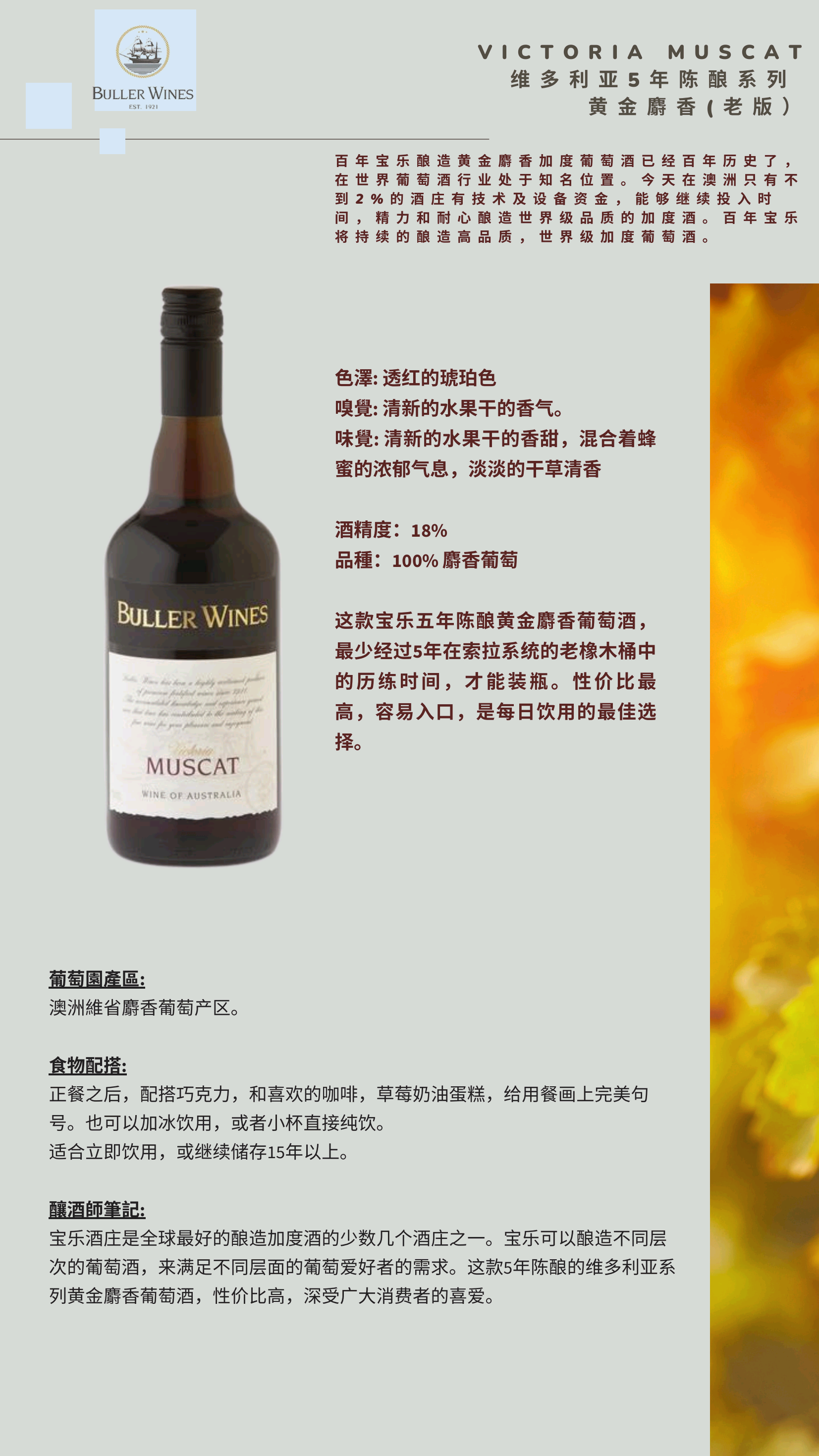 宝乐维多利亚5年陈酿系列黄金麝香葡萄酒750ml