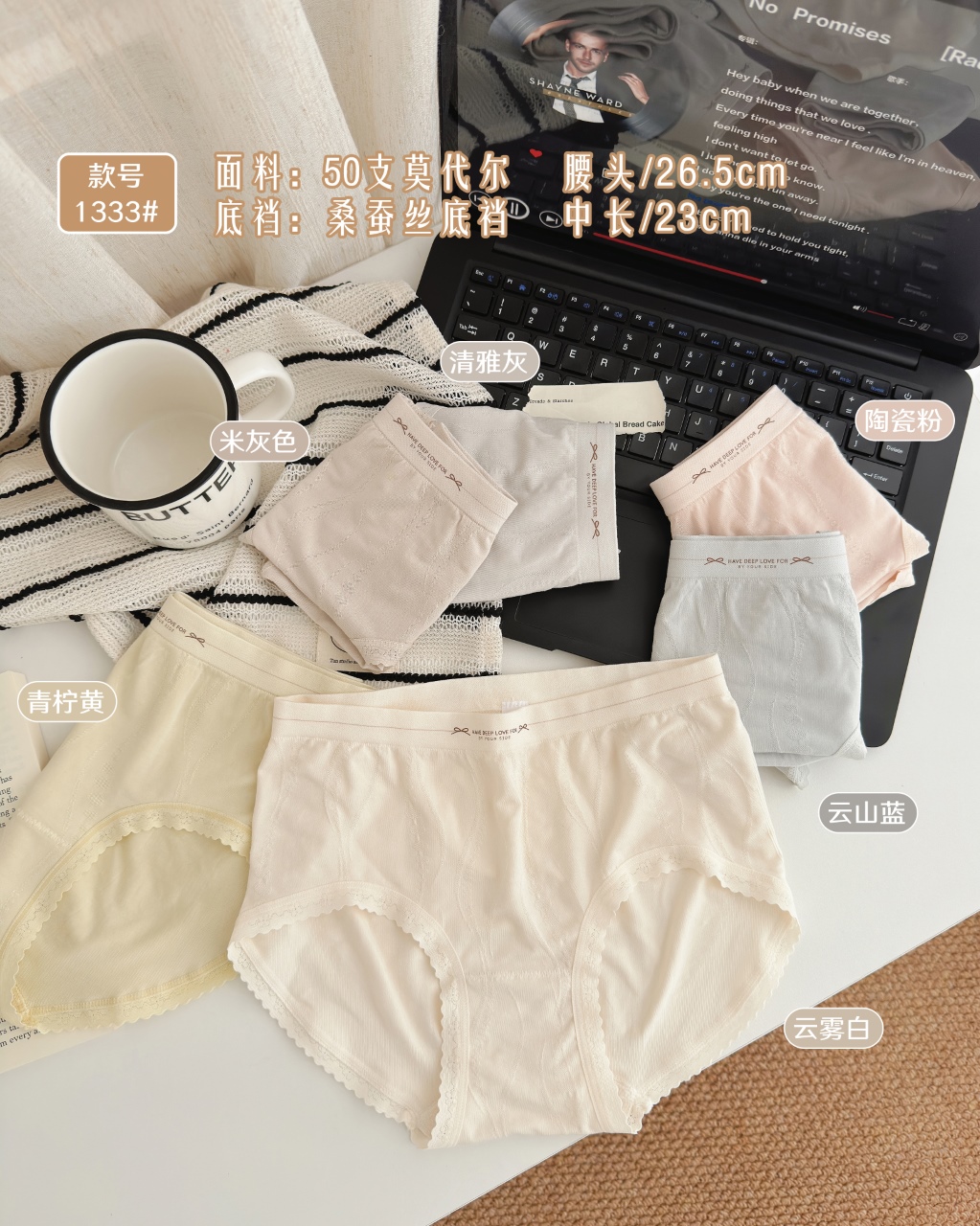 高品质女士50支莫代尔无缝裸氨内裤9748