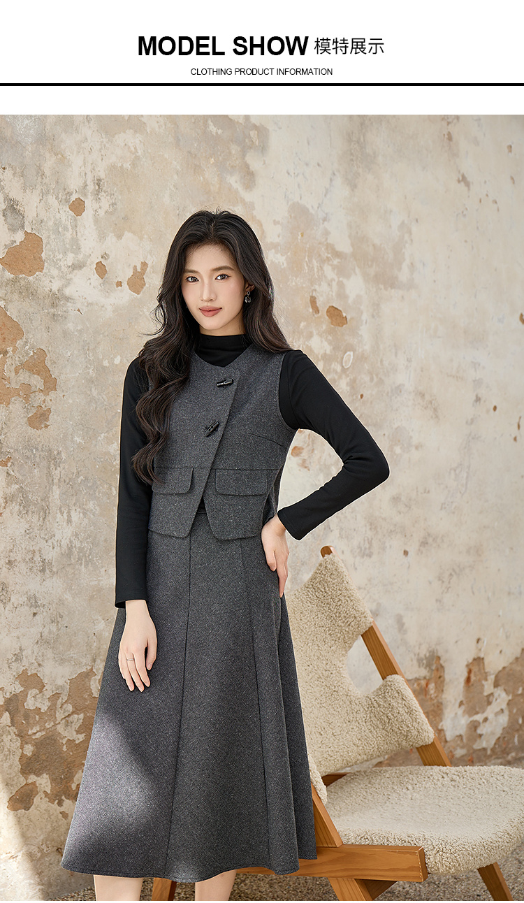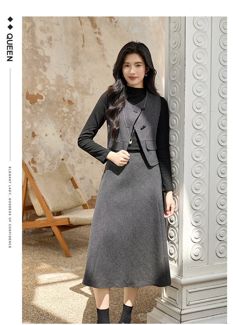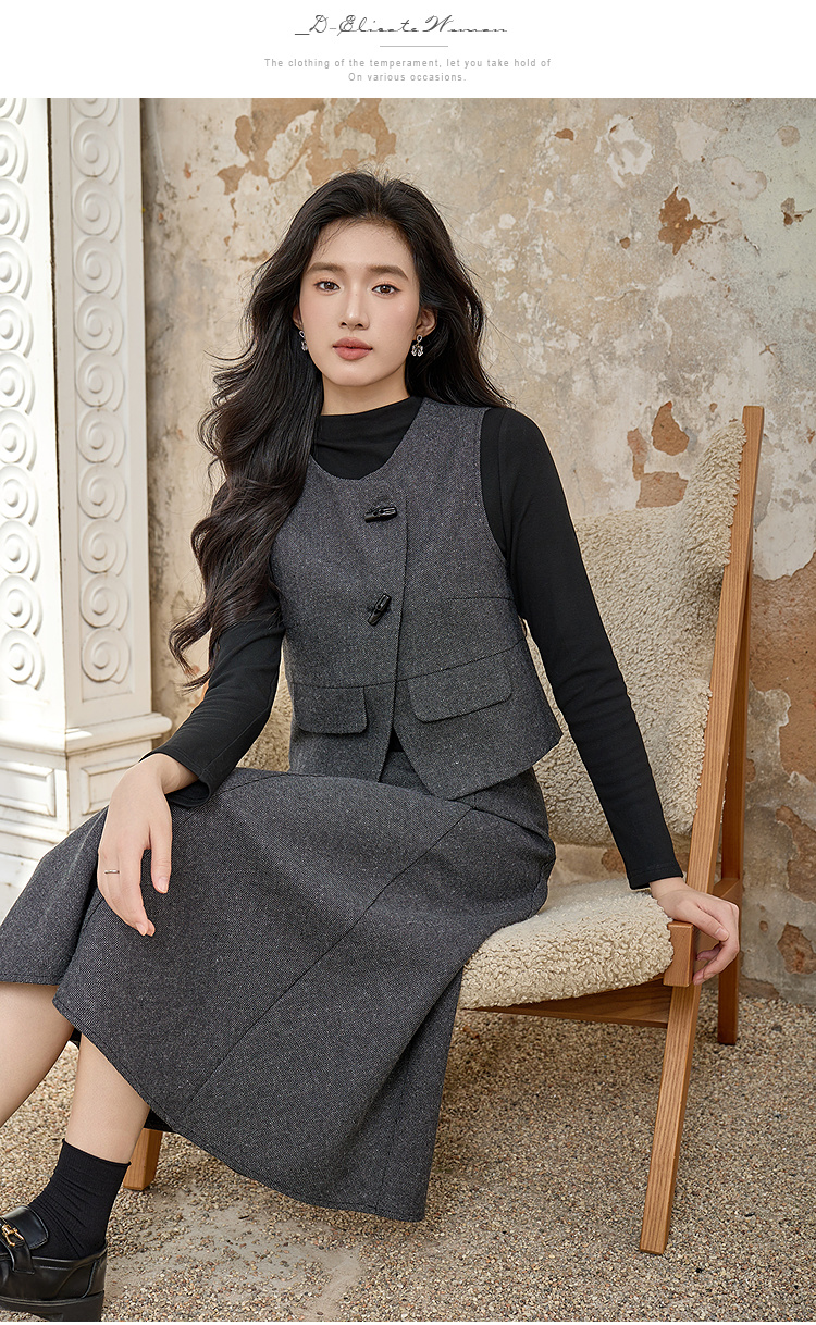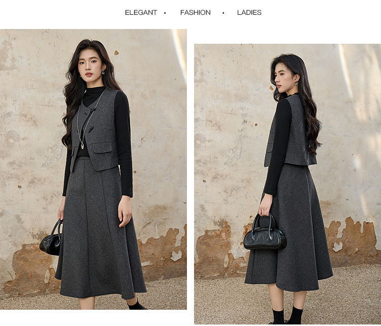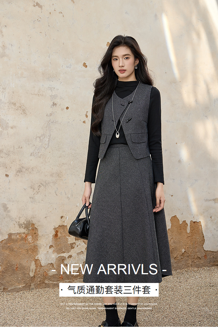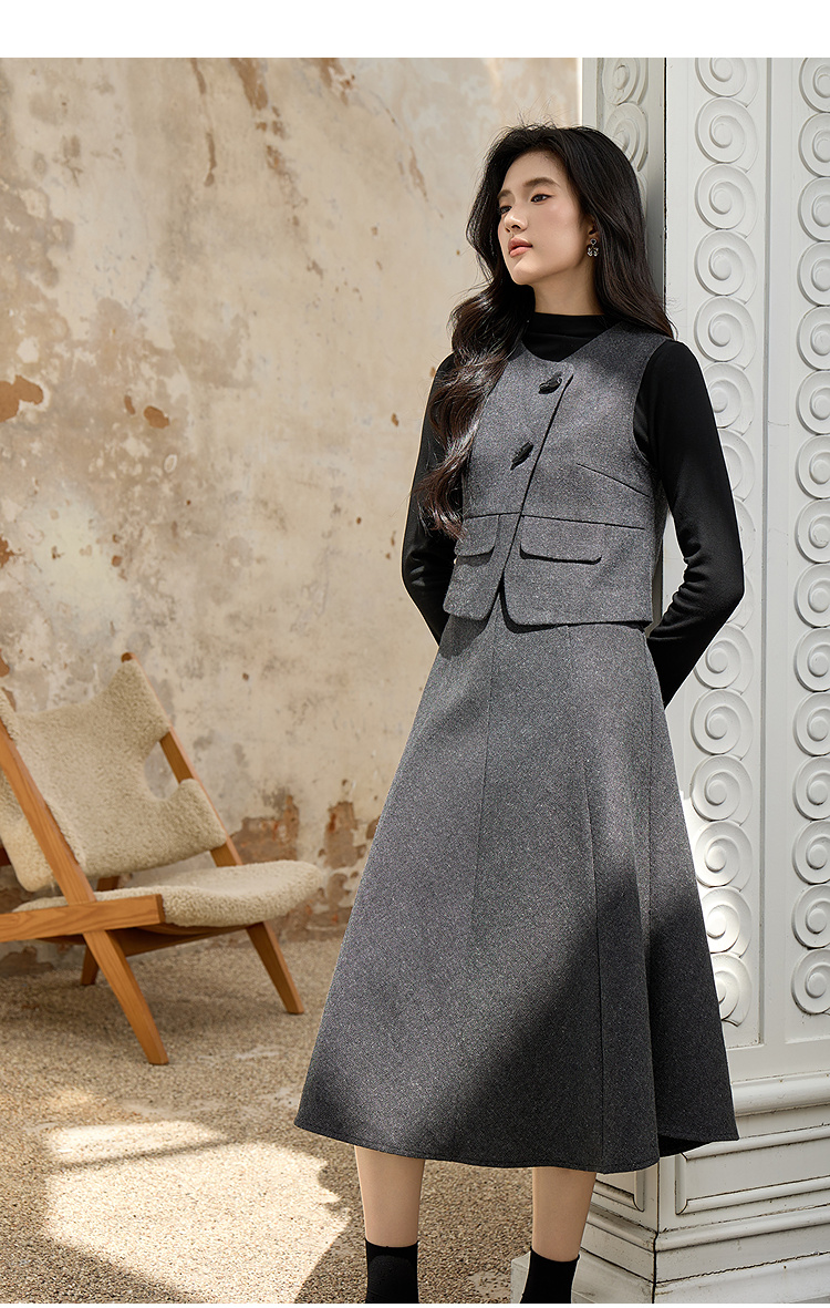 奢姿大码女装2025冬装胖妹妹气质通勤女马甲色内搭中长半身裙9954994354A