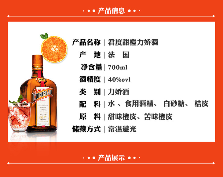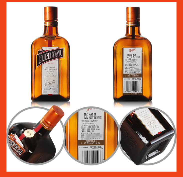 Cointreau法国君度 始于1849 八佰电影同款 基酒烘焙 橙皮萃取 力娇酒 利口酒 700ml/瓶 包邮