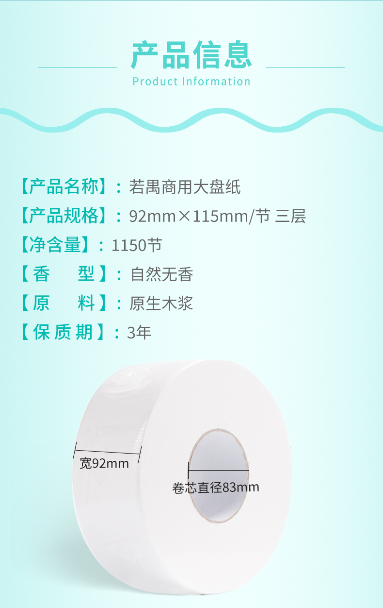 若禺大卷纸原生木浆卫生纸600g三层平纹韧性珍宝纸大盘纸卷纸1件12卷RZ002