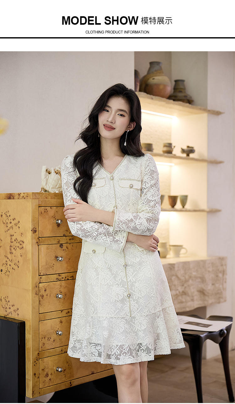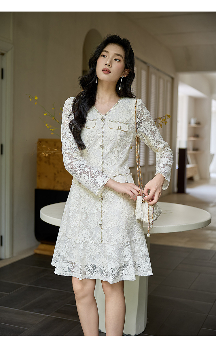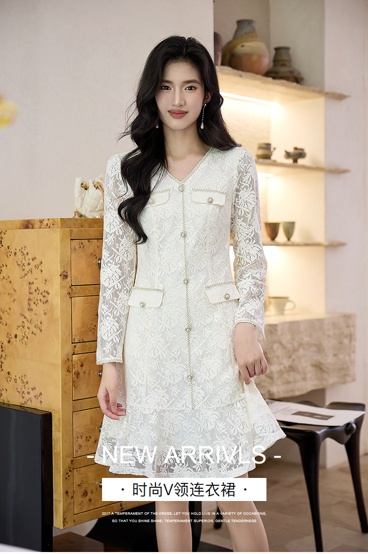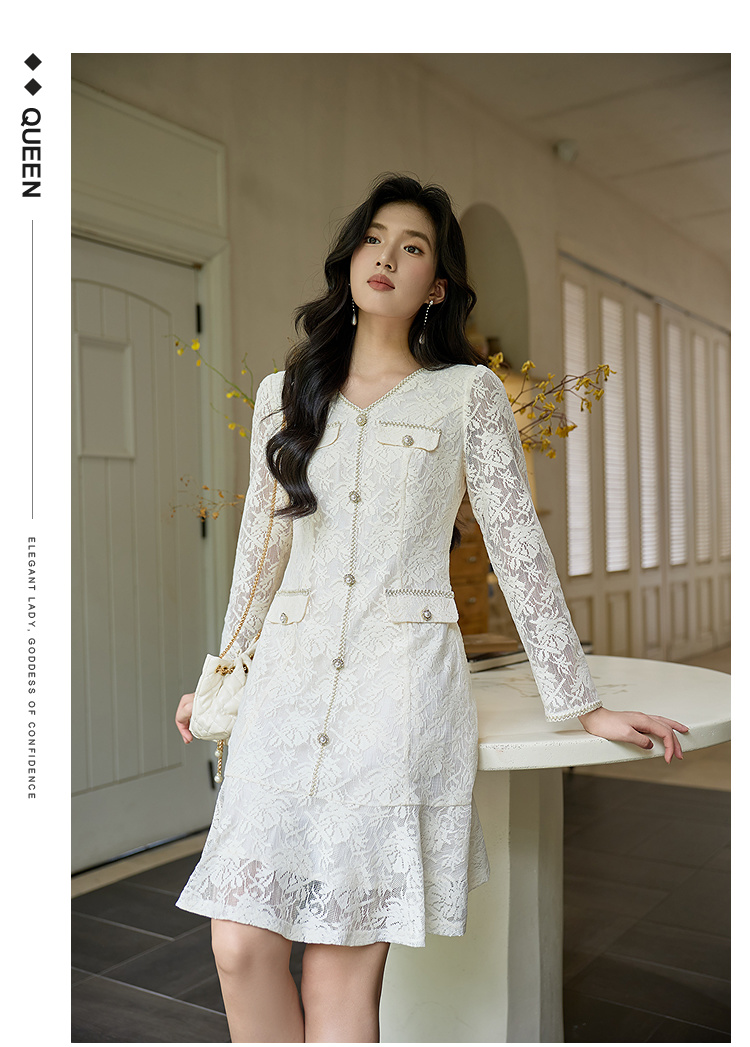 奢姿大码女装2025秋季气质蕾丝V领连衣裙胖妹妹鱼尾摆时尚裙子9953853717