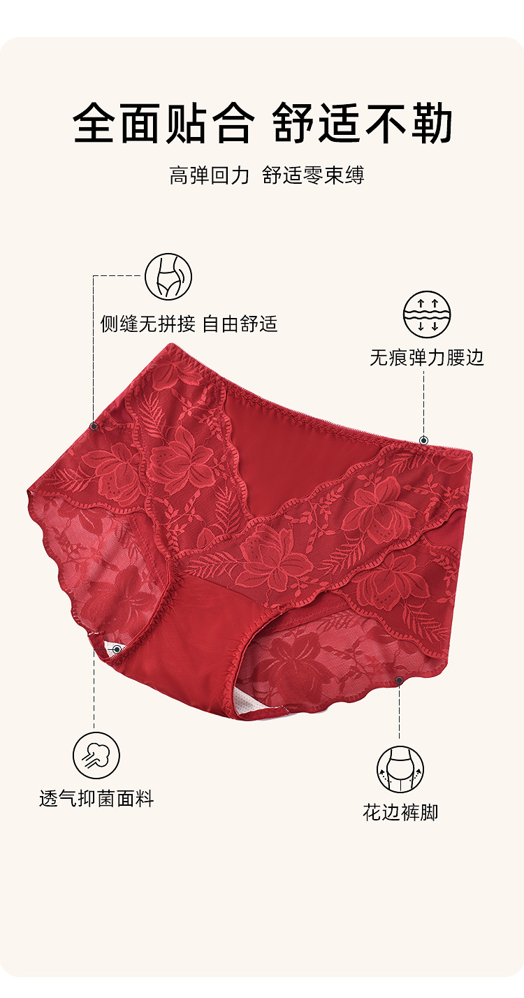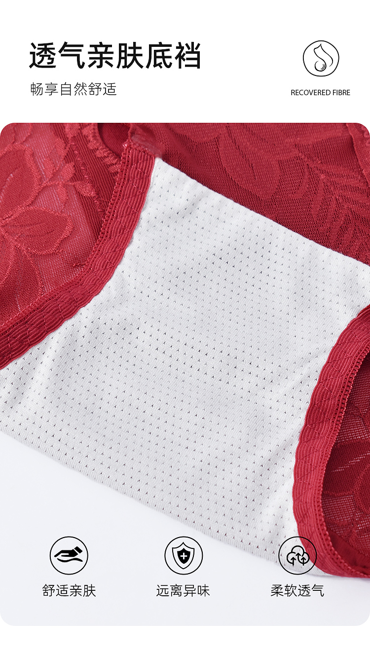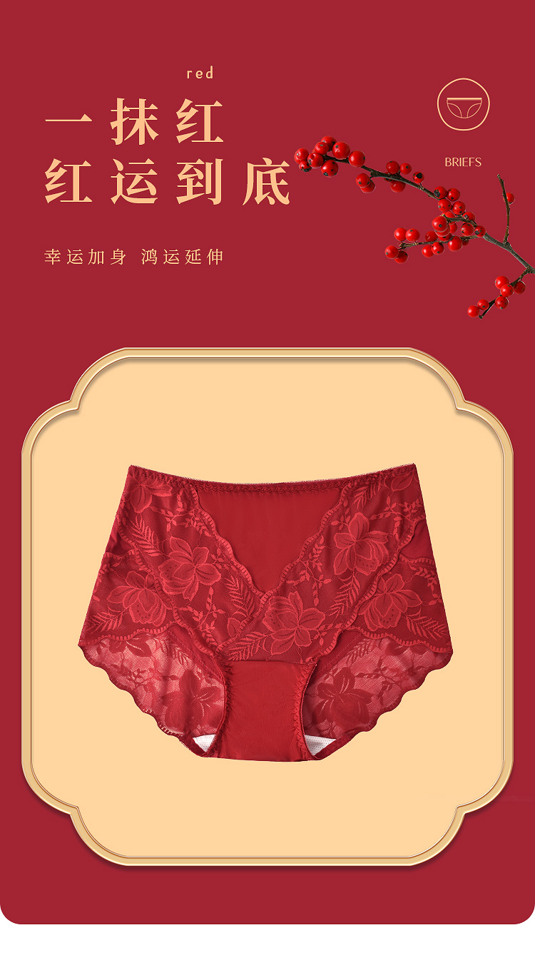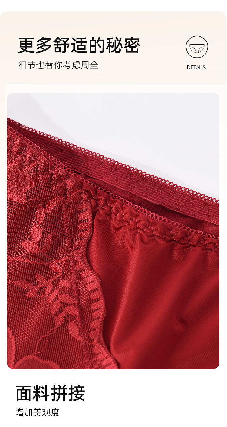 【99元3条,数量拍3】新款本命年红色女士内裤抗菌裆蕾丝中腰大码结婚礼物DKM1232