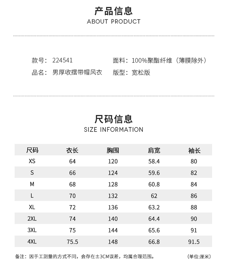 【拼接连帽防风】赛琪简约男士冬季厚风衣224541