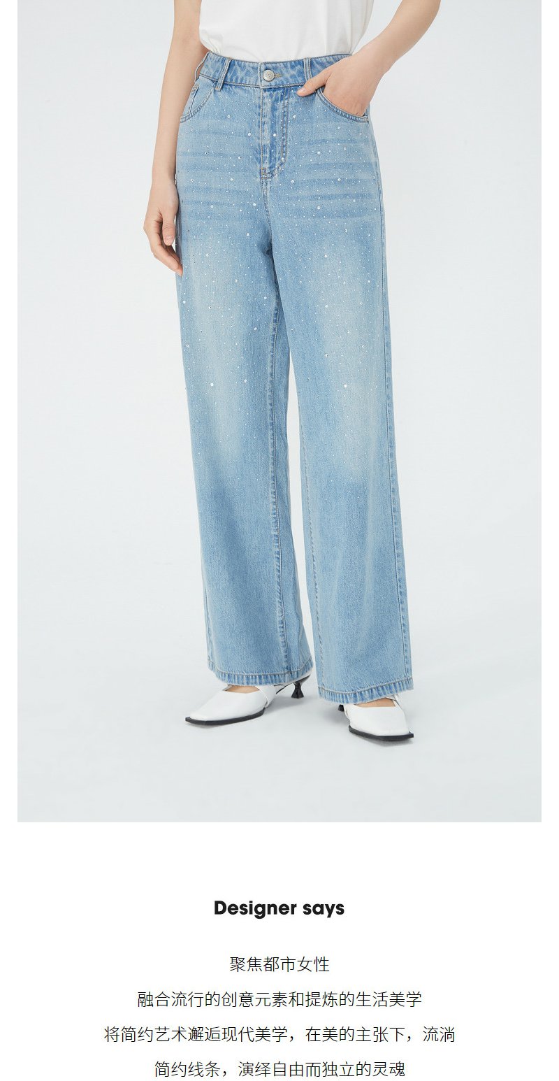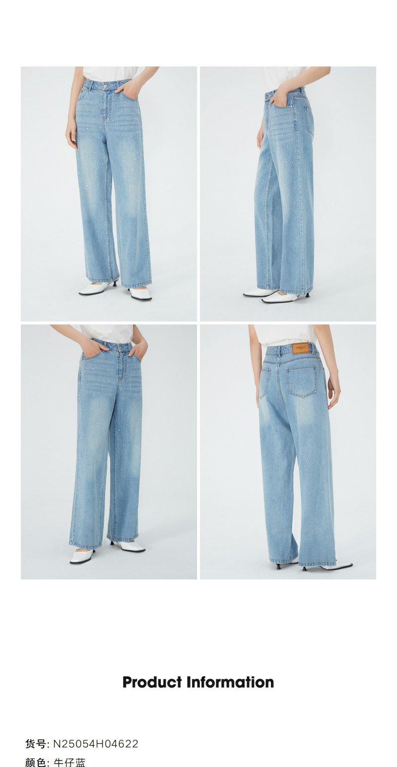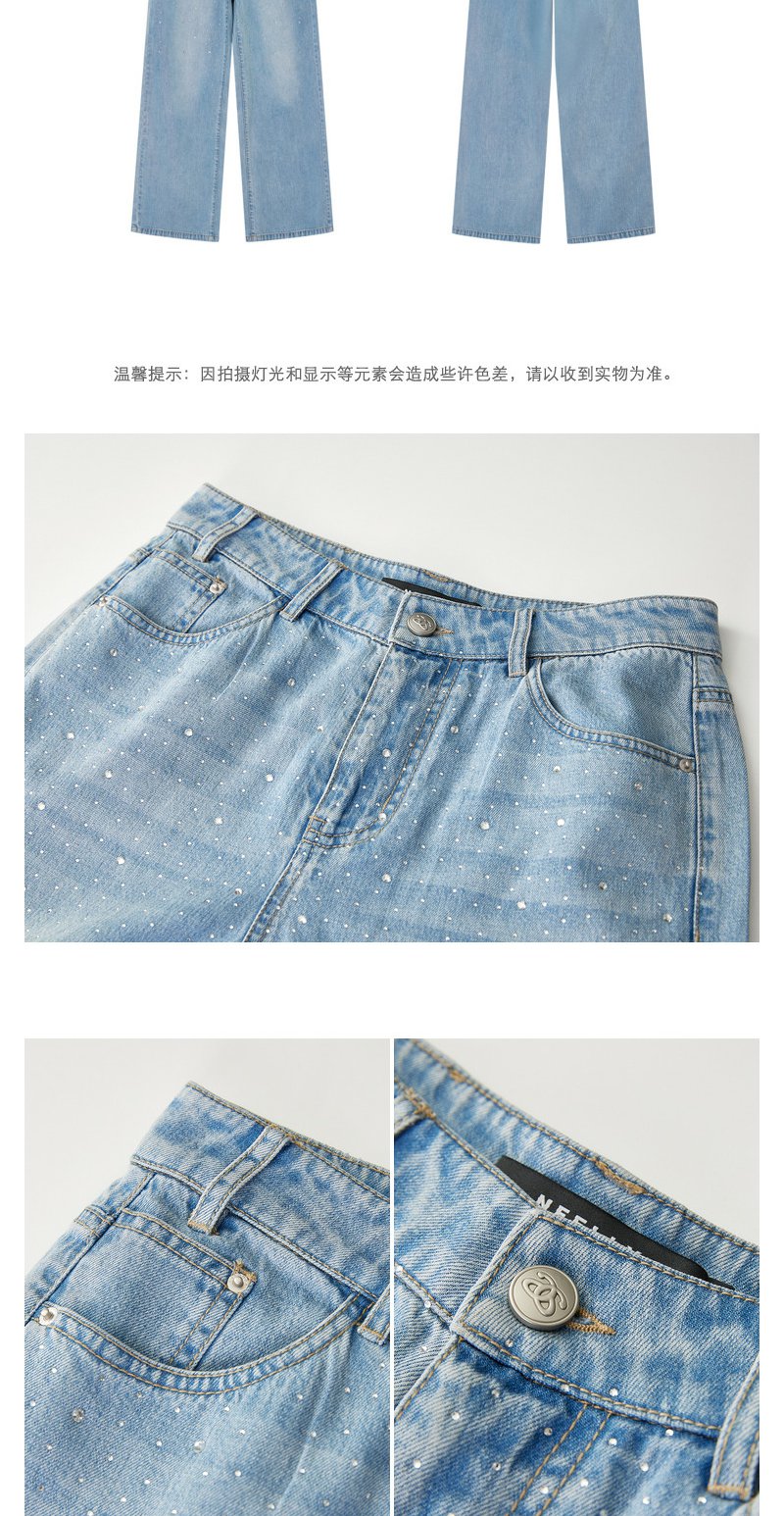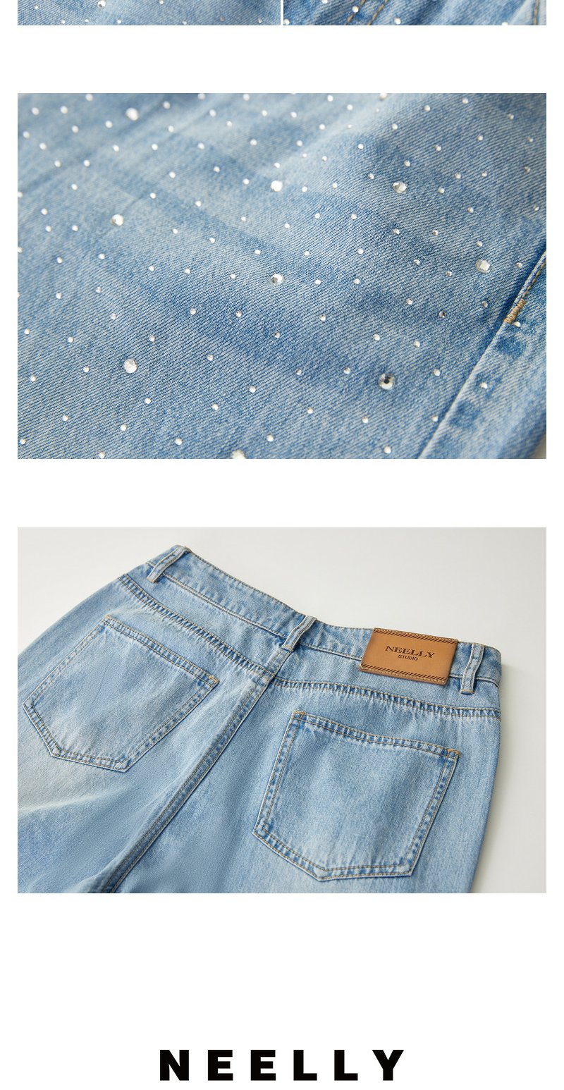 NEELLY纳俪商场同款夏季新款宽松垂感牛仔裤女高腰百搭钻饰直筒裤N25054H04622