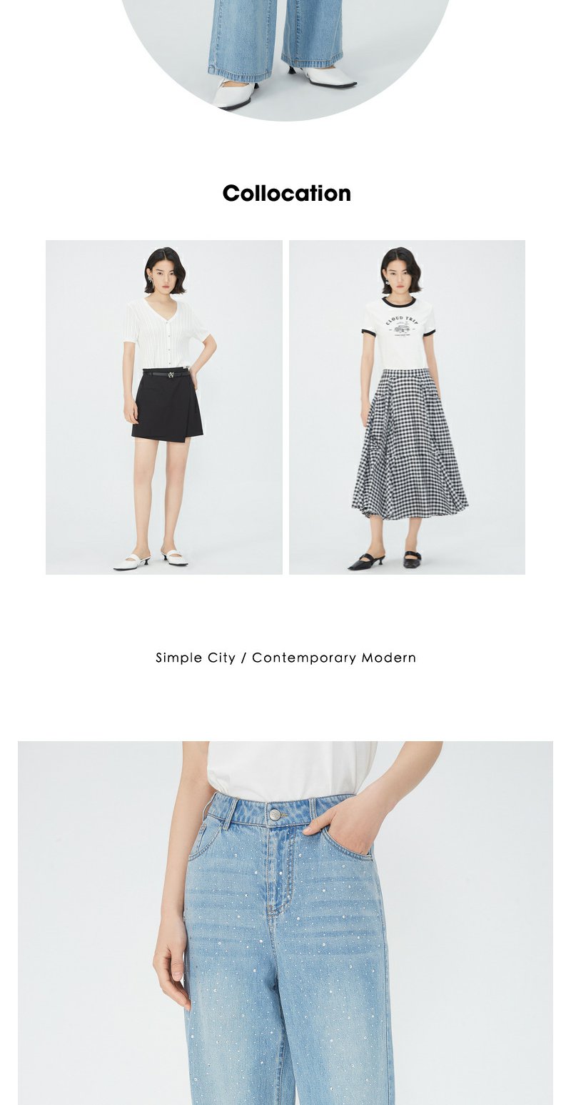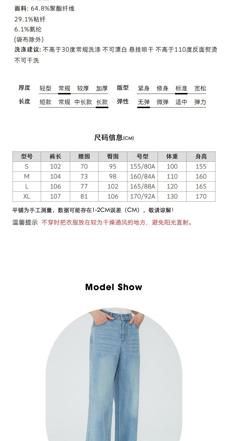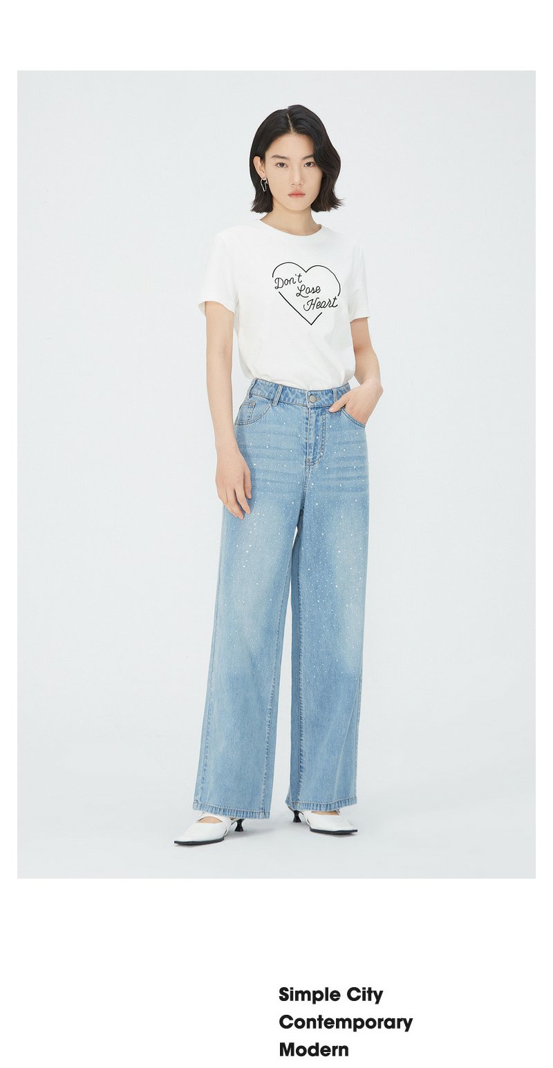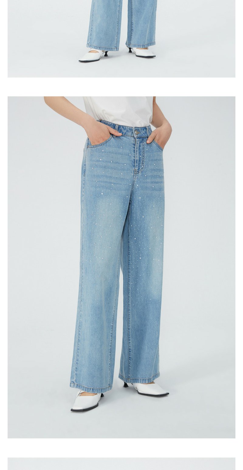 NEELLY纳俪商场同款夏季新款宽松垂感牛仔裤女高腰百搭钻饰直筒裤N25054H04622