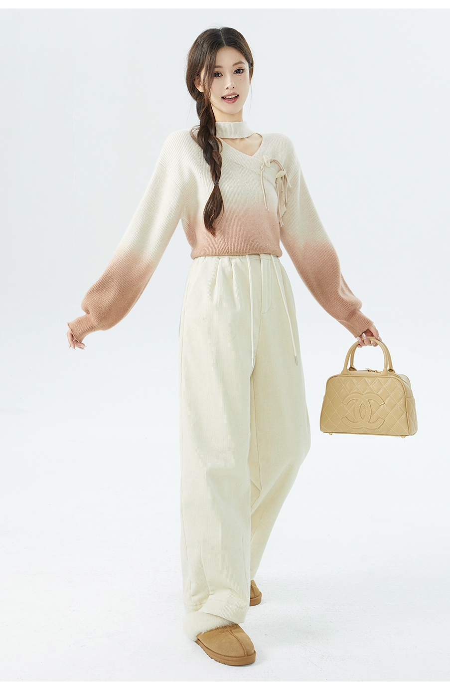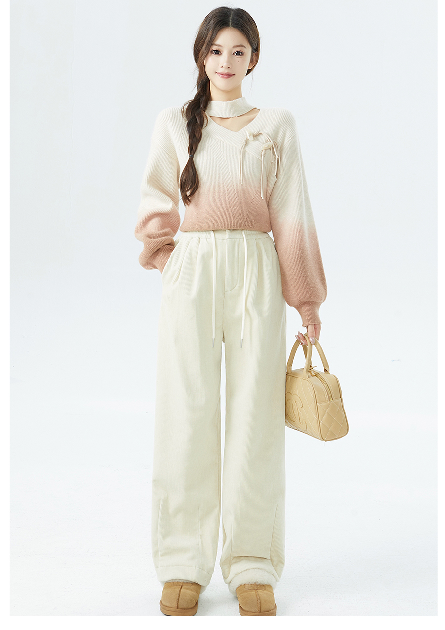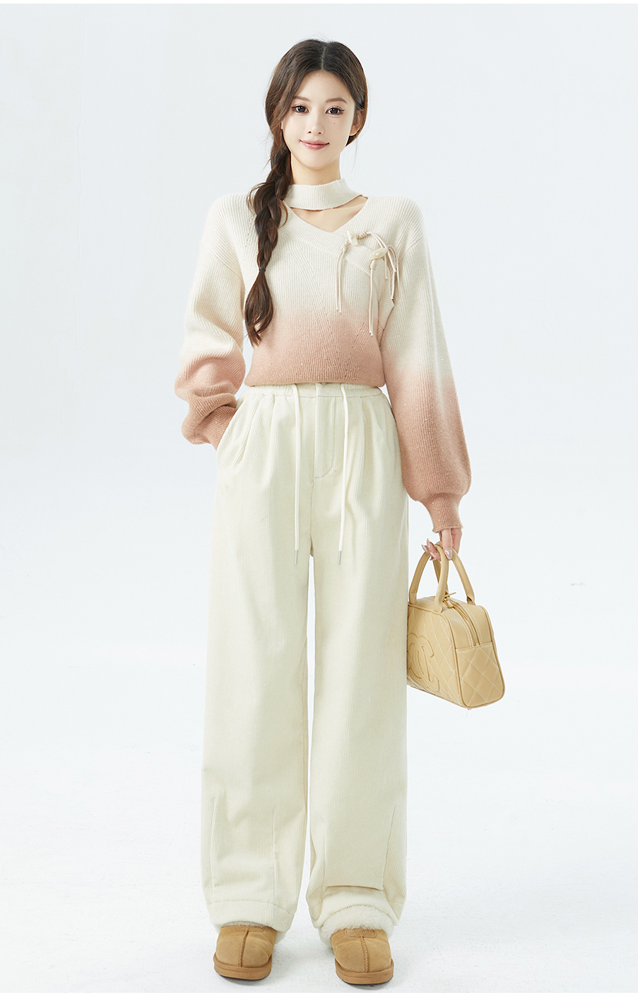 P&X设计师女装冬季萝卜型宽松百搭高腰休闲长裤 824409203 杏色