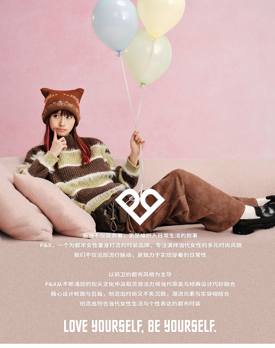 P&X设计师女装气质女神宽松短款毛衣824418170 杏色
