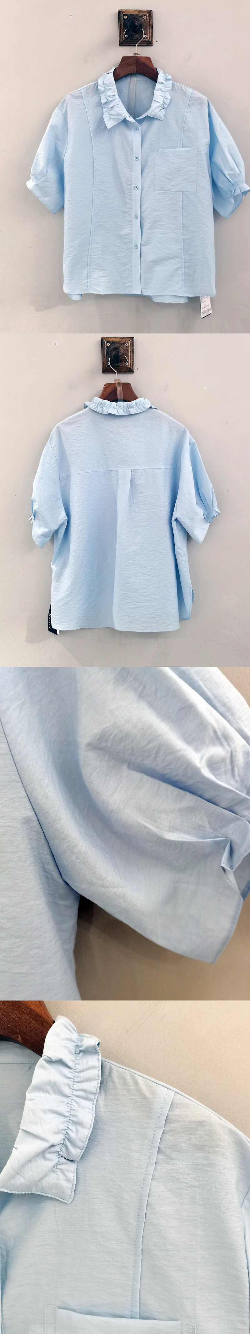 麦寻浅蓝色短袖小衫XSSFX36A