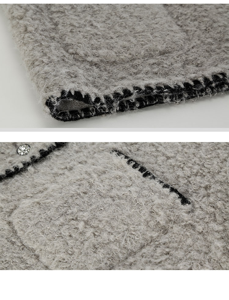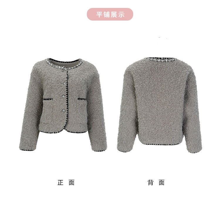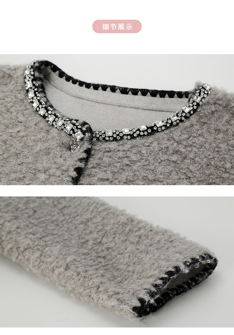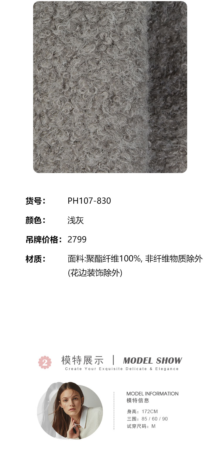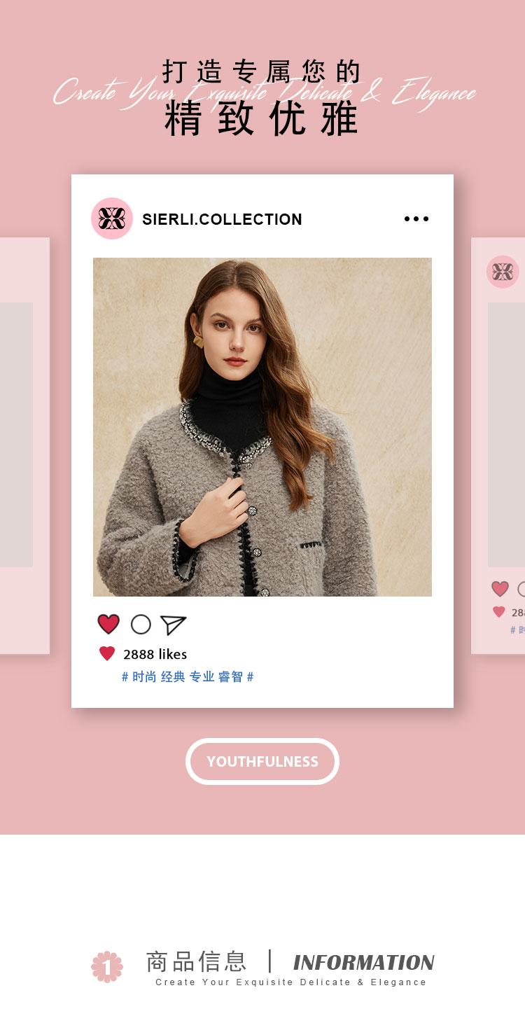 PH107斯尔丽2024冬季新款小香风皮毛一体圆领防风保暖优雅仿绵羊毛外套