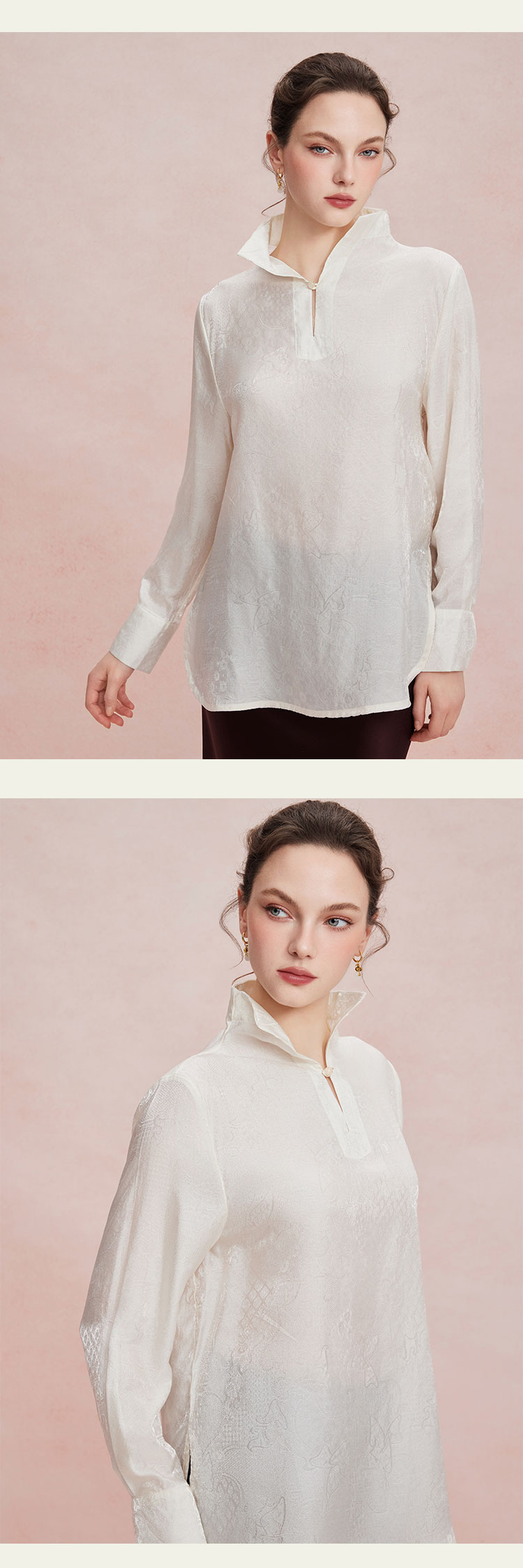 RF209斯尔丽26新款改良国风立领可打开穿宽松版及臀挡肉衬衣