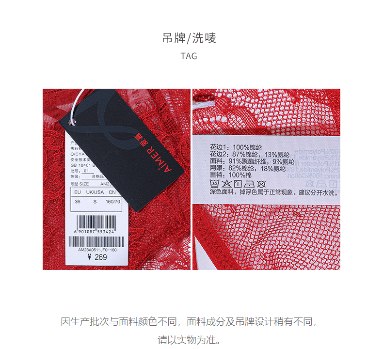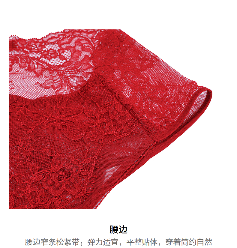 爱慕婚礼之夜秋冬内裤女红色性感蕾丝棉质底裆中腰平角裤