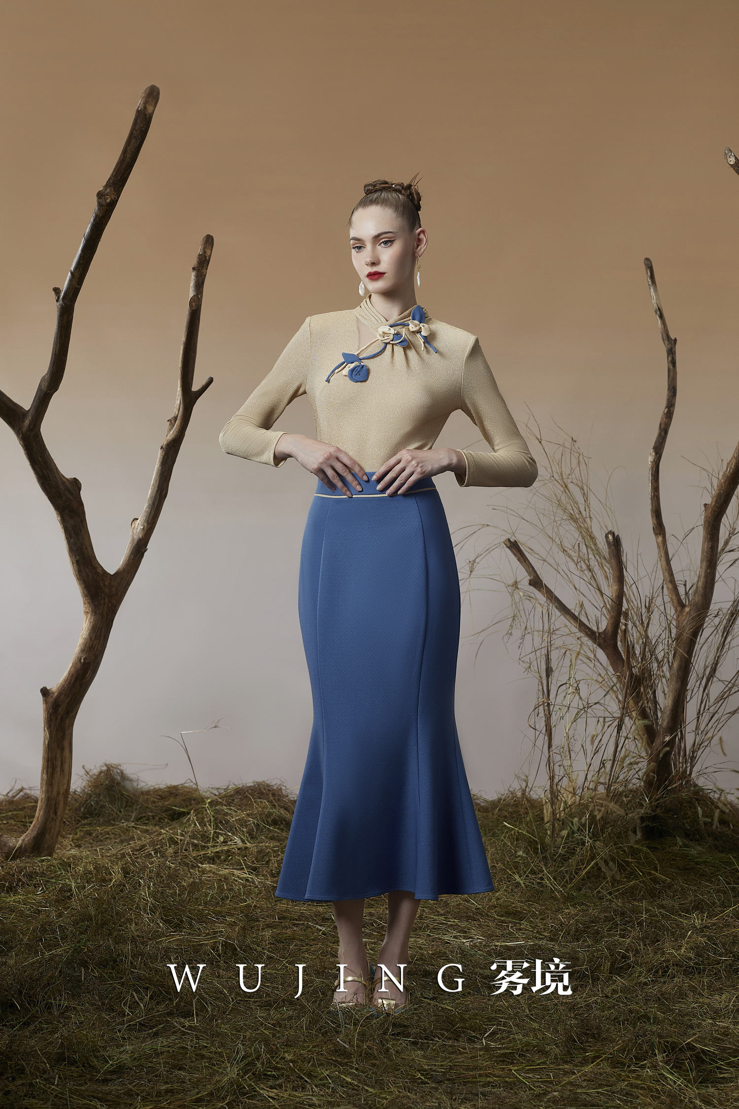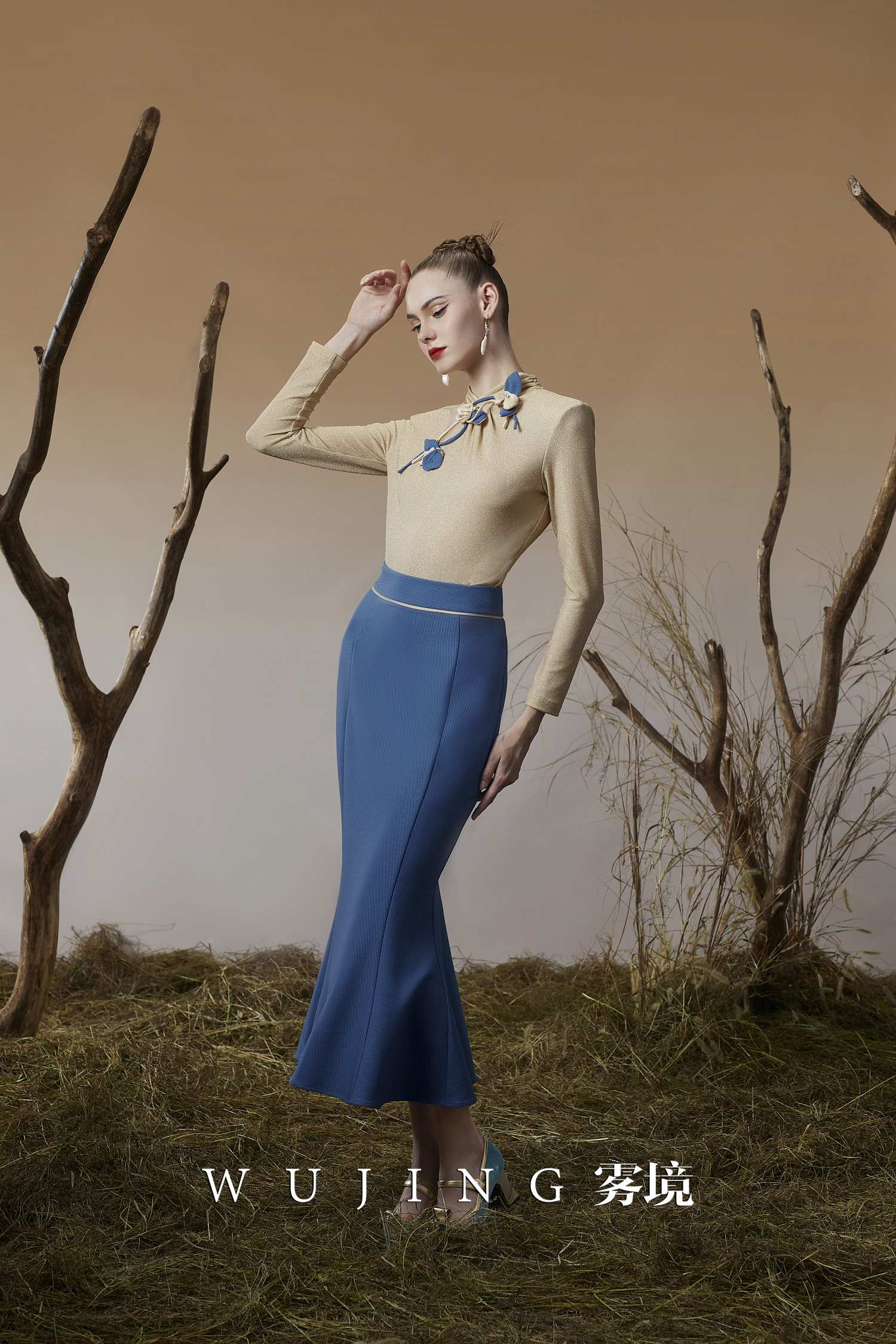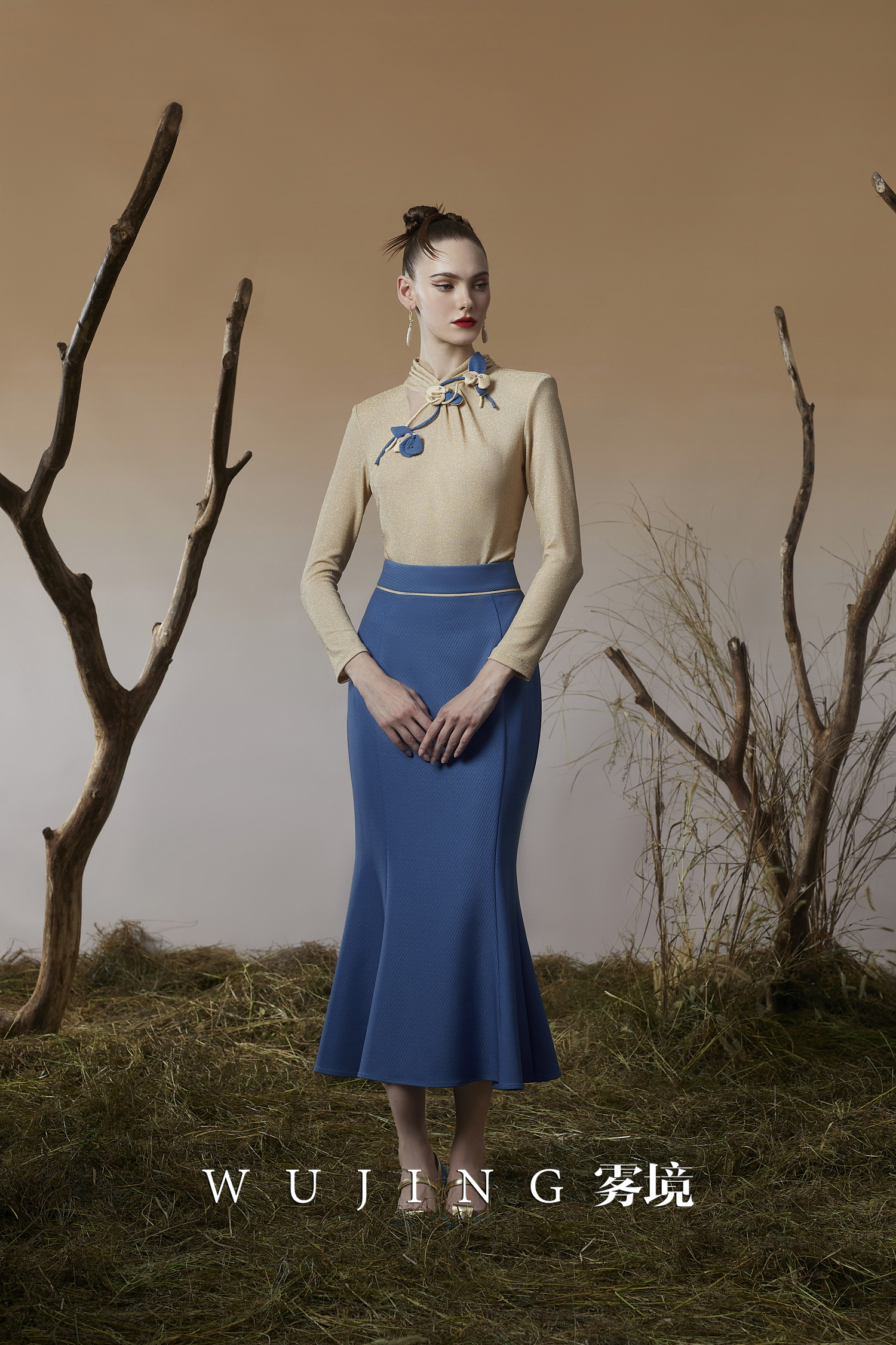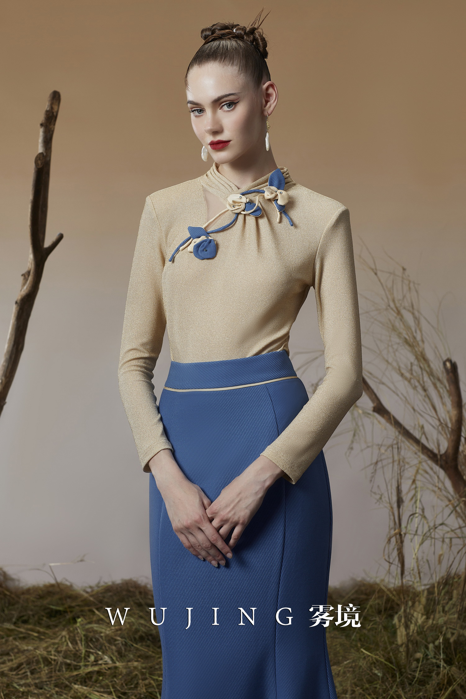 3205132 晚风听竹 进口蜂窝缎/韩国进口水晶乔其纱上衣 雾境
