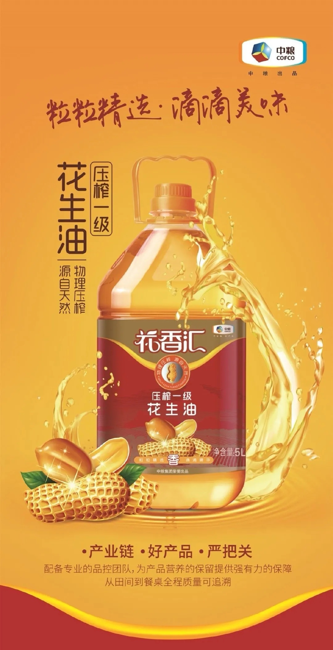 中粮花香汇压榨一级花生油5L