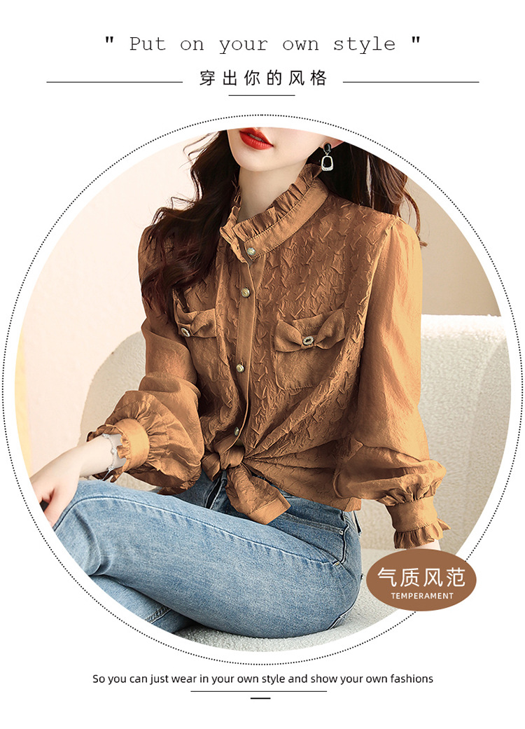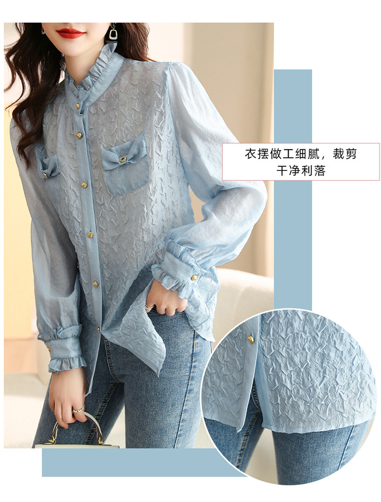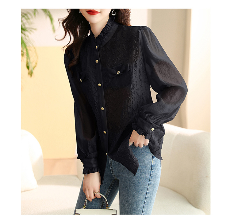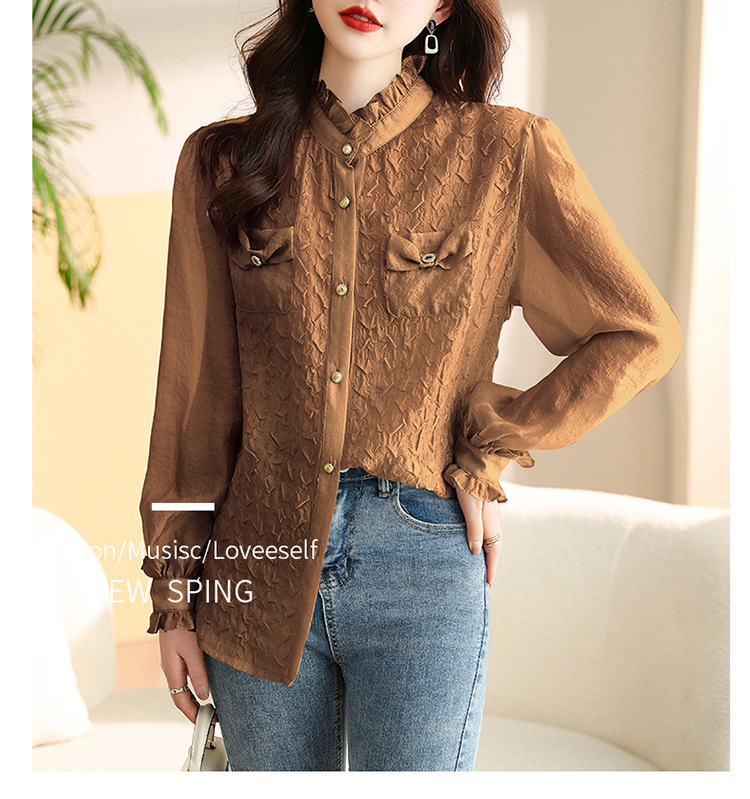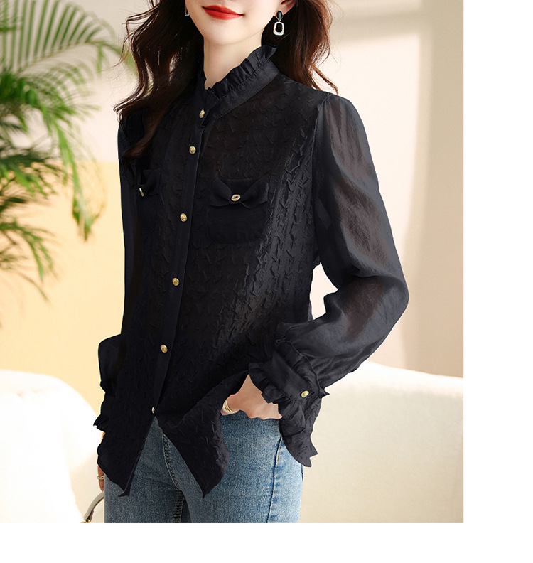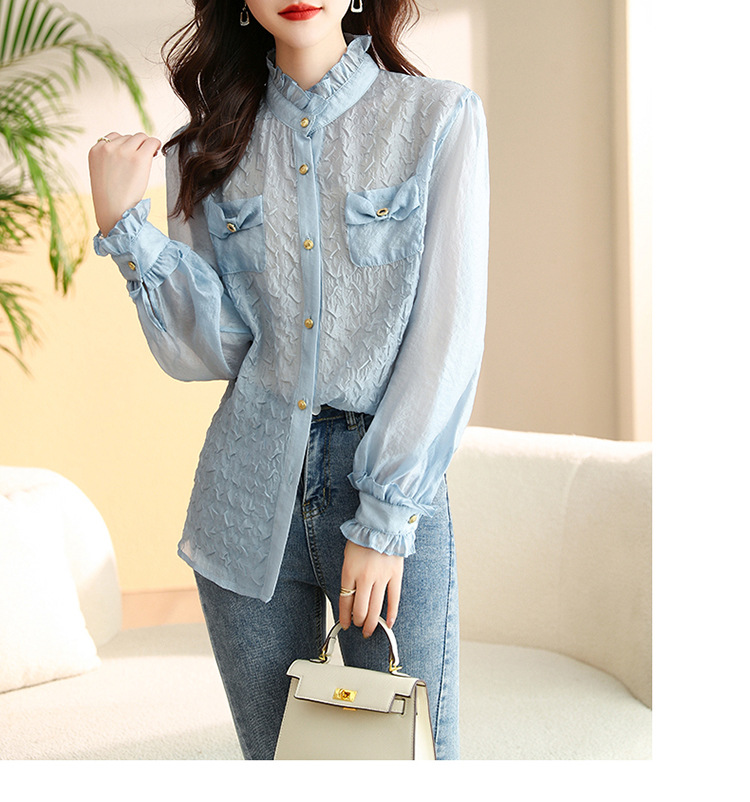 提花衬衫打底衫,早春秋新款法式洋气别致漂亮小衫HR-WHA002