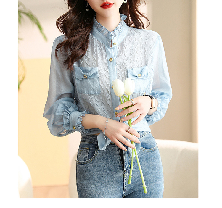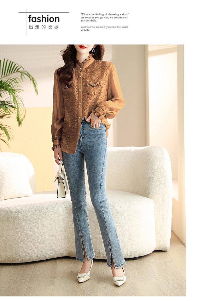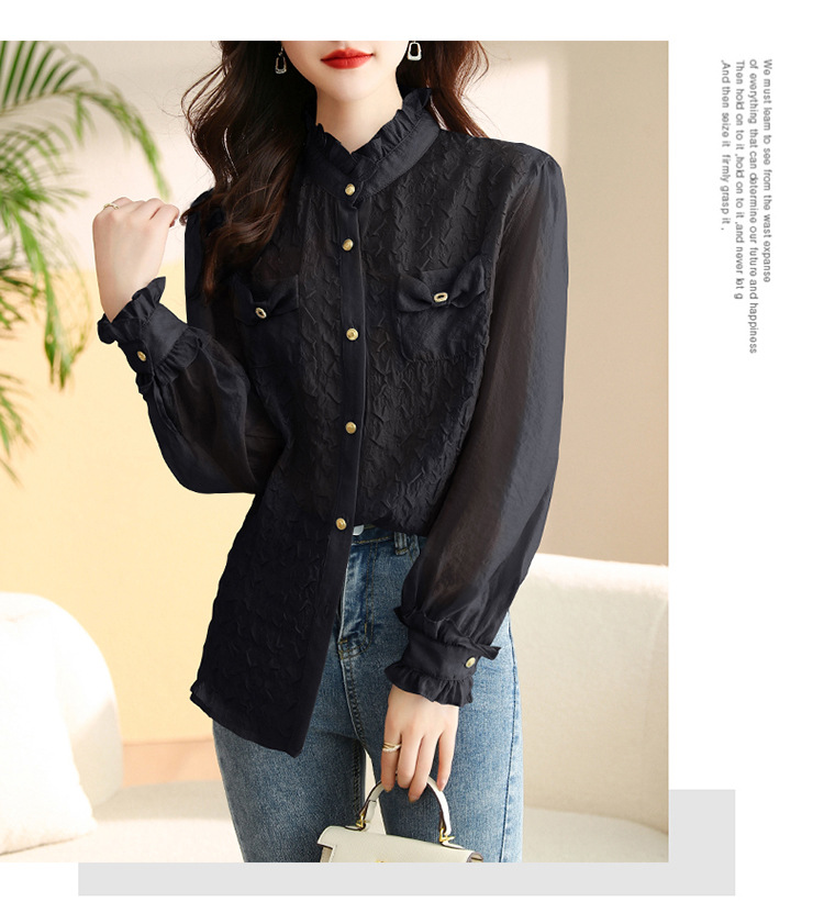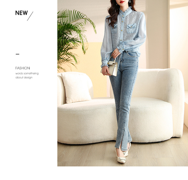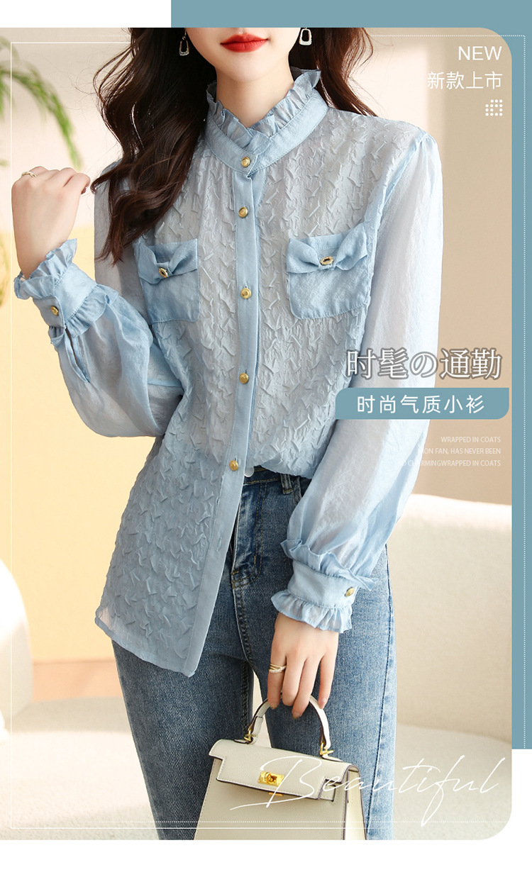 提花衬衫打底衫,早春秋新款法式洋气别致漂亮小衫HR-WHA002
