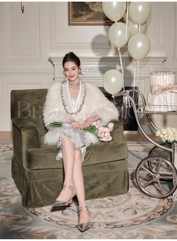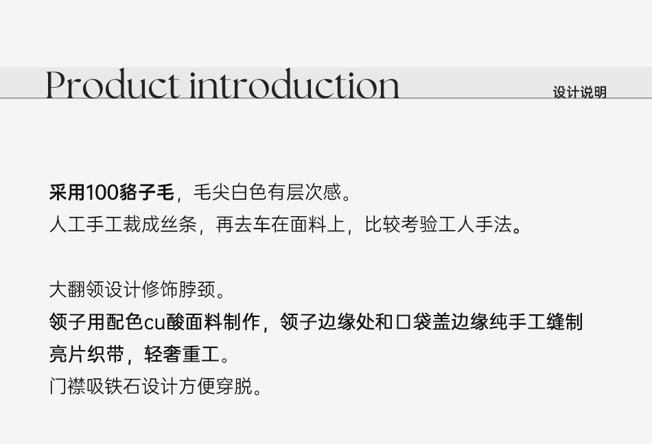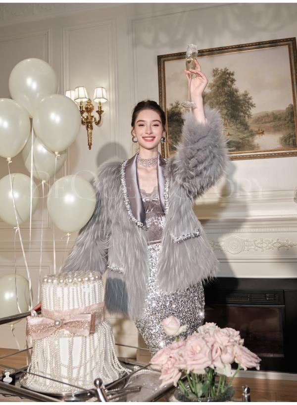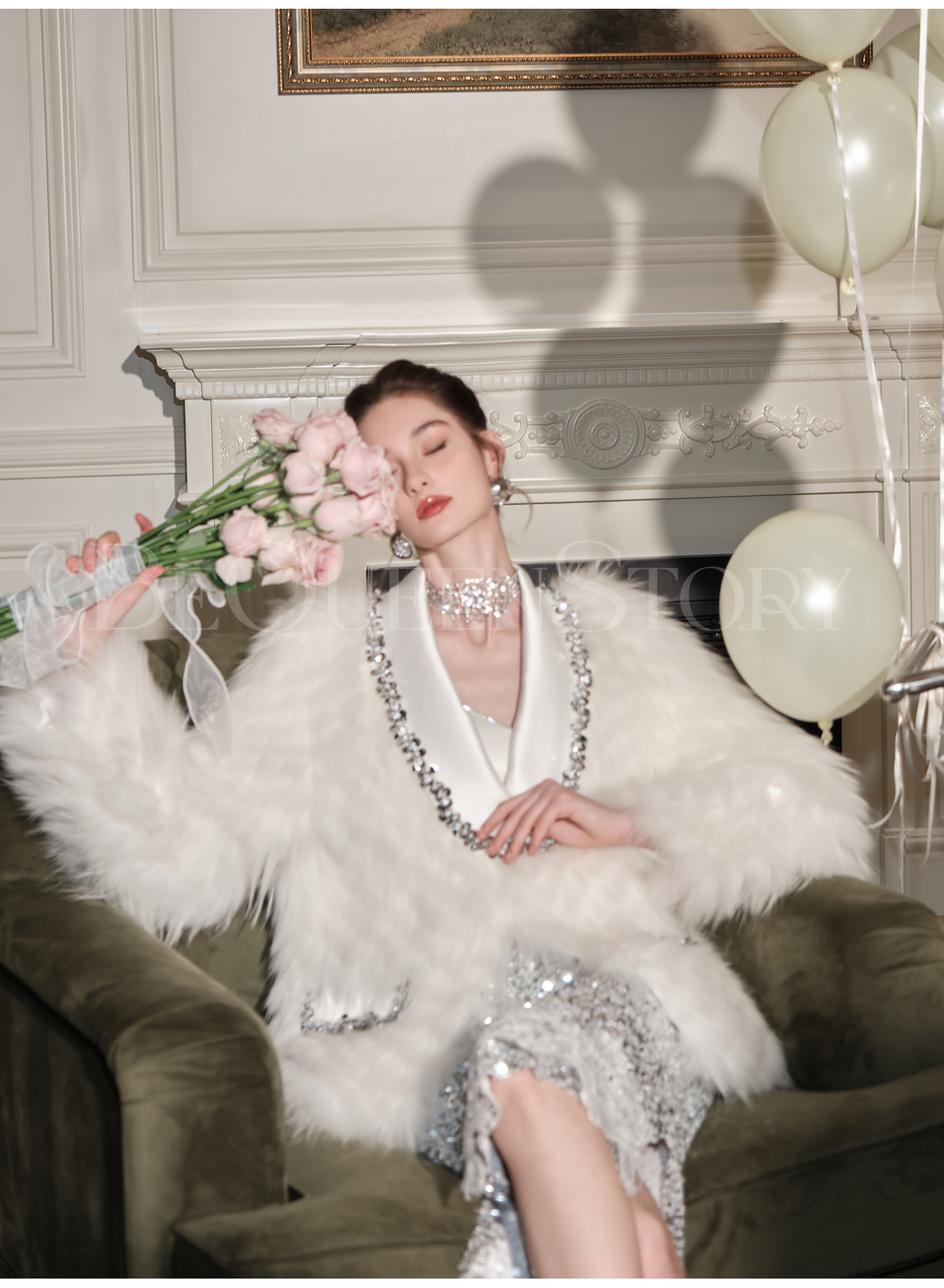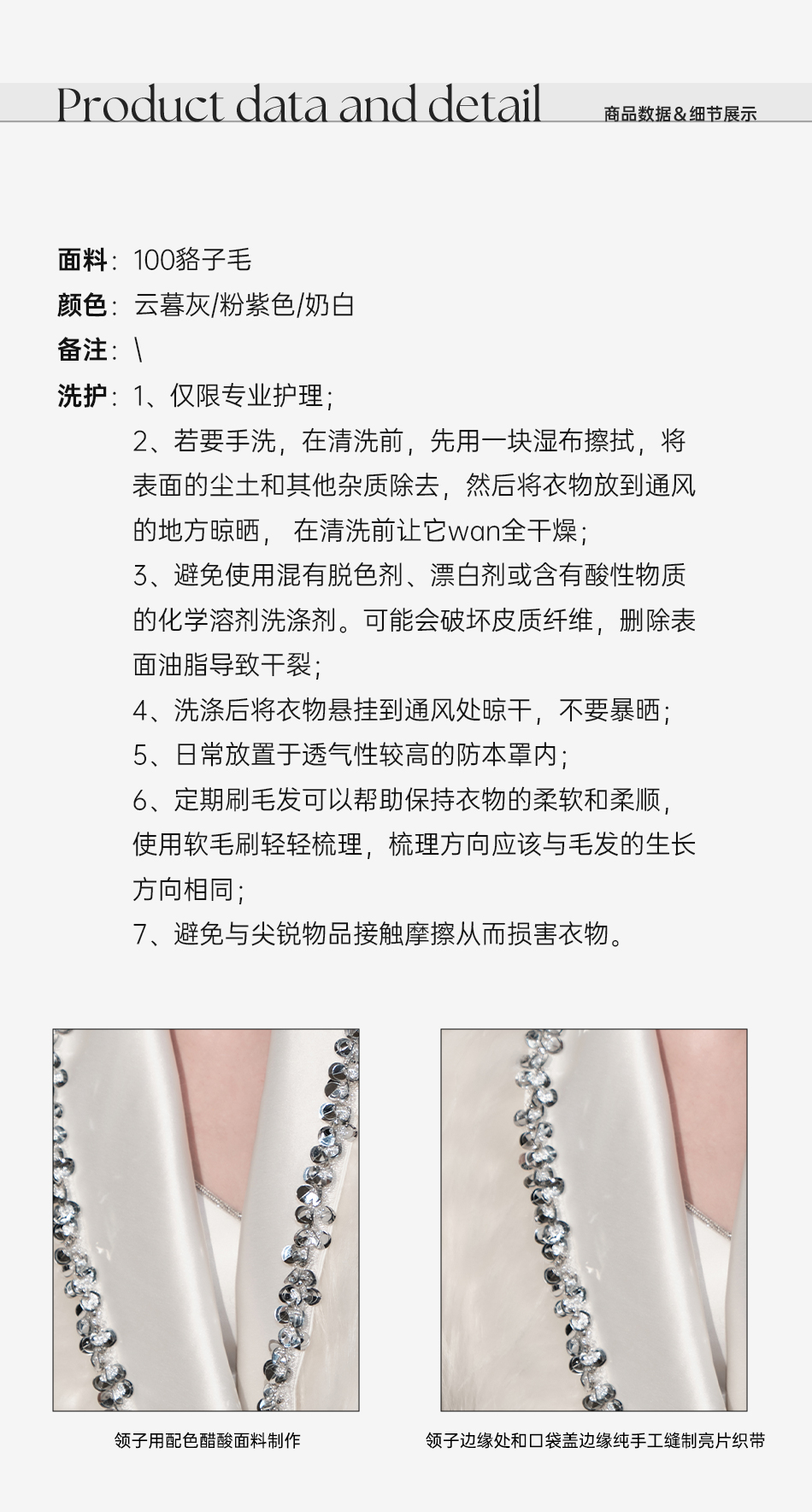 BeQueenStory【静奢晚宴】手工亮片织带拼接醋酸高级感翻领皮草外套