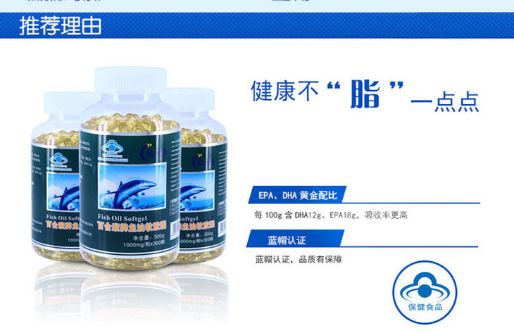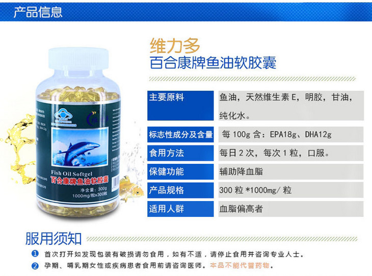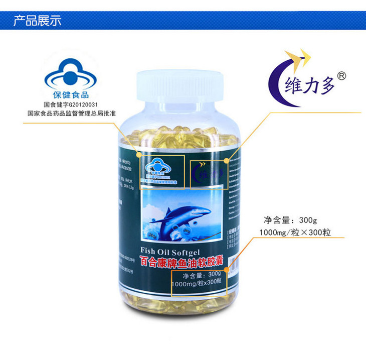 【一般贸易】【授权商品】维力多鱼油软胶囊 辅助降血脂300粒*1000mg
