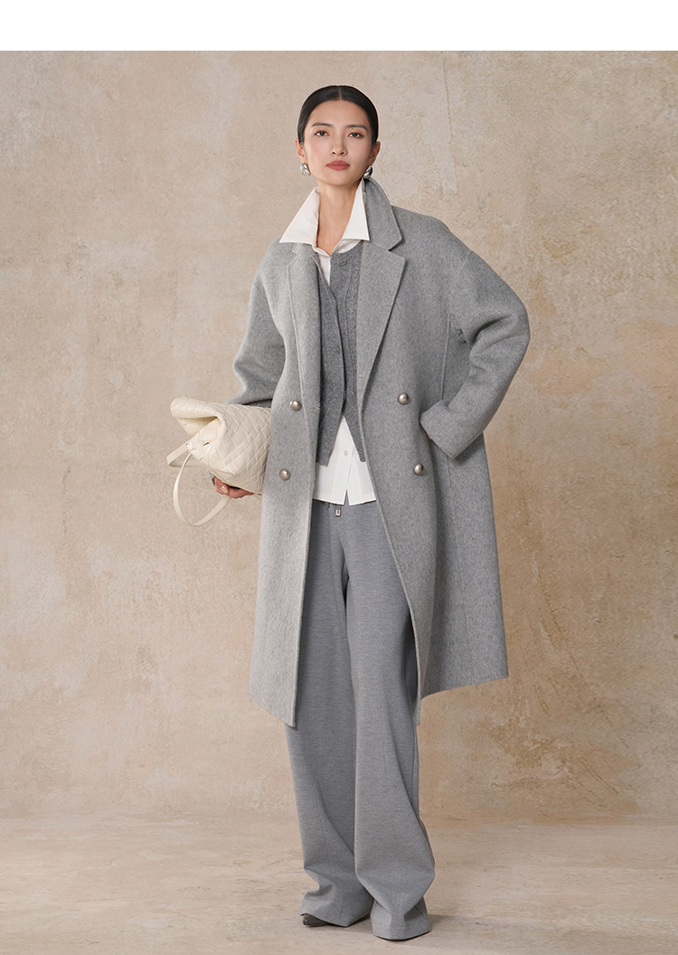 【商场同款】CNC5011 “ 智性灰色大衣 ” 蚕丝羊绒双面呢材质 中长款 轻暖无压