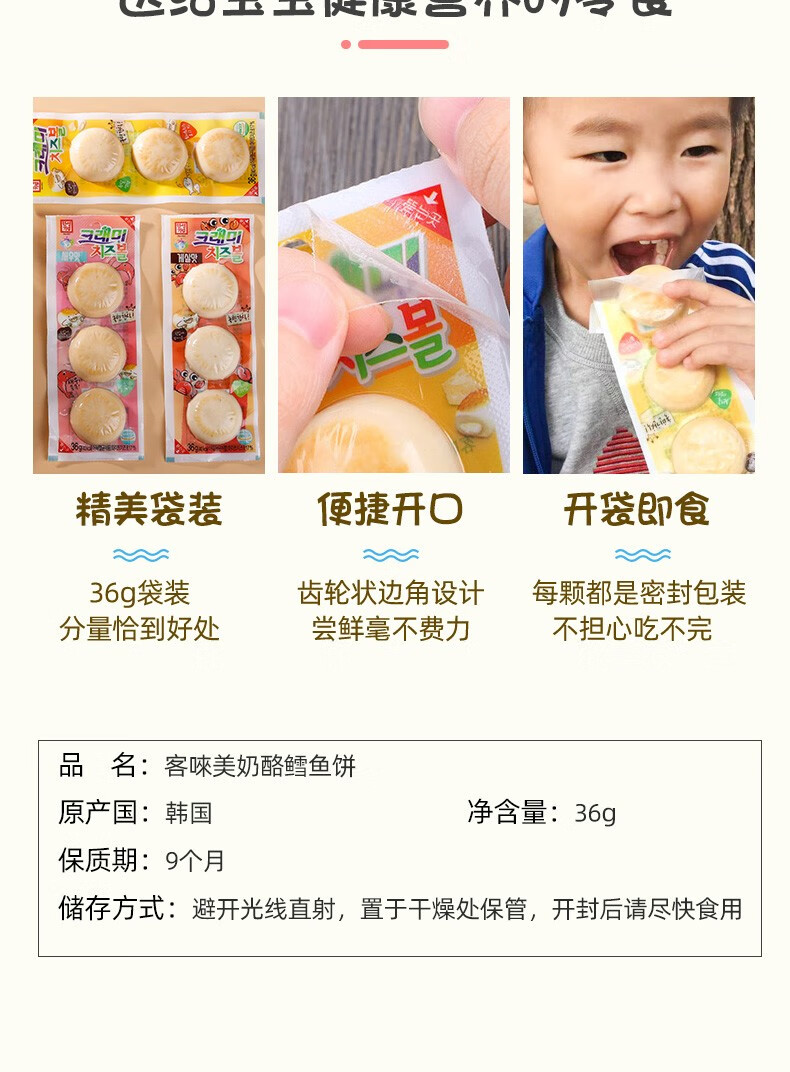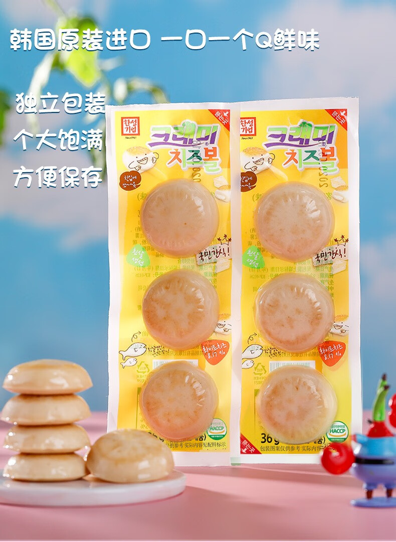 韩国客唻美奶酪鳕鱼饼原味/虾味/蟹味36g 每一颗都是饱满Q弹方便快捷 033187/033188/033189