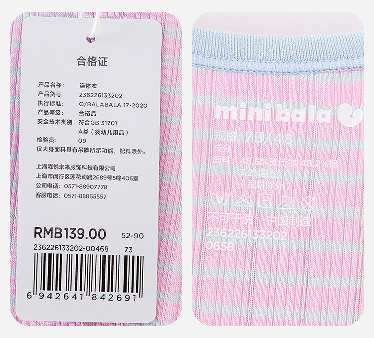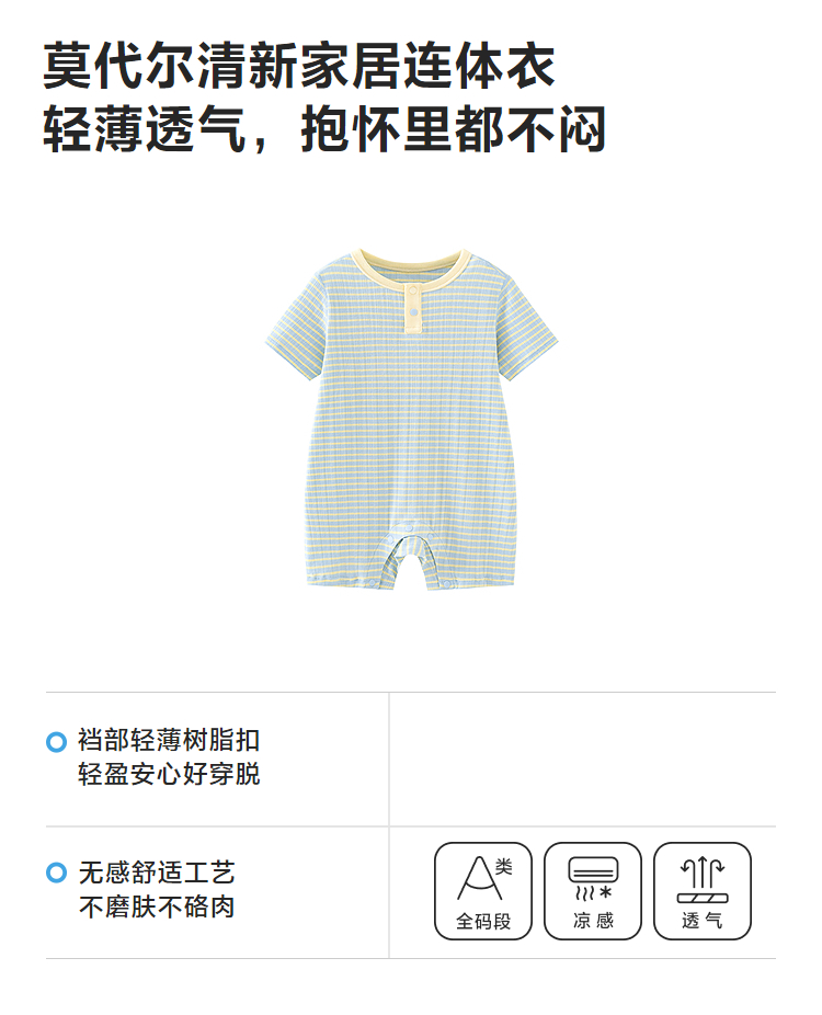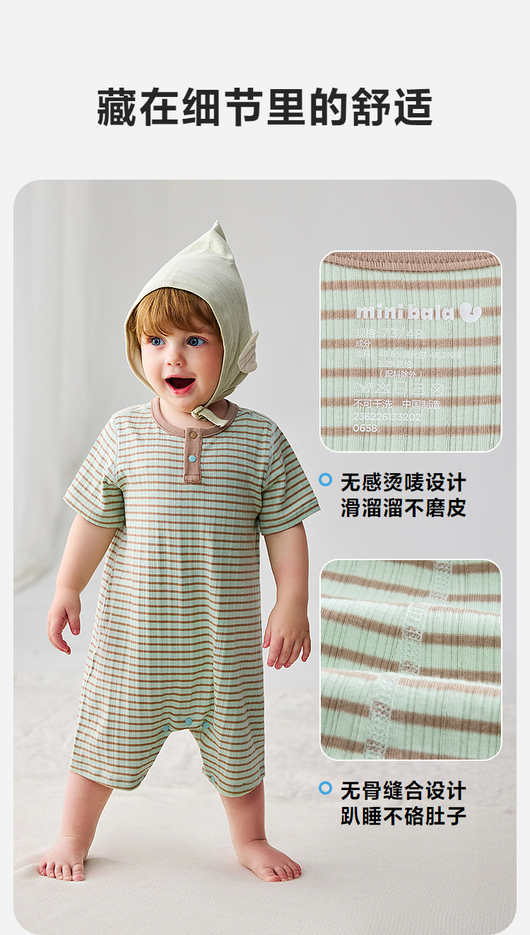 迷你巴拉巴拉婴儿衣服柔软亲肤莫代尔凉感透气宝宝居家连体衣夏季