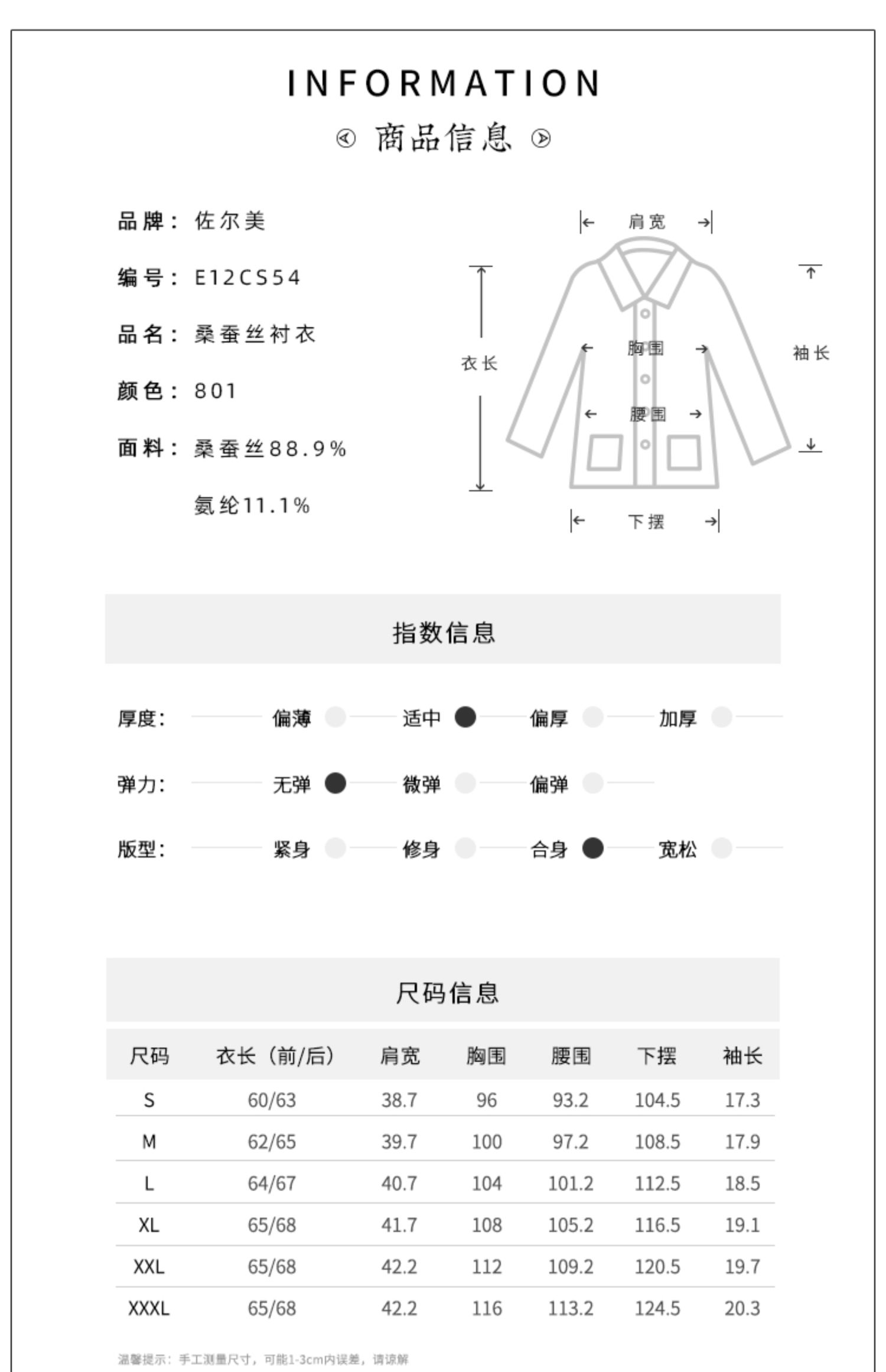 佐尔美夏季新款 桑蚕丝真丝弹力双乔衬衫女E12CS54