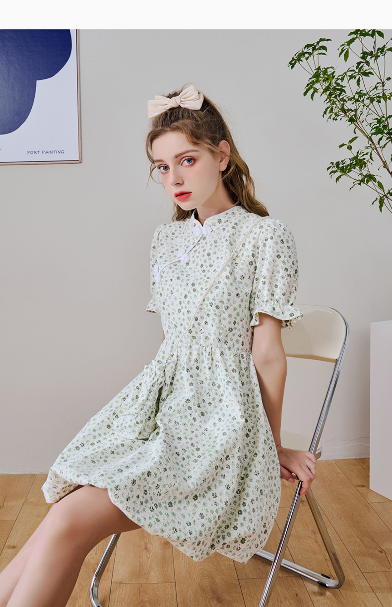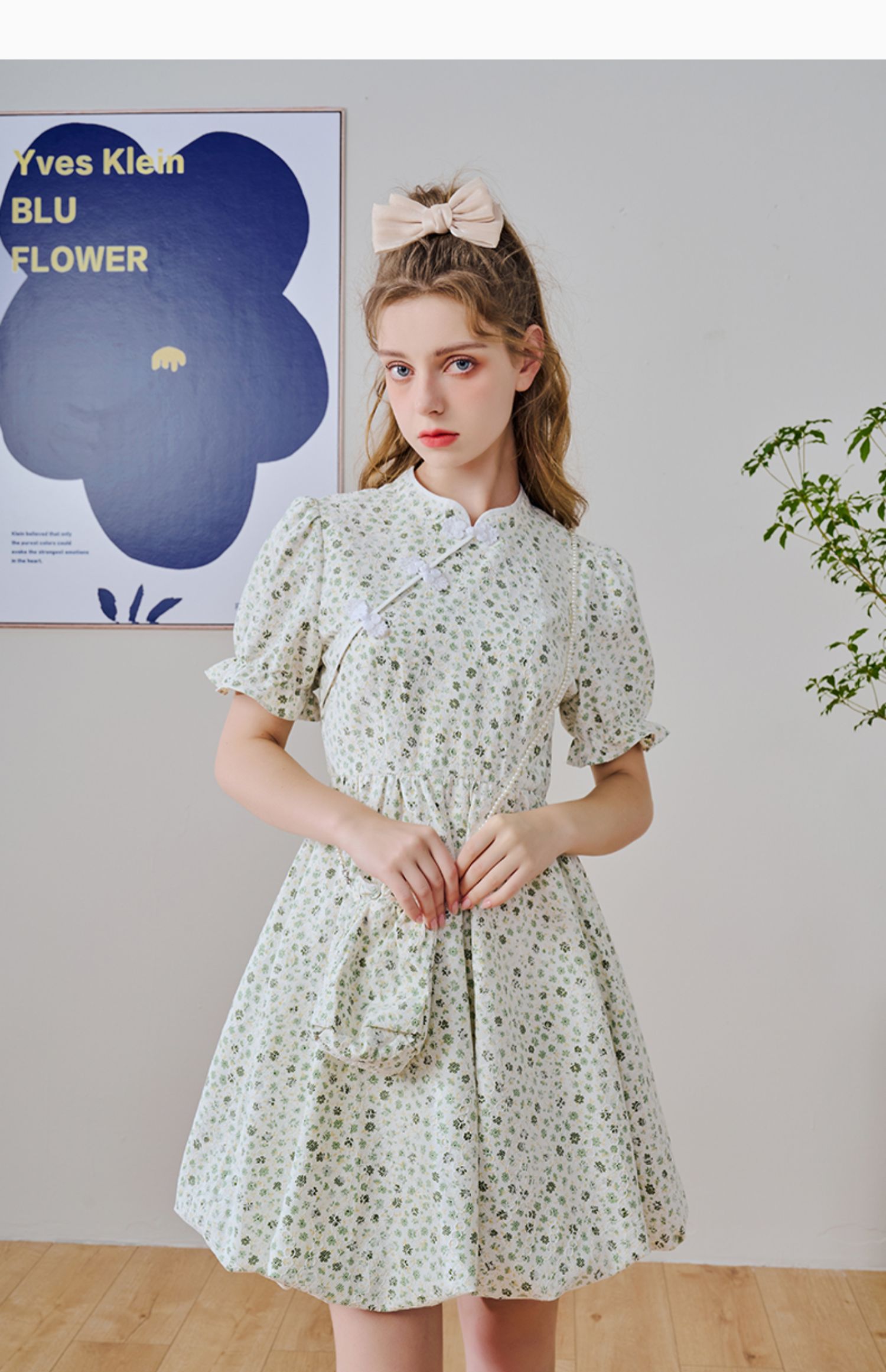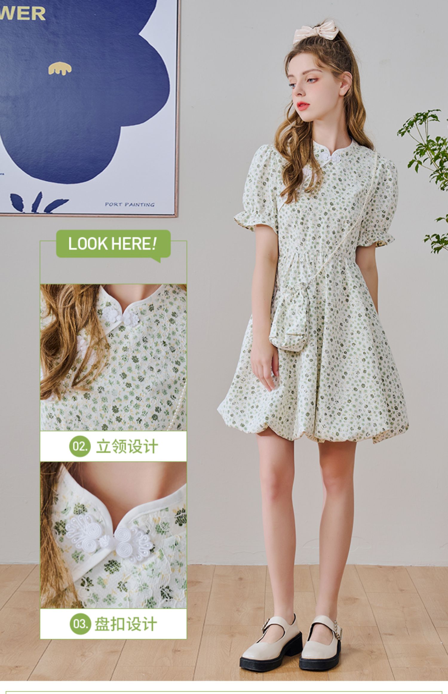 女装立领立体蕾丝中式蓬蓬裙连衣裙-162168Q2221007