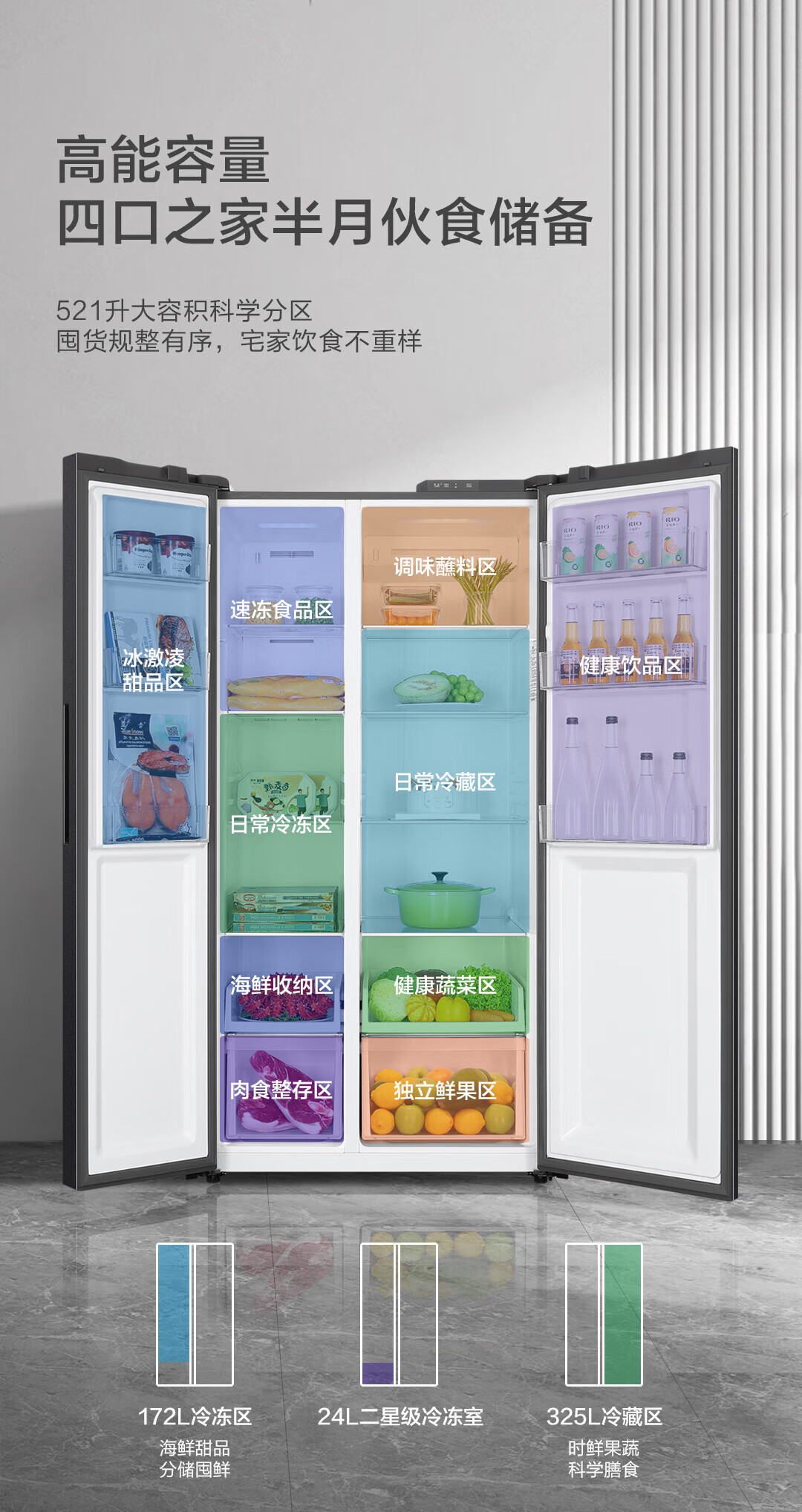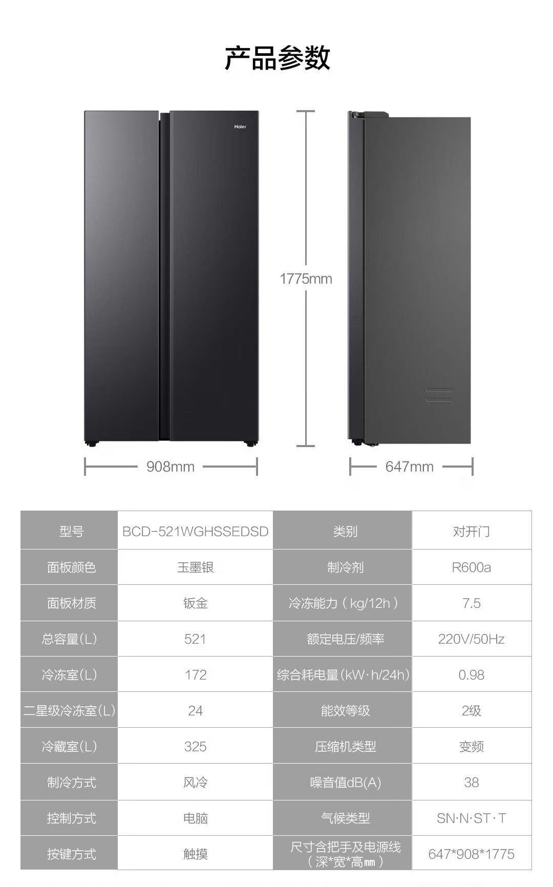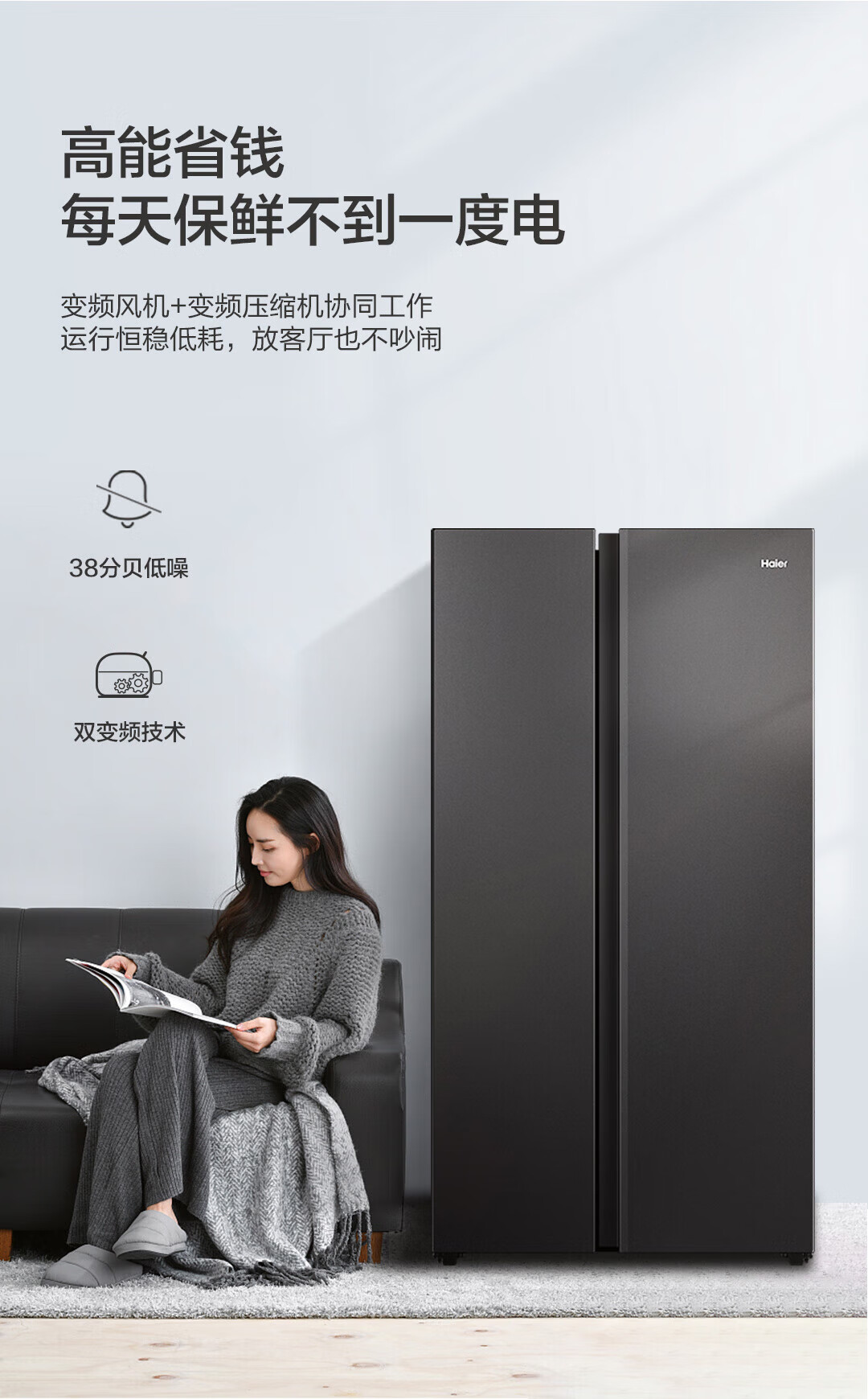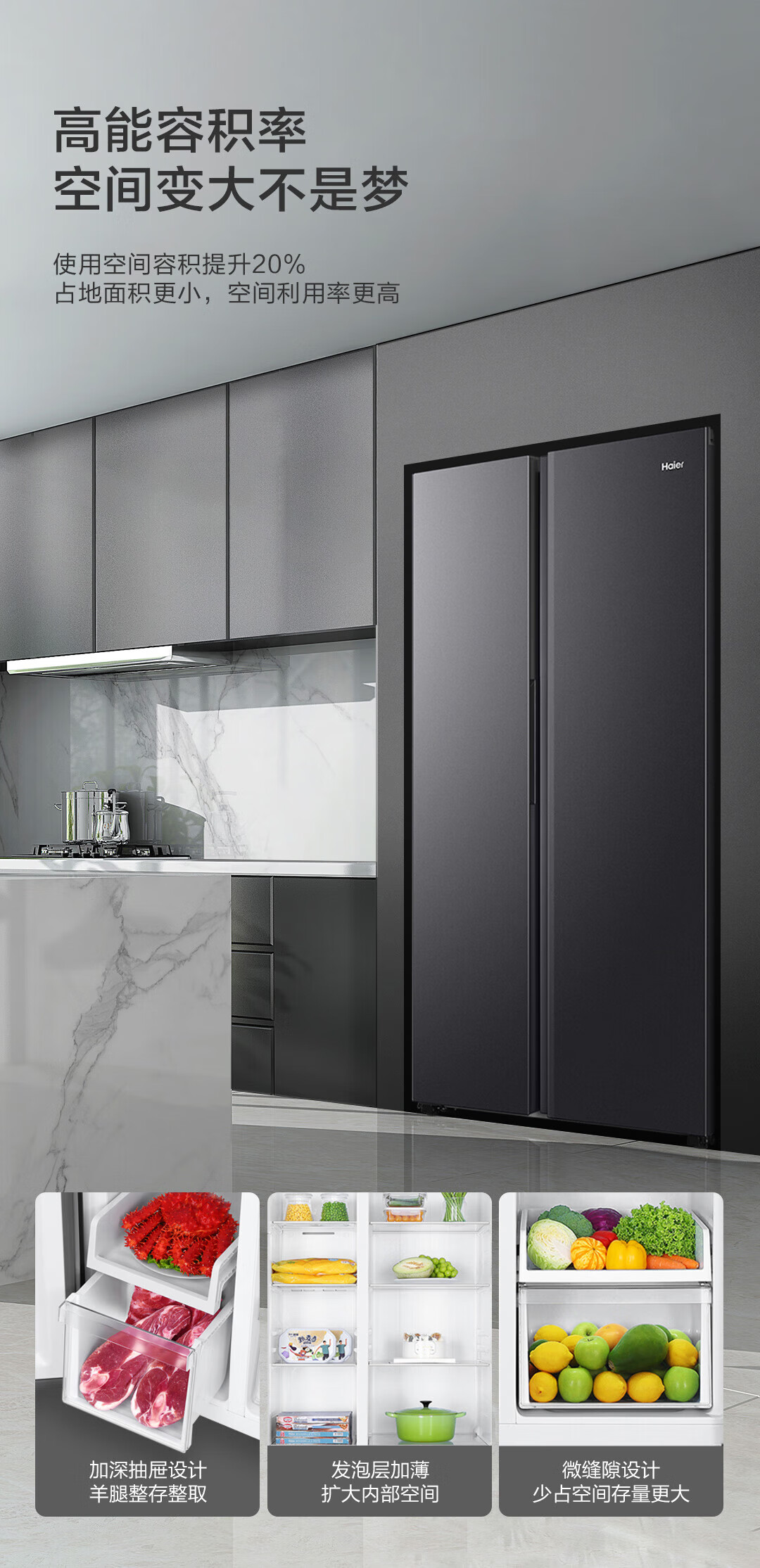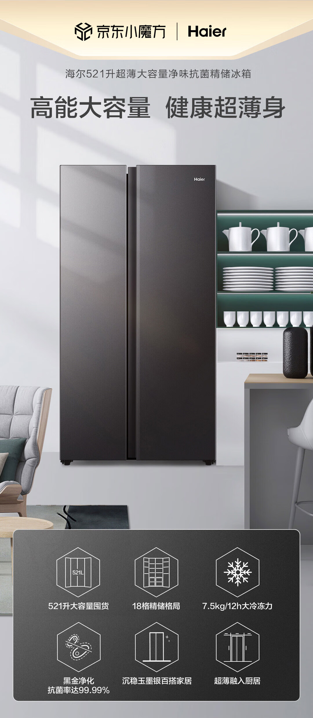 海尔(Haier)521升风冷无霜对开门双开门电冰箱家用双变频节能超薄嵌入式净味超大容量