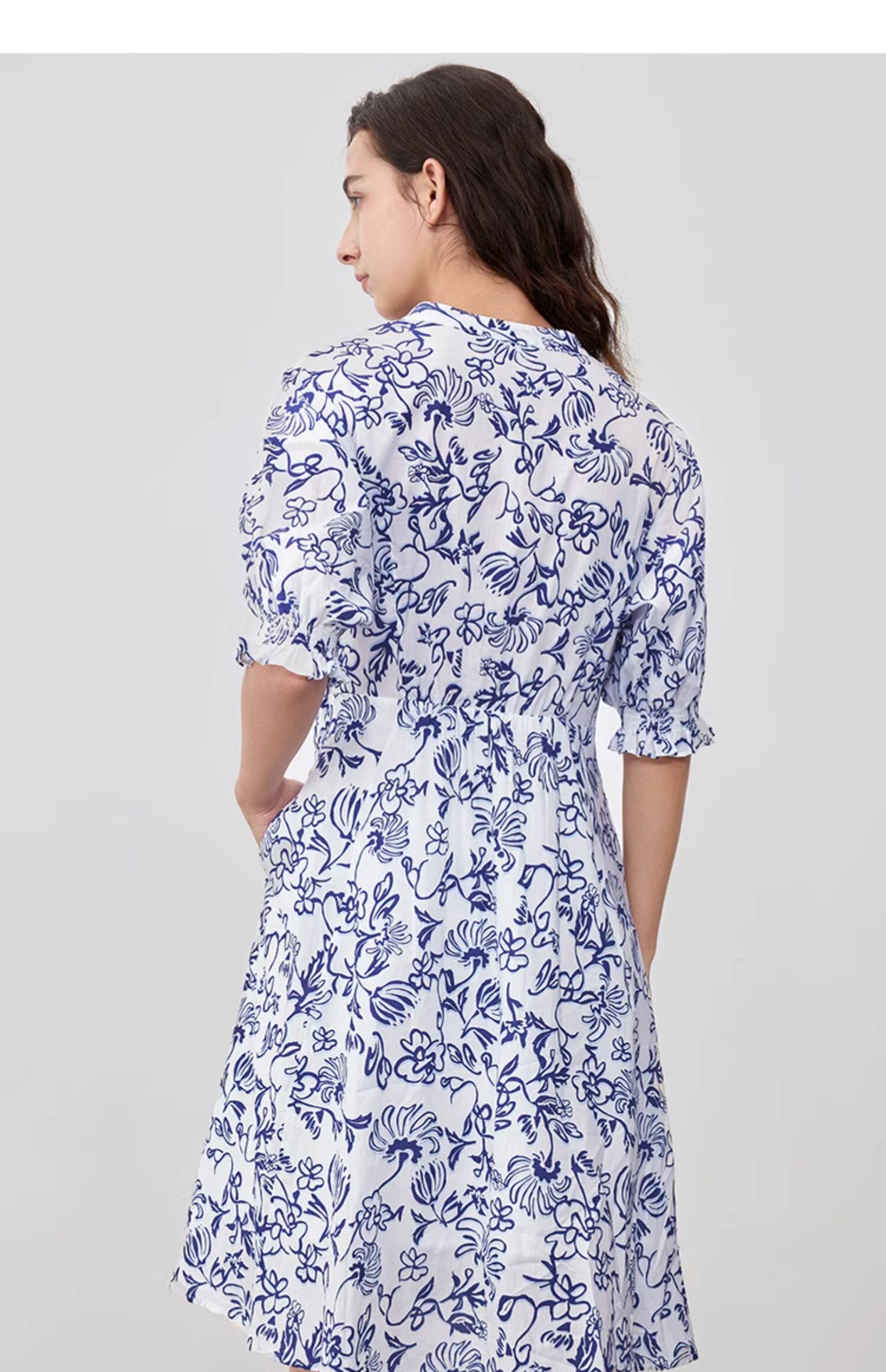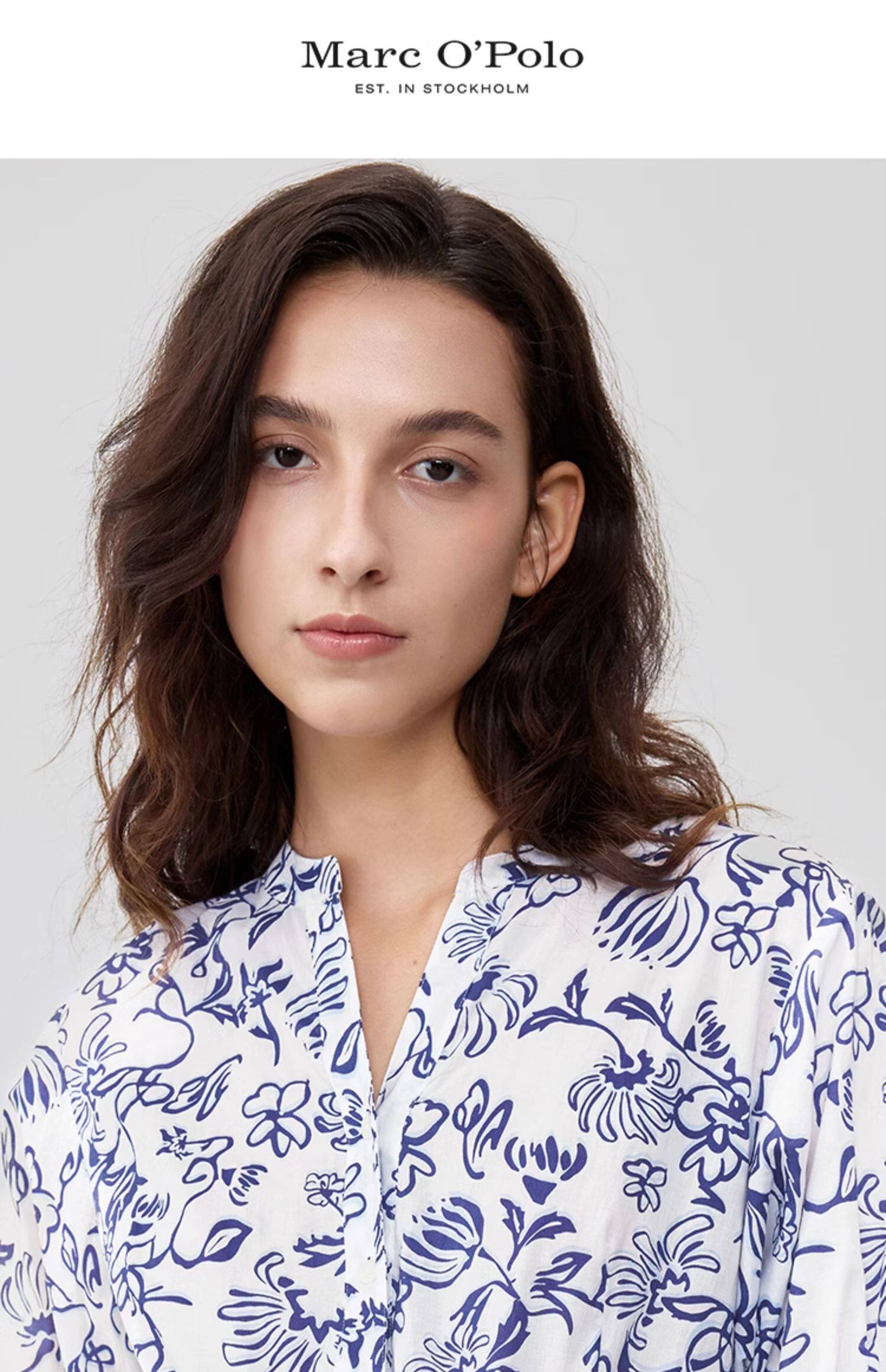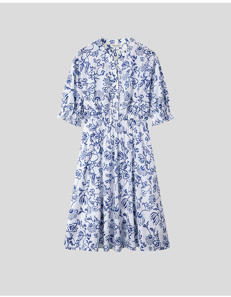 Marc O'Polo/MOP 2025夏季新款纯棉V领新中式印花短袖收腰连衣裙