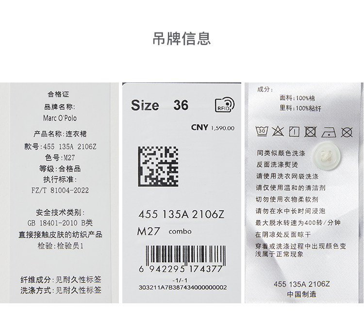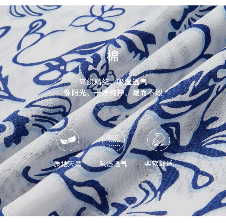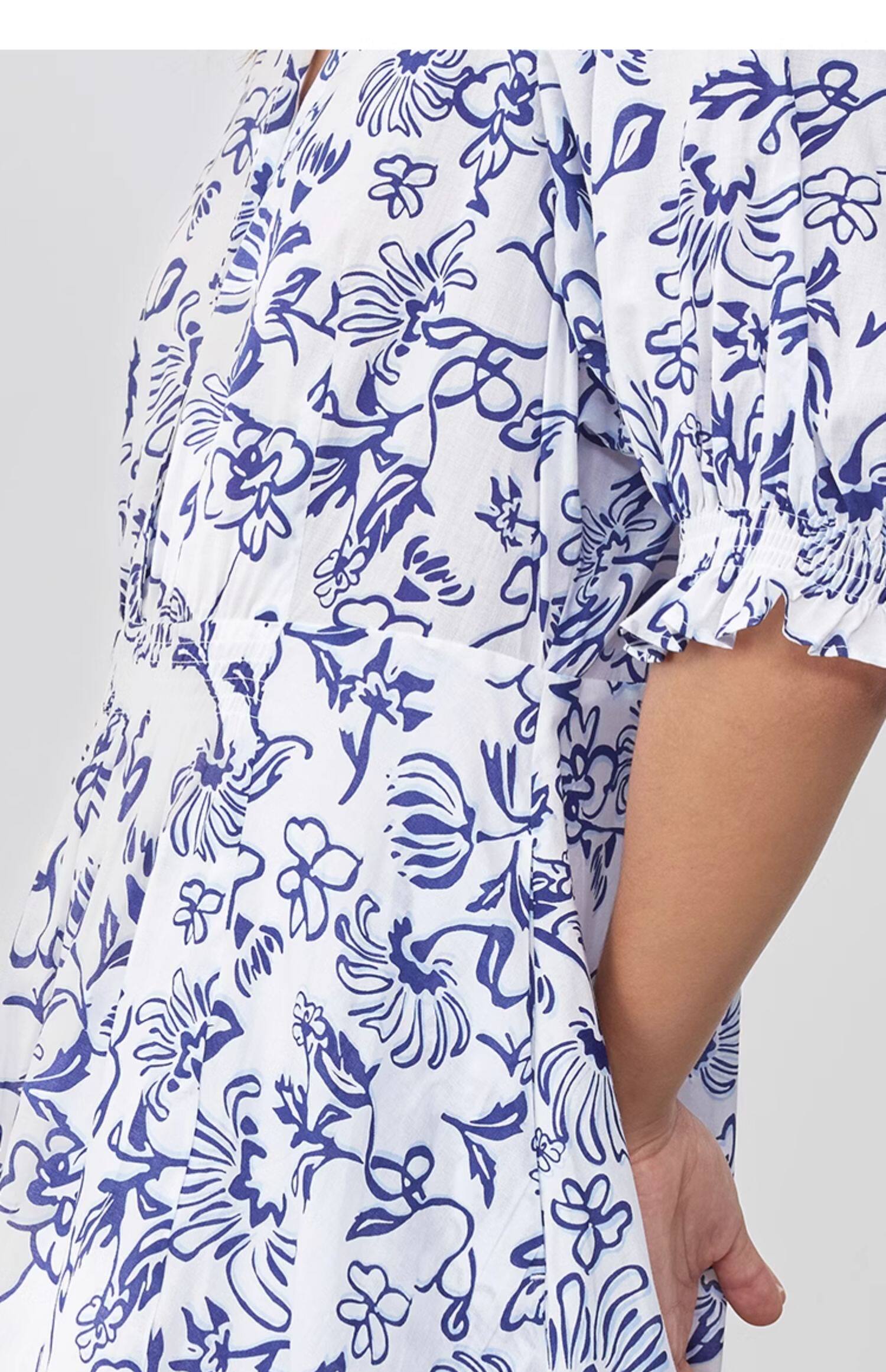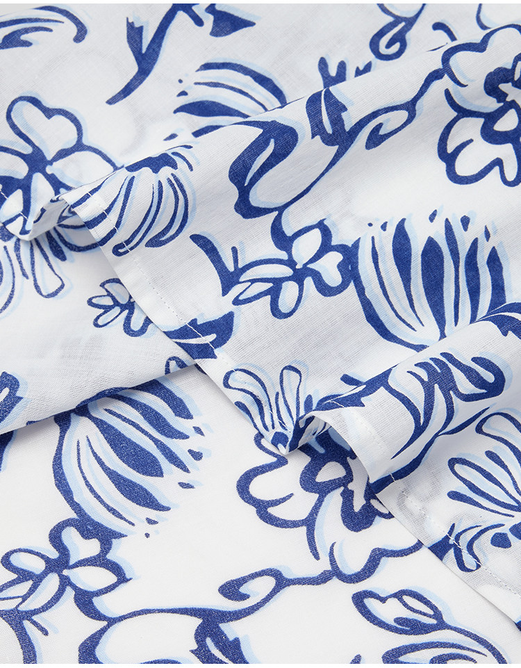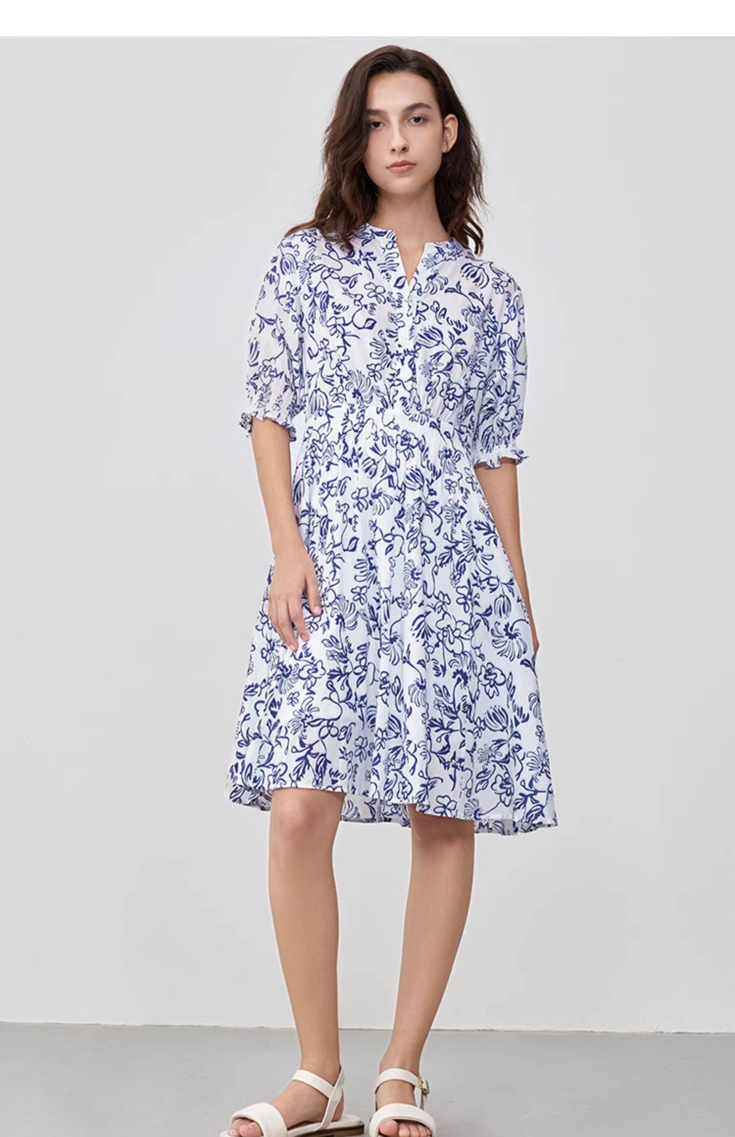 Marc O'Polo/MOP 2025夏季新款纯棉V领新中式印花短袖收腰连衣裙
