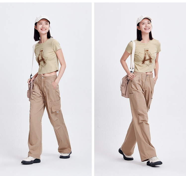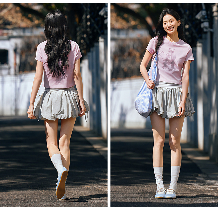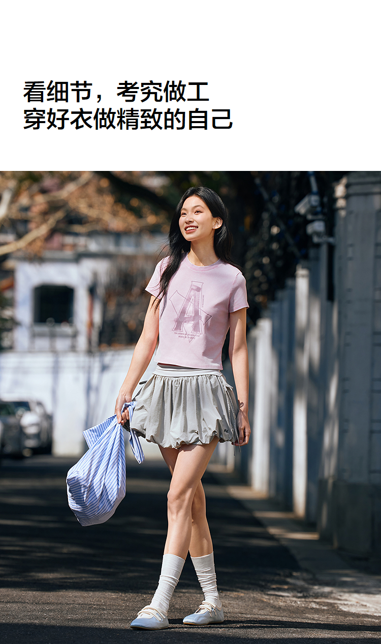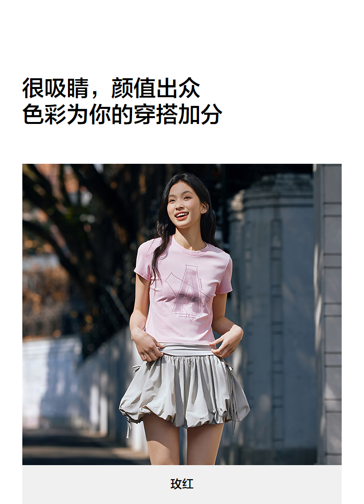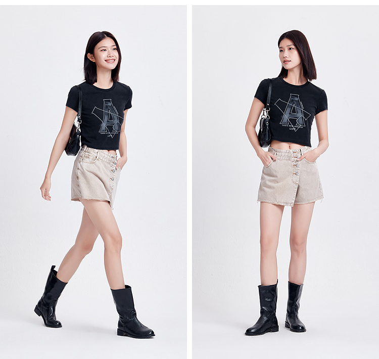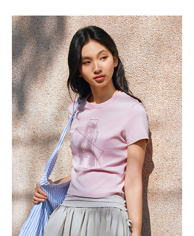 森马短袖T恤女短款字母修身小性感夏季复古做旧正肩上衣辣妹潮酷