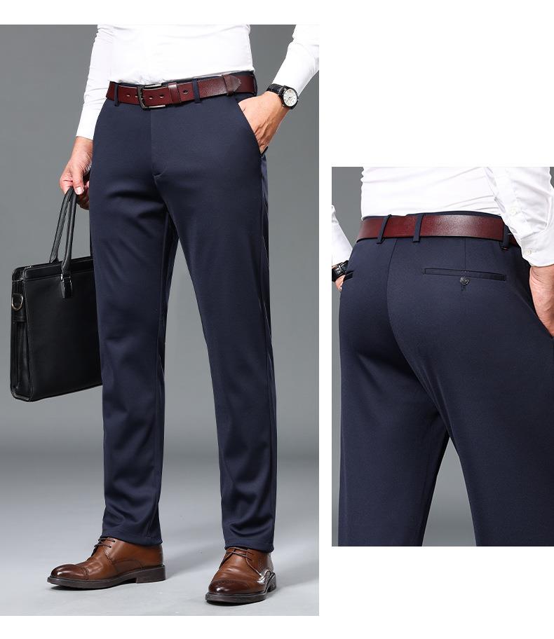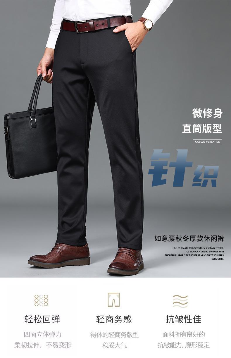 秋冬季男士厚款休闲西裤中年商务休闲高弹简约正装长裤